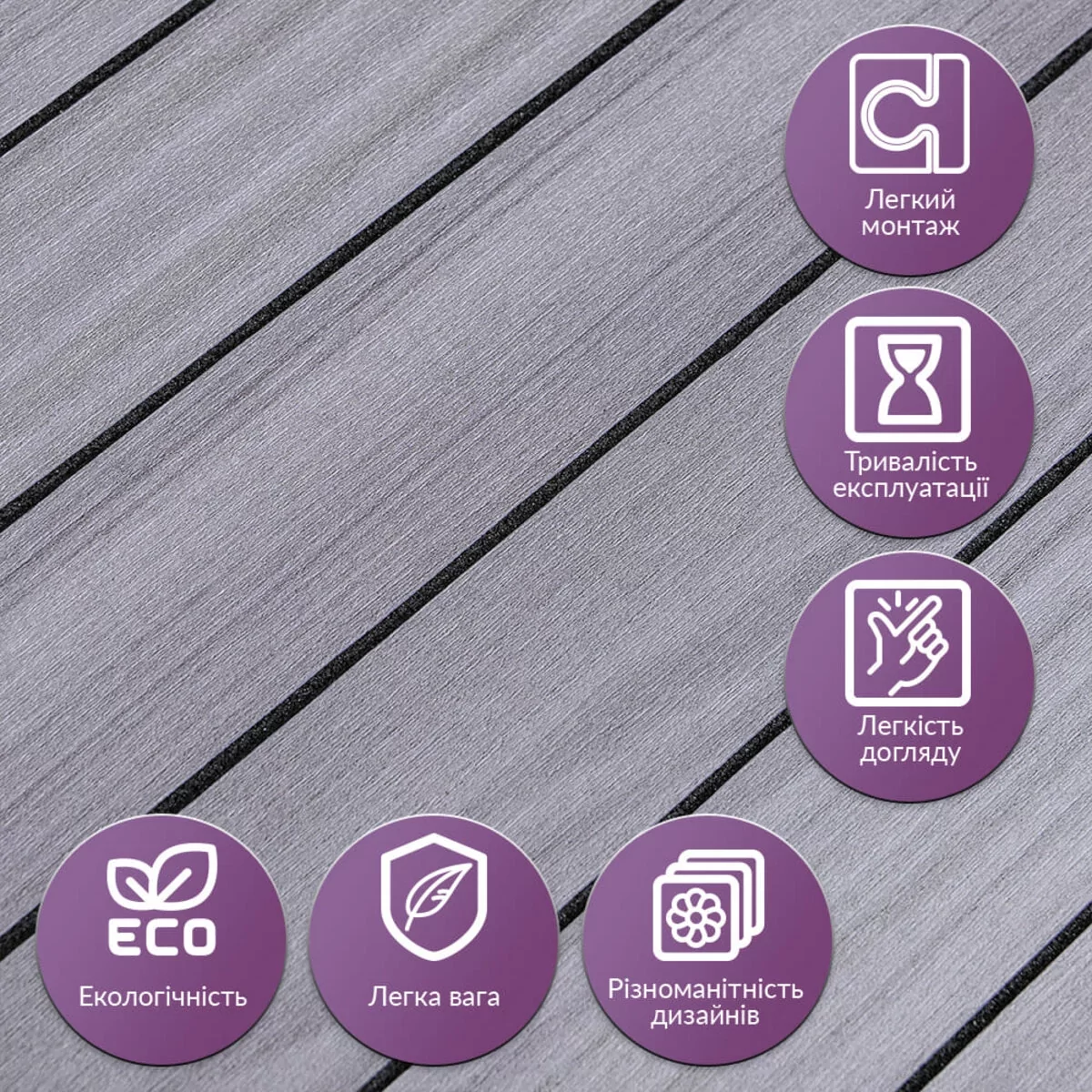 Self-adhesive vinyl 3D slat panels in a roll are a modern decorative material for quick and stylish wall finishing. The textured surface creates a pronounced 3D effect, while the design imitates natural wood and perfectly complements contemporary interiors. Thanks to the adhesive backing and convenient roll format, installation is simple and neat — no professionals, complex tools, or construction mess required. The compact packaging also makes transportation easier and helps reduce delivery costs. Main Specifications • Dimensions: 600 x 2900 x 3 mm • Coverage area per roll: 1.74 sq.m • Texture: embossed, imitation of wooden slats • Surface: matte Material Structure The vinyl 3D slat consists of several functional layers that ensure durability, strength, and an attractive decorative appearance. 1. PVC Protective Layer • protects against abrasion and minor mechanical damage • ensures long-term durability • UV protection prevents color fading • resistant to moisture and household chemicals 2. Decorative Layer A high-resolution printed film that realistically reproduces the texture of natural materials and creates the visual effect of wooden slats. 3. Foamed Polyethylene Layer (PE) • lightweight and flexible material • closed-cell structure • provides thermal and sound insulation • moisture resistant 4. Foil Layer • reflects thermal waves • helps reduce heat loss • reinforces the material structure • increases strength and tear resistance 5. Adhesive Layer A non-toxic adhesive base with high adhesion that ensures reliable bonding to the surface. 6. Protective Film • protects the adhesive layer from drying and contamination • easily removed during installation • includes marking lines for convenient cutting Temperature Conditions The material should not be installed directly next to open flames or strong heat sources. In kitchen areas, the slats should be installed at a distance of 30–50 cm from the stove or cooktop. Applications Vinyl 3D slats are designed for interior finishing in residential and commercial spaces. Suitable for: • kitchens • bathrooms • living rooms • bedrooms • children's rooms • hallways They are also widely used in: • offices • retail stores • beauty salons • fitness centers • hotels • cafs and restaurants • studios and workshops The material can be used to decorate: • walls • furniture • doors • window sills • retail displays • other flat surfaces Advantages of Vinyl 3D Slats Fast Installation • self-adhesive backing — no additional glue required • installation without special tools • easily cut with scissors or a utility knife • minimal material waste during installation Moisture Resistance • does not swell from water • suitable for kitchens and bathrooms • resistant to steam and mold formation Durability • resistant to scratches and mechanical damage • retains color and shape for a long time Convenient Transportation • flexible material • rolls into a compact form • easy to transport without risk of damage Easy Maintenance • does not absorb dirt • easy to clean with a damp cloth • no special cleaning products required Insulating Properties • improves thermal insulation • reduces noise levels in the room Expressive Decorative Effect • 3 mm thickness creates a clear 3D relief • adds depth and modern aesthetics to walls • wide range of colors and textures available Local Repair Possibility If damaged, a single slat can be replaced without removing the entire covering. How to Calculate the Required Quantity Option 1 — High Walls Example: wall height — 2.5 m wall width — 3.2 m Since the roll height is 2.9 m, one roll covers one vertical strip. Calculation: 3.2 m / 0.6 m = 5.33 Round up to the next whole number. You will need 6 rolls. Option 2 — Small Areas Example: surface height — 1.2 m surface width — 1.8 m Surface area: 1.2 x 1.8 = 2.16 sq.m Area of one roll: 1.74 sq.m Calculation: 2.16 / 1.74 = 1.24 Round up to the next whole number. You will need 2 rolls. Installation Instructions Vinyl 3D slats can be applied to: • tiles • ceramic wall tiles • glass • painted surfaces • primed concrete • other flat surfaces Minor unevenness and small imperfections on the surface are acceptable. If the wall has whitewash, it must be completely removed. For better adhesion, it is recommended to prime the surface beforehand and allow it to dry for at least 4 hours. Installation Steps 1. Make sure the surface is clean, dry, and grease-free. 2. Allow the material to acclimatize — the roll should reach room temperature before installation. 3. Gradually start removing the protective film from the adhesive layer. 4. Begin installation from one corner of the wall. 5. Carefully press the slat onto the surface, avoiding bubbles and wrinkles. 6. Trim the material with scissors or a utility knife along edges and corners if necessary. 7. Firmly press the slat using your hand, a rubber roller, or a soft cloth to ensure proper adhesion. Installation temperature: from +15 to +20 degrees Celsius. The room should be dry and free of drafts.Characteristics
