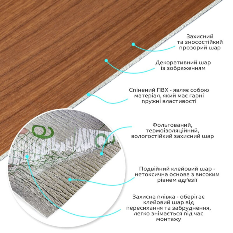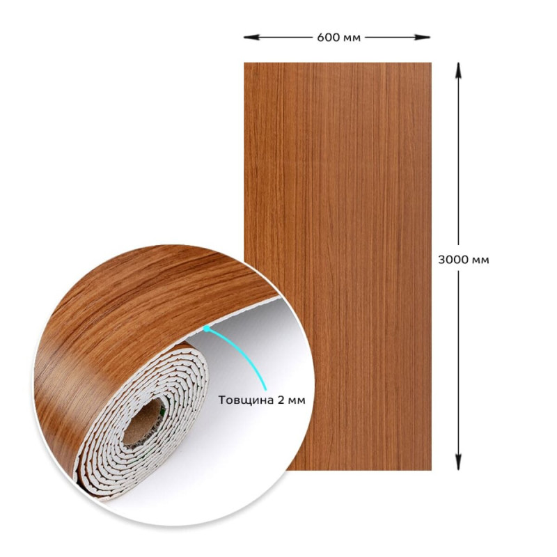 Self-adhesive vinyl tiles in a roll Sticker wall 0.6*3m*2mm Mat SW-00002058 - is a decorative material for interior decoration, which, thanks to its adhesive base, is easy to install. It is available in various designs that imitate natural materials and is suitable for a variety of interior solutions. Material: PVC. Dimensions: 0.6*3m*2mm. Coverage area: 1.8 sq. m (600 x 3000 mm). Texture: smooth, with imitation of natural materials. The surface is glossy or slightly matte. The tile consists of the following layers: 1. Polymer layer: protects against abrasions and mechanical damage, provides durability and UV protection, preventing fading and preserving color. 2. Decorative layer: film with high-quality color printing, imitating the texture of natural materials. 3. PVC base layer: foamed polyvinyl chloride, resistant to chemicals, elastic and impact resistant due to its amorphous structure and the addition of stabilizers and softeners. 4. Foil layer: reflects heat waves, improving the thermal insulation of the room. 5. Adhesive layer: non-toxic base with strong adhesion. 6. Protective film: protects the adhesive layer from drying out and contamination, and can be easily removed during installation. Temperature conditions: When exposed to high temperatures, the material may become deformed. In the kitchen area, tiles should be installed at a distance of 30-50 cm from fire sources. Application: Interior finishing: wall cladding in various types of residential premises (kitchens, bathrooms, living rooms, children's or bedrooms, hallways) and commercial facilities (offices, reception areas, shops, beauty salons or fitness centers, public places, workshops), and also furniture, doors and other smooth surfaces. Features and advantages of the material: - Easy installation: self-adhesive, without glue, joint to joint, cut with scissors, does not diverge, does not deform, minimal trim (1%). - Practicality: moisture-resistant, steam-resistant, mold-resistant, suitable for kitchen and bathroom, durable, wear-resistant. - Aesthetics: large selection of designs, imitation of natural materials, selection for any style, combined by color. - Care: easy cleaning, does not require special equipment. - Additionally: sound and heat insulation, environmental friendliness. Calculation of the required amount of material: To calculate the required amount of material, first measure the length and height of the surface you are going to cover. Then multiply the length by the height for each surface in meters to get the area. For example, if the length of the wall is 4.35 meters and the height is 2.8 meters, then the area will be 12.18 square meters (4.35 * 2.8 = 12.18). After this, select the number of rolls needed to cover this area. Divide the resulting area by the area of one roll (600 * 3000 = 1.8), rounding the result up. For example, dividing 12.18 by 1.8 gives 6.76, which rounds to 7 rolls. Please note that during the installation process, waste may occur due to cutting of rolls, so it is recommended to add at least 1 spare roll to the calculation. Installation: Self-adhesive vinyl tiles in a roll can be glued to various surfaces, such as old linoleum, tiles, parquet, laminate, glass, paint, primed concrete with small irregularities and small potholes, without the need for special surface preparation. However, if the surface is whitewashed, it must be cleaned first. Before installation, the room must be dry, and the air temperature must be from +15 to +20 degrees. Make sure the surface on which you will install the tiles is clean, dry and level. Remove all traces of dust, dirt or oil and, if necessary, level it with primer, allowing it to dry for at least 4 hours. The tile and surface must be at room temperature to ensure good adhesion of the adhesive base. Carefully begin peeling off the protective film from the back of the roll to expose the adhesive surface. The gluing should begin from one corner, gently pressing the tile against the surface, making sure that it is installed evenly and without the formation of bubbles or wrinkles. If necessary, the tiles can be trimmed with a utility knife or scissors, especially along the edges and corners of the surface. To ensure good adhesion between the tile and the base, press it firmly against the surface with your hand or a rubber roller.Characteristics