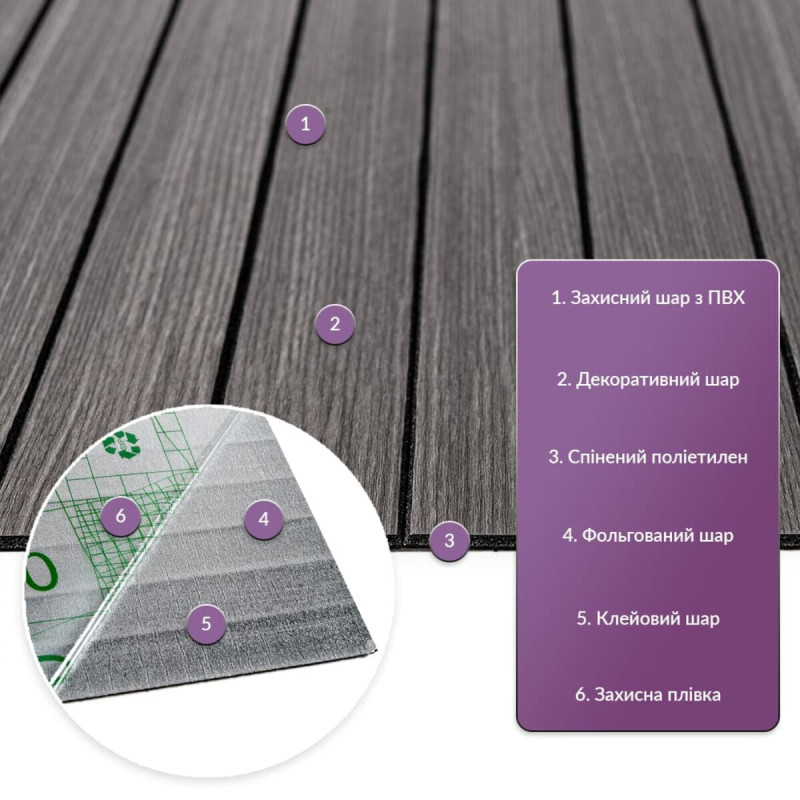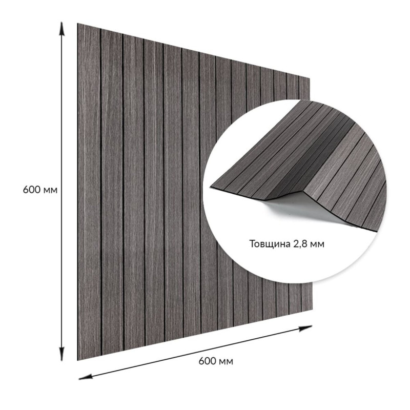 Wall covering vinyl 3D slats Sticker wall 600*600*2.8mm (D) SW-00002196 Vinyl flexible slats are a modern decorative material used for interior wall decoration. They are easy to install thanks to the adhesive base and are available in various designs that imitate natural materials, making them versatile for various interior solutions. Main characteristics: - Size: 600x600x2.8 mm. - Coverage area: 0.36 sq.m. per tile. - Texture: relief, with a matte surface, imitating wooden slats. Composition: 1. Protective PVC layer - provides protection against minor mechanical damage, prevents abrasion and fading due to UV protection, maintains color saturation. PVC is resistant to chemicals, has high elasticity and lightness. 2. Decorative layer - high-resolution colored film that imitates the texture of natural materials due to a clear and detailed image. 3. Foamed polyethylene (PE) is a polymer with a closed cell structure that is lightweight, flexible, has good heat and sound insulation properties, and is resistant to moisture. 4. Foil layer - reflects heat waves, which helps reduce heat loss and increase the energy efficiency of the room. 5. Adhesive layer - a base with high adhesion, safe for health and providing reliable fastening. 6. Protective film - prevents drying and contamination of the adhesive layer, easily removed before installation. Temperature conditions: The vinyl strip is resistant to high temperatures, however, when installed near an open fire, for example, in the kitchen, it is recommended to mount it at a distance of 30-50 cm from heat sources. Scope of application: The material is used for interior decoration of residential and commercial premises. Vinyl slats are suitable for walls in kitchens, bathrooms, living rooms, children's rooms, bedrooms and hallways, as well as for offices, shops, beauty salons, fitness centers, hotels, restaurants and cafes. In addition, they can be used to decorate furniture, doors, window sills and other flat surfaces. Advantages and features of vinyl slats: • Easy to install: Vinyl slats are equipped with an adhesive layer, which makes their installation quick and easy. No additional materials are required, and the rails are easy to cut with a knife or scissors and laid end to end. When installed on walls, the percentage of scraps is minimal. • Moisture resistance: Vinyl slats are resistant to moisture, so they are ideal for use in rooms such as bathrooms and kitchens. They are not subject to swelling and are well resistant to steam and mold. • Durability: The slats are resistant to wear, mechanical damage and scratches, which guarantees their long service, even under intensive use. • Aesthetic diversity: They are presented in a wide range of textures, colors and patterns imitating natural materials. This allows you to choose an option for any interior. They can be mounted horizontally, vertically or at an angle, creating interesting decorative effects. • Easy to maintain: Vinyl slats are easy to clean, do not require special detergents and do not absorb dirt. • Insulation properties: The slats have good heat and sound insulation characteristics, which makes them an excellent choice for rooms where comfort in terms of heat and acoustics is important. • Environmentally friendly: Vinyl slats are made of safe materials that do not emit harmful substances and are recyclable, making them an environmentally friendly product. • Lightweight: Due to their light weight, vinyl slats are easy to transport and install. This makes them ideal for use in rooms where it is important to minimize the load on structures, such as thin walls or partitions. • Thin profile and 3D effect: The slats are only 2.8 mm thick, which allows you to create spectacular 3D solutions without losing usable space. This is especially convenient for small rooms, corridors and office spaces. Calculating the required amount of material: 1. Measure the length and height of the surface you plan to wallpaper. 2. Multiply the length by the height of each wall in meters to determine their area. Add up all the results to get the total area. For example, if the length of the wall is 4.35 m and the height is 2.8 m, the calculation will look like this: 4.35 * 2.8 = 12.18 sq.m. 3. Divide the resulting area by the area of one panel. For example, for a panel measuring 600x600 mm: 600 * 600 = 0.36 sq.m. Divide the total area by the area of one panel: 12.18 / 0.36 = 33.83, rounded up to 34 panels. 4. Don't forget to take into account possible waste when cutting the material. For this purpose, it is recommended to add one panel (600x3000 mm) or 2-3 panels (600x600 mm) to avoid a shortage of material. Installation: Flexible vinyl strip can be glued to surfaces such as old tiles, glass, paint, as well as primed concrete with small irregularities and minor defects. Surface preparation is not required, except in cases where it is whitewashed - then it must be cleaned. - The room for installation must be dry, with an air temperature of +15 to +20 degrees. - Before starting installation, make sure that the surface is clean, dry and smooth. Remove dust, dirt and oil stains, prime if necessary and let the surface dry for at least 4 hours. The vinyl strip and the surface must be at room temperature to ensure reliable adhesion. - Remove the protective film from the adhesive base gradually, starting from one edge. - It is better to start installation from the corner, carefully pressing the strip to the surface. Make sure that the strip is glued smoothly, without the formation of bubbles and folds. - The vinyl strip can be easily trimmed with a utility knife or scissors to fit the required size, especially in corners and edges. - For better adhesion, press the strip to the surface with your hand or with a rubber roller, ensuring a tight fit to the base.Characteristics