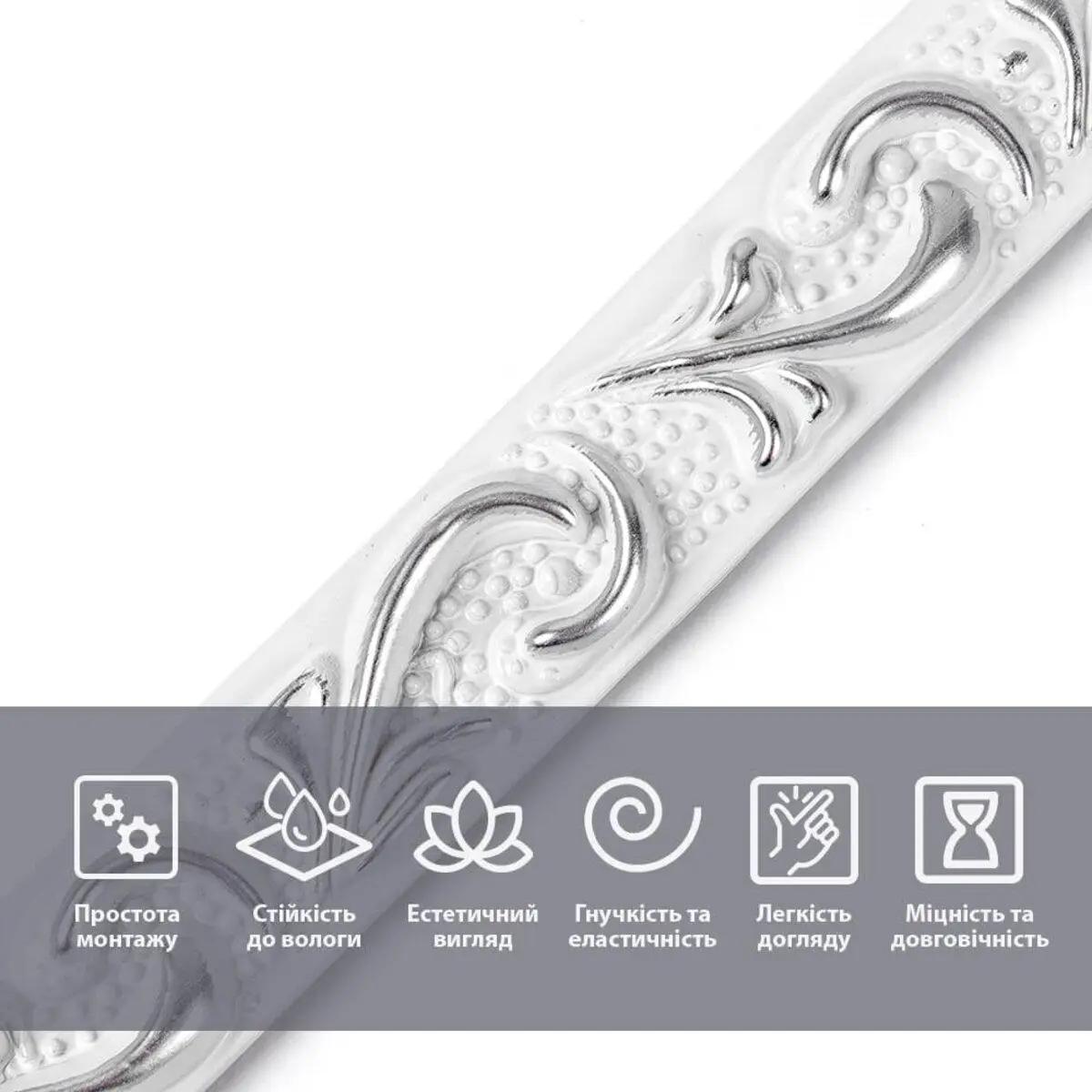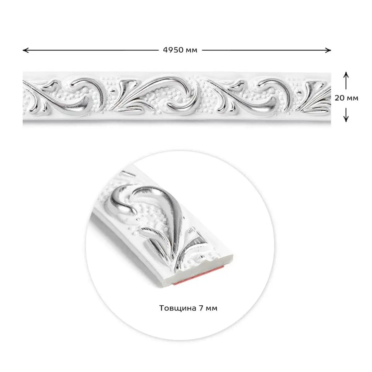 Молдинг Sticker wall 4950х20х7 мм Белый с серебром SW-00002679
