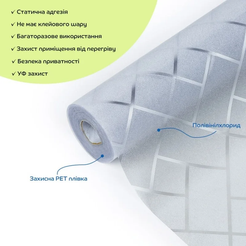 ПВХ-пленка для окон – это декоративный материал, предназначенный для оформления стеклянных поверхностей. Она создает эффект уединения, защищает от вредного ультрафиолетового излучения и добавляет эстетики вашему интерьеру. Пленка легко наносится на стекло, делая его непрозрачным и ограничивая видимость с обеих сторон. Особенности: - Материал: поливинилхлорид (PVC) + РЭТ пленка. - Размер: 600х10000мм. - Площадь покрытия: 600х10000мм – 6 кв.м. - Поверхность: гладкая (позволяет свету плавно проникать через неё, создавая мягкое, рассеянное освещение). - Фактура: призматическая (преломляет свет, создавая красивые отблески и узоры, напоминающие грани призм или стекла). Оконная ПВХ-пленка состоит из нескольких слоев: 1. Основным компонентом пленки является поливинилхлорид (ПВХ) — термопластичный полимер, известный своей высокой прочностью, долговечностью и устойчивостью к внешним воздействиям. Благодаря своей прозрачности, ПВХ-пленка позволяет максимально использовать естественное освещение и эффективно блокирует ультрафиолетовое излучение. Этот материал водонепроницаем, не подвержен коррозии и легко поддается очистке, что гарантирует продолжительный срок службы. 2. Релизный слой из полиэтилентерефталата (РЭТ) служит для защиты гладкой поверхности ПВХ-пленки до момента ее использования. Он легко отделяется, не оставляя следов, и обеспечивает сохранность основного материала. Применение: Оконная ПВХ пленка широко используется в различных сферах. В офисах она помогает поддерживать конфиденциальность и снижать блики от солнечного света. В жилых домах пленка служит не только декоративным элементом, но и защищает мебель от выгорания. В коммерческих пространствах, таких как магазины и рестораны, пленка придает витринам эстетичный вид и обеспечивает приватность. Она также востребована для оформления выставочных стендов и служит средством обновления внешнего вида кухонной мебели, защищая её от повреждений. В торговых центрах пленка используется для декорирования окон, препятствуя любопытным взглядам и снижая расходы на кондиционирование воздуха. Преимущества и функциональные качества материала: 1. Эстетика и световые эффекты: Оконные пленки способны придать окнам неповторимый стиль, создавая красивые световые переливы и эффект радуги при солнечном свете. Это стильное и современное решение для декора, которое может заменить традиционные шторы и жалюзи, добавляя интерьеру утончённость. 2. Защита от ультрафиолета: Пленки эффективно блокируют ультрафиолетовые лучи, предотвращая выцветание мебели и предметов интерьера, что продлевает их срок службы и сохраняет внешний вид. 3. Конфиденциальность: Полупрозрачные пленки защищают от посторонних взглядов, одновременно пропуская мягкий дневной свет. Это обеспечивает уют и приватность без необходимости закрывать окна плотными шторами. 4. Простота установки: Оконные пленки легко монтируются без использования клея. Для их закрепления требуется лишь мыльная вода, что позволяет легко корректировать их положение при установке и упрощает процесс снятия. 5. Многоразовое использование: Поскольку пленки не имеют клеевой основы, их можно многократно снимать и снова устанавливать. Это даёт возможность часто менять дизайн окон, экспериментируя с различными стилями, без лишних затрат. 6. Контроль т