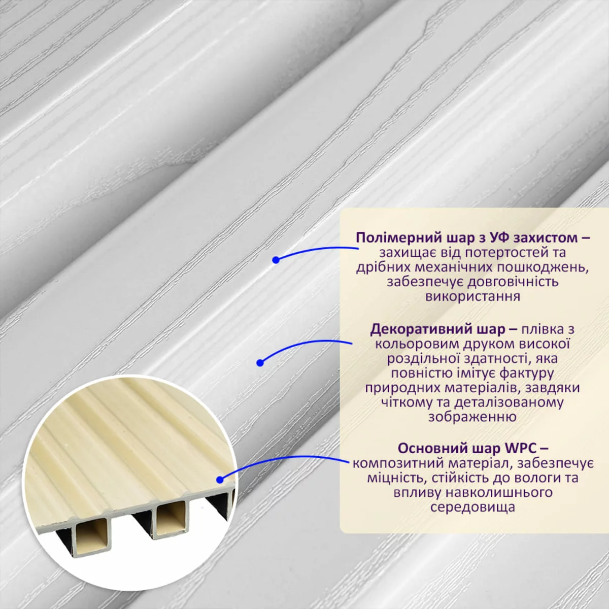 WPC (Wood-Plastic Composite) – это композитный материал, сочетающий в себе красоту и практичность. Стеновые рейки WPC – это современное решение для внутренней отделки, имитирующее натуральную древесину. WPC-рейки изготавливаются из смеси древесных волокон и полимеров, благодаря чему они сохраняют визуальную теплоту натурального дерева, но при этом значительно превосходят его по эксплуатационным характеристикам. Материал не подвержен растрескиванию, короблению и воздействию влаги, что делает его идеальным для использования в помещениях с перепадами температуры и влажности. Поверхность реек устойчива к механическим повреждениям, не требует регулярного ухода и сохраняет первоначальный внешний вид на протяжении многих лет. Стеновые рейки WPC отличаются высокой универсальностью и подходят для оформления жилых и коммерческих интерьеров: гостиных, спален, коридоров, офисов, отелей и общественных пространств. Они позволяют создавать выразительные акцентные стены, зонировать пространство и добавлять интерьеру глубину и ритм. Широкий выбор текстур и оттенков под натуральное дерево дает возможность гармонично вписать рейки в современные, скандинавские, минималистичные и классические стили оформления. Монтаж стеновых реек WPC прост и удобен, не требует сложных инструментов или специальных навыков. Материал легко поддается резке и установке, что ускоряет процесс отделки и снижает затраты на монтажные работы. Кроме того, WPC является экологически безопасным и долговечным решением, сочетая эстетическую привлекательность, функциональность и практичность, что делает его оптимальным выбором для современных интерьеров. Преимущества: 1. Устойчивость к влаге: WPC не разбухает и не деформируется, что делает его идеальным выбором для кухни, ванной комнаты и других помещений с повышенной влажностью. 2. Устойчивость к гниению и насекомым: WPC не подвержен гниению и не привлекает насекомых, что обеспечивает его долговечность. 3. Стойкость к УФ-излучению: WPC не выцветает на солнце, сохраняя свой первоначальный вид на протяжении долгих лет. 4. Привлекательный внешний вид: Декоративный слой WPC реалистично имитирует фактуру натурального дерева, создавая стильный и уютный интерьер. 5. Простота обслуживания: WPC не требует покраски, обработки антисептиками и другими защитными средствами. 6. Экологичность: WPC не содержит вредных веществ и является безопасным для здоровья человека. Применение: - Декорирование стен во всех видах жилых помещений (кухня, гостиная, детская или спальня, входная группа). - Декорирование коммерческих помещений (офисные помещения, зоны рецепций, магазины, салоны красоты или фитнес-центры). - Декорирование мебели, дверей и других ровных поверхностей. Температурный режим: от -50 до +80 градусов. Расчет нужного количества материала: 1. Измерьте длину и высоту оклеиваемой поверхности. 2. Умножьте длину на высоту каждой поверхности в метрах и составьте полученные результаты, чтобы получить площадь. К примеру, после измерений вы получили: длина стены 3,2 м, высота стены 2,7 м (3,2*2,7 = 8,64 кв.м) 3. Получившуюся площадь необходимо разделить на площадь одной рейки (200*2900= 0,58 кв.м) и округлить в большую сторону:8,64/0,58=14,89 (округляем до 15). В процессе монтажа могут возникнуть отходы, связанные с порезкой реек, поэтому рекомендуется добавить в расчет запасные 1-2 шт. Инст