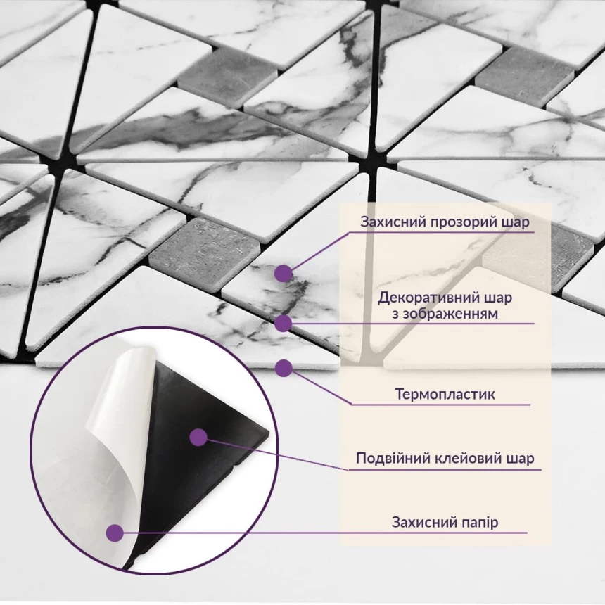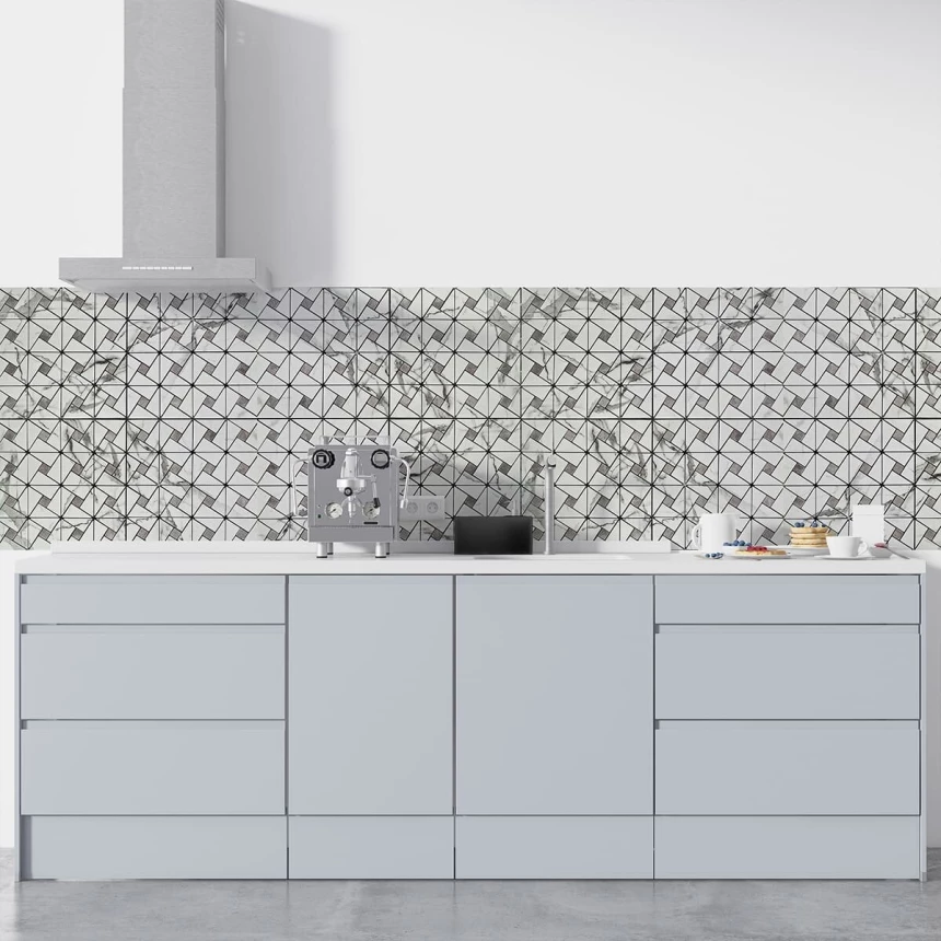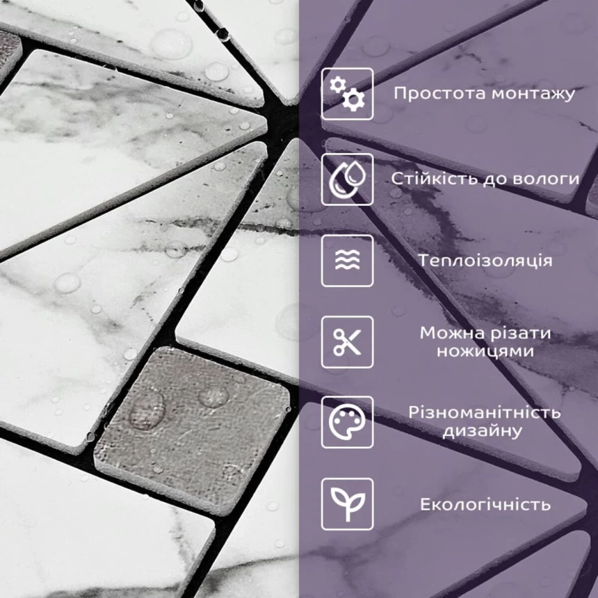 Плитка из полиэтилентерефталата (ПЭТ) – это инновационный материал, который открывает новые возможности для создания стильных интерьеров. Благодаря своей легкости, прочности и экологичности, она становится идеальным выбором для декорирования жилых и коммерческих помещений. ПЭТ-плитка позволяет реализовать самые смелые дизайнерские идеи: от элегантных мозаичных узоров до оригинальных художественных инсталляций. Этот материал отлично подходит для отделки стен, мебели, дверей и других поверхностей, создавая современный и функциональный вид. Его универсальность, простота монтажа и долговечность делают ПЭТ-плитку незаменимым решением для любого интерьера. Основные характеристики: Материал: ПЭТ (полиэтилентерефталат). Размер: 30 см x 30 см x 4 мм. Вес: 75 грамм. Площадь покрытия: 1 плитка = 0,09 кв.м; для 1 кв.м требуется 12 единиц. Фактура: ровная, с углублениями между мозаичными элементами. Слои: - Защитный прозрачный слой. - Декоративный слой с изображением. - Термопластик. - Двойной клеевой слой. - Защитная бумага. Температурный режим: от -40°C до +75°C. Назначение: ПЭТ-плитка идеально подходит для внутренних отделочных работ. Она используется для декорирования стен в жилых помещениях (кухня, ванная комната, гостиная, спальня, прихожая), а также в коммерческих объектах. Материал также применяется для отделки мебели, дверей и создания декоративных элементов. Преимущества ПЭТ-плитки: 1. Легкость и прочность: материал легкий, простой в монтаже и долговечный. Плитку можно резать ножницами или монтажным ножом, что делает процесс установки быстрым и удобным. 2. Устойчивость к влаге: ПЭТ-плитка не боится влаги, пара и плесени, что делает ее идеальным выбором для кухонь, ванных комнат и других помещений с повышенной влажностью. 3. Изоляционные свойства: благодаря воздушным прослойкам материал обеспечивает звуковую и теплоизоляцию. 4. Антистатический эффект: поверхность не притягивает пыль, что облегчает уход за ней. 5. Разнообразие дизайна: широкий выбор цветов, текстур и принтов позволяет создавать уникальные интерьеры. 6. Экологичность: ПЭТ-плитка может быть переработана, что делает ее экологически чистым вариантом. 7. Простота в уходе: поверхность легко моется и не требует специальных средств для очистки. 8. Долговечность: срок службы плитки составляет от 5 лет и более. Инструкция по монтажу: 1. Подготовка поверхности: Убедитесь, что поверхность чистая, сухая и ровная. Удалите пыль, грязь и масляные пятна. Плитка и поверхность должны быть комнатной температуры для лучшего сцепления. 2. Снятие защитного слоя: Снимите защитную пленку с обратной стороны плитки, чтобы открыть клейкую поверхность. 3. Начало монтажа: Начните установку с угла, аккуратно прижимая плитку к поверхности. Следите за тем, чтобы плитка ложилась ровно, без пузырьков или складок. 4. Подгонка по размеру: Используйте нож или ножницы для подрезания плитки, особенно по краям и в углах. 5. Фиксация: Плотно прижимайте плитку к поверхности, чтобы обеспечить прочное сцепление. Почему стоит выбрать ПЭТ-плитку? ПЭТ-плитка – это современное решение для тех, кто ценит стиль, практичность и экологичность. Она сочетает в себе легкость монтажа, долговечность и эстетичный вид, что делает ее идеальным выбором для любого интерьера. Создайте уникальный дизайн вашего помещения с ПЭТ-плиткой – и наслаждайте
