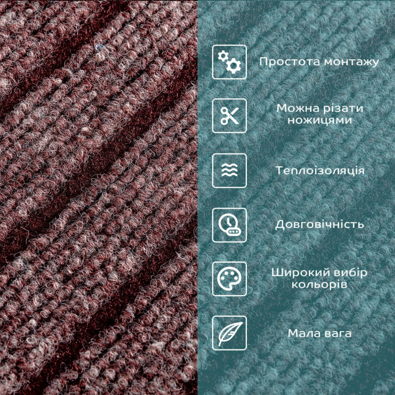 Самоклеящаяся плитка под ковролин Sticker wall мокко 300*300*4,5MM (D) SW-00002488 идеально подходит для создания уютной и практичной обстановки в помещении. Благодаря ворсовому покрытию она обеспечивает комфорт при ходьбе и обладает хорошими звукоизоляционными свойствами. Самоклеящееся основание значительно упрощает процесс укладки, не требуя дополнительных инструментов или клея. Такая плитка устойчива к износу, что делает её отличным выбором для помещений с высокой проходимостью. Кроме того, разнообразие оттенков и текстур позволяет подобрать оптимальный вариант под любой интерьер. Монтаж можно выполнить самостоятельно, что экономит время и средства на привлечение специалистов. Особенности: Компактные размеры: 300x300x4,5 мм – удобно для укладки в любых помещениях. Эффективное покрытие: 1 плитка – 0,09 кв. м, легко комбинировать для создания уникального дизайна. Легкий вес: всего 50 грамм, что упрощает монтаж. Приятная фактура: мягкая, ворсистая поверхность дарит уют и комфорт. Ковролиновая плитка – инновационное покрытие для стильного и комфортного пространства! Многослойная структура для максимальной эффективности: • Ворсовый слой из нейлона – прочные и эластичные волокна, устойчивые к разрывам, влаге и пятнам, обеспечивают износостойкость и комфорт при ходьбе. • РЕ пена – пористый полимерный материал с множеством воздушных ячеек, придающий покрытию упругость и способность быстро восстанавливать форму после нагрузки. • Фольгированный слой – отражает тепловые волны, улучшая теплоизоляцию и снижая теплопотери в помещении. • Клеевой слой – надежное нетоксичное основание с высокой адгезией, гарантирует прочное сцепление с поверхностью. • Защитная пленка – предотвращает пересыхание клея и защищает его от загрязнений, легко удаляется при укладке. Широкая сфера применения Ковролиновая плитка идеально подходит для внутренней отделки полов, а также стен в жилых и коммерческих помещениях: • Дом: кухня, гостиная, детская, спальня, прихожая. • Бизнес-пространства: офисы, зоны рецепций, магазины, салоны красоты, фитнес-центры, мастерские. • Декор мебели и дверей: легко наносится на ровные поверхности, создавая стильные интерьерные решения. Ковролиновая плитка — это идеальное покрытие для дома, офиса и коммерческих помещений. Она сочетает в себе удобство, долговечность и эстетическую привлекательность. Преимущества ковролиновой плитки: 1. Легкость установки – благодаря клеевому слою укладка занимает минимум времени и не требует специальных навыков. Материал легко разрезается ножницами или монтажным ножом, не расходится на стыках, не набухает и не деформируется. 2. Гибкость и прочность – плитка адаптируется к неровностям поверхности, оставаясь при этом устойчивой к нагрузкам. 3. Влаго- и химическая стойкость – не пропускает воду, предотвращает появление плесени и грибка, устойчива к воздействию бытовой химии. 4. Звукоизоляция – снижает уровень шума, создавая комфортную атмосферу в квартире, офисе или коммерческом помещении. 5. Широкий выбор дизайнов – разнообразие цветов, текстур и узоров позволяет подобрать идеальный вариант для любого интерьера. 6. Теплоизоляция – удерживает тепло, снижая затраты на отопление в холодное время года. 7. Простота в уходе – легко чистится и моется, сохраняя презентабельный вид на долгие годы. 8. Износ