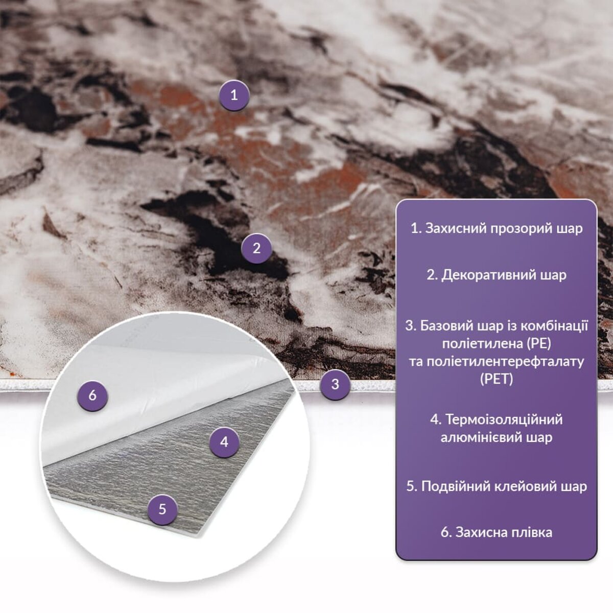 Самоклеящаяся стеновая PET плитка Sticker wall 600*300*2mm (D) SW-00002297 Самоклеющаяся стеновая PET плитка Sticker wall — это современное и удобное решение для стильного и быстрого обновления интерьера. Она идеально подходит для создания оригинальных акцентов на стенах, добавляя текстуры и глубины пространству. Материал представляет собой смесь двух полимеров - полиэтилена (PE) и полиэтилентерефталата (PET), которая обеспечивает отличные клеящие свойства и прочность. Размеры: - Плитка: 60 см х 30 см х 2 мм - Длина: 60 см - Высота: 30 см - Толщина: 2 мм Вес: плитка 60 см х 30 см - 104 грамм. Площадь покрытия: 60 см х 30 см х 2 мм – 0,18 кв. м, количество на 1 кв. м – 6 единиц. Фактура: ровная. Материал содержит следующие слои: 1. Прозрачный защитный слой. 2. Декоративный слой с изображением. 3. Основной слой, состоящий из сочетания полиэтилена (PE) и полиэтилентерефталата (PET). 4. Термоизоляционный слой из алюминия. 5. Двойной слой клея. 6. Защитная бумага. Температурный режим: -40 – +75 градусов. Применение: Может быть использован для различных внутренних отделочных работ, таких как декорирование стен в жилых помещениях (например, кухня, ванная комната, гостиная, детская или спальня, входная зона) и коммерческих помещениях (офисы, зоны рецепции, магазины, салоны красоты, фитнес-центры и общественные места). Кроме того, его можно использовать для декорирования мебели, дверей и других ровных поверхностей. Свойства и преимущества материала: 1. Легкость и прочность: обладает легкостью и прочностью, что упрощает его транспортировку, монтаж и обеспечивает долгий срок службы. Он удобен в установке, может быть легко вырезан ножницами или монтажным ножом, не требует дополнительных материалов или профессиональных навыков. Материал не расщепляется, не надувается и не деформируется между полосами, с минимальными потерями, что делает его идеальным для стеновых покрытий. 2. Водостойкость: этот материал устойчив к воздействию влаги, пару и грибку, что делает его подходящим для применения в помещениях с высокой влажностью, таких как ванные комнаты и кухни. Его можно использовать для создания фартука на кухне, проклеивая плитки на расстоянии не менее 20-25 см. 3. Изоляция: плитка обеспечивает звуковую и теплоизоляцию благодаря наличию воздушных прослоек и дополнительному алюминиевому слою. 4. Антистатический эффект: в составе покрытия содержится антистатик, что предотвращает накопление пыли на поверхности. 5. Разнообразие дизайна: плитки доступны в разнообразных цветовых и структурных вариациях, что позволяет выбрать подходящий дизайн для вашего интерьера. 6. Имитация других материалов: дизайн этой плитки разработан с учетом имитации других материалов, таких как камень или керамика, предлагая эстетически приятное решение по доступной цене. 7. Экологическая дружелюбность: материал может быть утилизирован и переработан, что делает его более экологически чистым вариантом по сравнению с некоторыми другими материалами. 8. Простота обслуживания: поверхность плитки легко очищается и не требует особого ухода. 9. Долгий срок службы: материал является прочным и устойчивым к износу, что гарантирует его долгий срок службы. Монтаж: Шаг 1 Перед началом установки убедитесь, что поверхность, на которую вы собираетесь устанавливать плитку, чиста, суха и ровна. Необходимо удалить все следы пыли, грязи или масла с поверхност