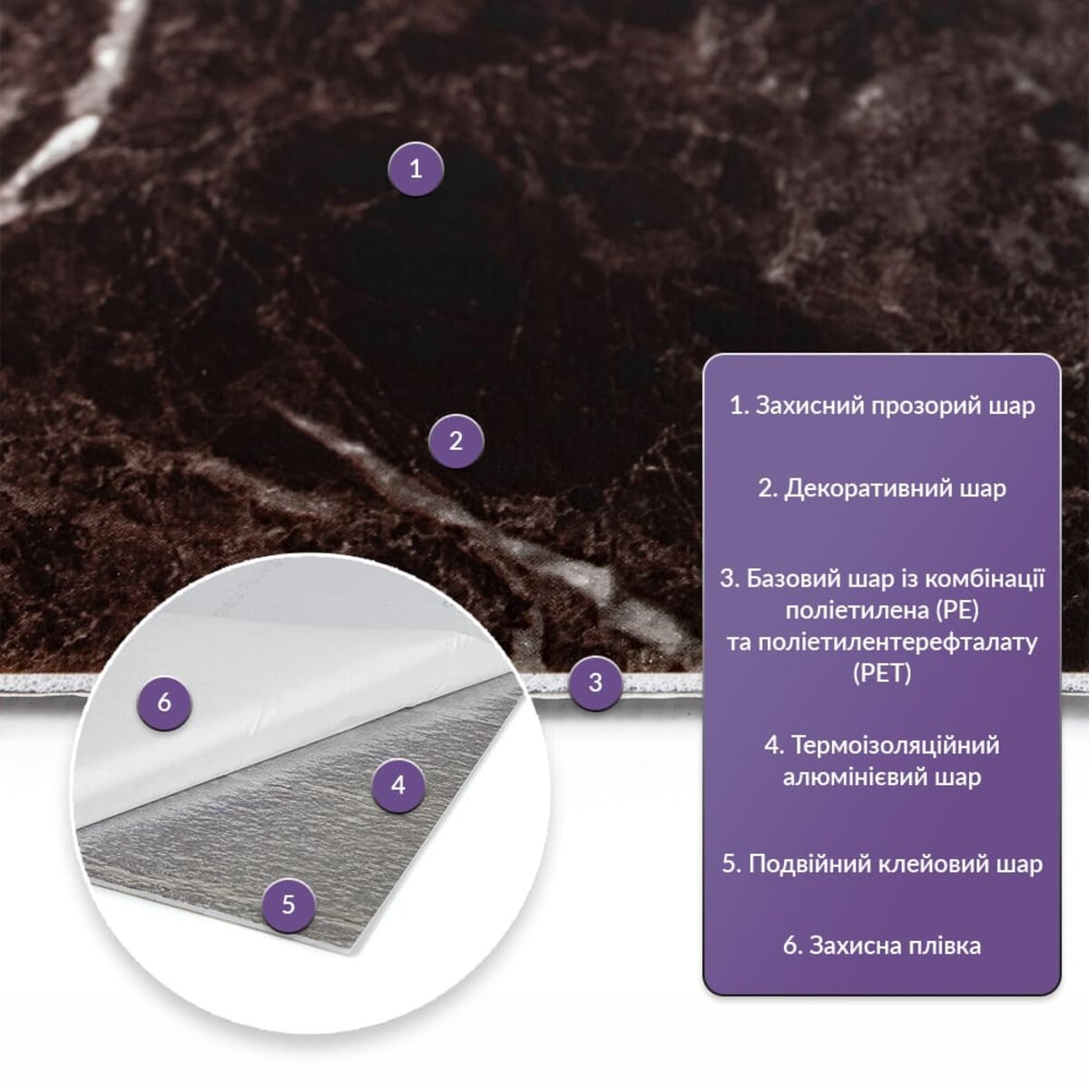 Самоклеящаяся стеновая PET плитка Sticker wall 600*300*2mm (D) SW-00002319 Самоклеющаяся стеновая PET плитка Sticker wall — это современное и удобное решение для стильного и быстрого обновления интерьера. Она идеально подходит для создания оригинальных акцентов на стенах, добавляя текстуры и глубины пространству. Материал представляет собой смесь двух полимеров - полиэтилена (PE) и полиэтилентерефталата (PET), которая обеспечивает отличные клеящие свойства и прочность. Размеры: - Плитка: 60 см х 30 см х 2 мм - Длина: 60 см - Высота: 30 см - Толщина: 2 мм Вес: плитка 60 см х 30 см - 104 грамм. Площадь покрытия: 60 см х 30 см х 2 мм – 0,18 кв. м, количество на 1 кв. м – 6 единиц. Фактура: ровная. Материал содержит следующие слои: 1. Прозрачный защитный слой. 2. Декоративный слой с изображением. 3. Основной слой, состоящий из сочетания полиэтилена (PE) и полиэтилентерефталата (PET). 4. Термоизоляционный слой из алюминия. 5. Двойной слой клея. 6. Защитная бумага. Температурный режим: -40 – +75 градусов. Применение: Может быть использован для различных внутренних отделочных работ, таких как декорирование стен в жилых помещениях (например, кухня, ванная комната, гостиная, детская или спальня, входная зона) и коммерческих помещениях (офисы, зоны рецепции, магазины, салоны красоты, фитнес-центры и общественные места). Кроме того, его можно использовать для декорирования мебели, дверей и других ровных поверхностей. Свойства и преимущества материала: 1. Легкость и прочность: обладает легкостью и прочностью, что упрощает его транспортировку, монтаж и обеспечивает долгий срок службы. Он удобен в установке, может быть легко вырезан ножницами или монтажным ножом, не требует дополнительных материалов или профессиональных навыков. Материал не расщепляется, не надувается и не деформируется между полосами, с минимальными потерями, что делает его идеальным для стеновых покрытий. 2. Водостойкость: этот материал устойчив к воздействию влаги, пару и грибку, что делает его подходящим для применения в помещениях с высокой влажностью, таких как ванные комнаты и кухни. Его можно использовать для создания фартука на кухне, проклеивая плитки на расстоянии не менее 20-25 см. 3. Изоляция: плитка обеспечивает звуковую и теплоизоляцию благодаря наличию воздушных прослоек и дополнительному алюминиевому слою. 4. Антистатический эффект: в составе покрытия содержится антистатик, что предотвращает накопление пыли на поверхности. 5. Разнообразие дизайна: плитки доступны в разнообразных цветовых и структурных вариациях, что позволяет выбрать подходящий дизайн для вашего интерьера. 6. Имитация других материалов: дизайн этой плитки разработан с учетом имитации других материалов, таких как камень или керамика, предлагая эстетически приятное решение по доступной цене. 7. Экологическая дружелюбность: материал может быть утилизирован и переработан, что делает его более экологически чистым вариантом по сравнению с некоторыми другими материалами. 8. Простота обслуживания: поверхность плитки легко очищается и не требует особого ухода. 9. Долгий срок службы: материал является прочным и устойчивым к износу, что гарантирует его долгий срок службы. Монтаж: Шаг 1 Перед началом установки убедитесь, что поверхность, на которую вы собираетесь устанавливать плитку, чиста, суха и ровна. Необходимо удалить все следы пыли, грязи или масла с поверхност