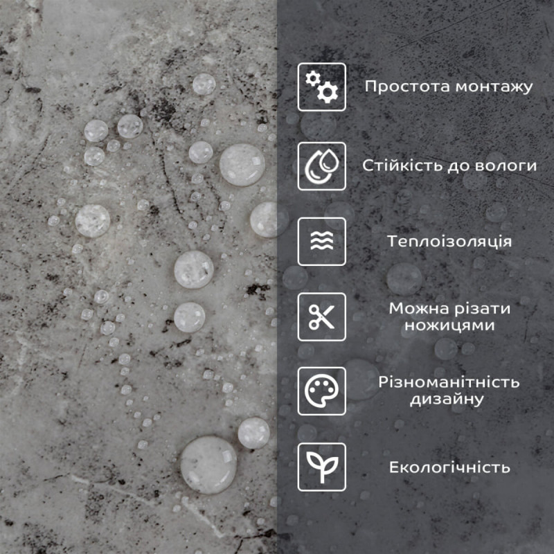 Самоклеящаяся стеновая PET плитка Sticker wall 600*300*2mm (D) SW-00002337 Самоклеющаяся стеновая PET плитка Sticker wall — это современное и удобное решение для стильного и быстрого обновления интерьера. Она идеально подходит для создания оригинальных акцентов на стенах, добавляя текстуры и глубины пространству. Материал представляет собой смесь двух полимеров - полиэтилена (PE) и полиэтилентерефталата (PET), которая обеспечивает отличные клеящие свойства и прочность. Размеры: - Плитка: 60 см х 30 см х 2 мм - Длина: 60 см - Высота: 30 см - Толщина: 2 мм Вес: плитка 60 см х 30 см - 104 грамм. Площадь покрытия: 60 см х 30 см х 2 мм – 0,18 кв. м, количество на 1 кв. м – 6 единиц. Фактура: ровная. Материал содержит следующие слои: 1. Прозрачный защитный слой. 2. Декоративный слой с изображением. 3. Основной слой, состоящий из сочетания полиэтилена (PE) и полиэтилентерефталата (PET). 4. Термоизоляционный слой из алюминия. 5. Двойной слой клея. 6. Защитная бумага. Температурный режим: -40 – +75 градусов. Применение: Может быть использован для различных внутренних отделочных работ, таких как декорирование стен в жилых помещениях (например, кухня, ванная комната, гостиная, детская или спальня, входная зона) и коммерческих помещениях (офисы, зоны рецепции, магазины, салоны красоты, фитнес-центры и общественные места). Кроме того, его можно использовать для декорирования мебели, дверей и других ровных поверхностей. Свойства и преимущества материала: 1. Легкость и прочность: обладает легкостью и прочностью, что упрощает его транспортировку, монтаж и обеспечивает долгий срок службы. Он удобен в установке, может быть легко вырезан ножницами или монтажным ножом, не требует дополнительных материалов или профессиональных навыков. Материал не расщепляется, не надувается и не деформируется между полосами, с минимальными потерями, что делает его идеальным для стеновых покрытий. 2. Водостойкость: этот материал устойчив к воздействию влаги, пару и грибку, что делает его подходящим для применения в помещениях с высокой влажностью, таких как ванные комнаты и кухни. Его можно использовать для создания фартука на кухне, проклеивая плитки на расстоянии не менее 20-25 см. 3. Изоляция: плитка обеспечивает звуковую и теплоизоляцию благодаря наличию воздушных прослоек и дополнительному алюминиевому слою. 4. Антистатический эффект: в составе покрытия содержится антистатик, что предотвращает накопление пыли на поверхности. 5. Разнообразие дизайна: плитки доступны в разнообразных цветовых и структурных вариациях, что позволяет выбрать подходящий дизайн для вашего интерьера. 6. Имитация других материалов: дизайн этой плитки разработан с учетом имитации других материалов, таких как камень или керамика, предлагая эстетически приятное решение по доступной цене. 7. Экологическая дружелюбность: материал может быть утилизирован и переработан, что делает его более экологически чистым вариантом по сравнению с некоторыми другими материалами. 8. Простота обслуживания: поверхность плитки легко очищается и не требует особого ухода. 9. Долгий срок службы: материал является прочным и устойчивым к износу, что гарантирует его долгий срок службы. Монтаж: Шаг 1 Перед началом установки убедитесь, что поверхность, на которую вы собираетесь устанавливать плитку, чиста, суха и ровна. Необходимо удалить все следы пыли, грязи или масла с поверхност