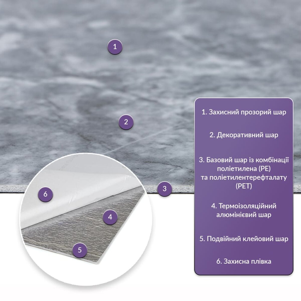 PET плитка — это современное решение для внутренней отделки, сочетающее в себе стиль, простоту монтажа и высокую износостойкость. Она идеально подходит для оформления стен в самых разных типах помещений — от жилых пространств до коммерческих объектов. Используйте её в кухнях, ванных, гостиных, детских, спальнях, а также в офисах, ресепшен-зонах, салонах красоты, магазинах, фитнес-центрах и других общественных местах. Универсальность материала позволяет применять PET плитку не только на стенах, но и на мебели, дверях и любых других ровных поверхностях. Благодаря самоклеящейся основе установка не требует специальных инструментов и занимает минимум времени. Каждый дизайн PET плитки тщательно разработан для точной имитации натуральных материалов — камня, керамики и других популярных текстур. Это позволяет создать стильный и гармоничный интерьер без лишних затрат. Материал представляет собой смесь двух полимеров - полиэтилена (PE) и полиэтилентерефталата (PET), которая обеспечивает отличные клеящие свойства и прочность. Размеры: - Рулон: 120 см х 300 см х 2 мм - Длина: 300 см - Ширина: 120 см - Толщина: 2 мм Площадь покрытия: 120 см х 300 см х 2 мм – 3,6 кв. м. Фактура: ровная. Материал содержит следующие слои: 1. Прозрачный защитный слой. 2. Декоративный слой с изображением. 3. Основной слой, состоящий из сочетания полиэтилена (PE) и полиэтилентерефталата (PET). 4. Термоизоляционный слой из алюминия. 5. Двойной слой клея. 6. Защитная бумага. Температурный режим: -40 – +75 градусов. Применение: Может быть использован для различных внутренних отделочных работ, таких как декорирование стен в жилых помещениях (например, кухня, ванная комната, гостиная, детская или спальня, входная зона) и коммерческих помещениях (офисы, зоны рецепции, магазины, салоны красоты, фитнес-центры и общественные места). Кроме того, его можно использовать для декорирования мебели, дверей и других ровных поверхностей. Свойства и преимущества материала: 1. Легкость и прочность: обладает легкостью и прочностью, что упрощает его транспортировку, монтаж и обеспечивает долгий срок службы. Он удобен в установке, может быть легко вырезан ножницами или монтажным ножом, не требует дополнительных материалов или профессиональных навыков. Материал не расщепляется, не надувается и не деформируется между полосами, с минимальными потерями, что делает его идеальным для стеновых покрытий. 2. Водостойкость: этот материал устойчив к воздействию влаги, пару и грибку, что делает его подходящим для применения в помещениях с высокой влажностью, таких как ванные комнаты и кухни. Его можно использовать для создания фартука на кухне, проклеивая плитки на расстоянии не менее 20-25 см. 3. Изоляция: плитка обеспечивает звуковую и теплоизоляцию благодаря наличию воздушных прослоек и дополнительному алюминиевому слою. 4. Антистатический эффект: в составе покрытия содержится антистатик, что предотвращает накопление пыли на поверхности. 5. Разнообразие дизайна: плитки доступны в разнообразных цветовых и структурных вариациях, что позволяет выбрать подходящий дизайн для вашего интерьера. 6. Имитация других материалов: дизайн этой плитки разработан с учетом имитации других материалов, таких как камень или керамика, предлагая эстетически приятное решение по доступной цене. 7. Экологическая дружелюбность: материал может быть ути