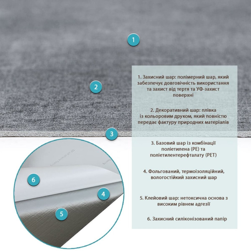 Виниловая самоклеящаяся плитка — это современное и практичное решение для быстрого и стильного обновления интерьера. Благодаря инновационной клеевой основе, монтаж этого декоративного материала для внутренней отделки становится невероятно простым и не требует специальных навыков или дорогостоящего инструмента. Широкий ассортимент дизайнов, включающий богатую палитру цветов, узоров и реалистичных текстур, искусно имитирующих натуральные материалы (дерево, камень, мрамор, бетон), позволяет идеально интегрировать плитку в любое интерьерное решение — от классики до лофта. Исключительная прочность, долговечность и абсолютная влагостойкость делают виниловую плитку по-настоящему универсальной. Она подходит для применения в самых разнообразных помещениях и на любых ровных поверхностях: от пола и стен в ванных комнатах и кухнях с повышенной влажностью, до жилых зон и коммерческих объектов с высокой эксплуатационной нагрузкой. Материал: поливинилхлорид (PVC) Размеры: 600x300x1.5мм Вес одной плитки: 115 грамм Площадь покрытия: 0,18 кв.м, количество на 1 кв.м - 6 единиц Поверхность: ровная, матовая Материал 1. Полимерный Слой (Защита и Долговечность): Обеспечивает защиту от механических повреждений и потертостей. Встроенная УФ-защита критически важна для предотвращения выгорания, сохраняя насыщенный цвет и эстетическую привлекательность покрытия на весь срок службы. 2. Декоративный Слой (Визуальная Имитация): Пленка с печатью высокого разрешения, которая благодаря четкому и детализированному изображению в совершенстве имитирует фактуру природных материалов. 3. Основной Слой из ПВХ (Химическая Стойкость): Сформирован из длинных молекулярных цепей винилхлорида. Наличие атомов хлора в структуре полимера наделяет материал высокой устойчивостью к воздействию химических веществ. 4. Фольгированный Слой (Теплоизоляция): Специальный слой для отражения тепловых волн, минимизации потерь тепла и существенного улучшения теплоизоляционных свойств помещения. 5. Клеевой Слой (Надежное Крепление): Нетоксичная основа с превосходным уровнем адгезии для максимально прочного сцепления. 6. Силиконизированная Бумага (Удобство Монтажа): Защищает клеевое основание от пересыхания и загрязнений. Легко и чисто снимается непосредственно перед укладкой. Температурный режим Чтобы избежать деформации и сохранить идеальную форму, при монтаже в зоне интенсивного нагрева (рядом с открытым огнем, плитой) соблюдайте рекомендованное безопасное расстояние: 30–50 см. Это обеспечит долговечность и красоту вашей установки. Минимальный срок службы виниловой самоклеющейся плитки составляет 3 года, гарантируя вам стильное и функциональное покрытие на длительный период. Применение 1. Жилые пространства - Зоны отдыха: Создайте уют в гостиной, спальне и детской. - Функциональные зоны: Обновите кухню, ванную комнату и входную группу. 2. Коммерческие объекты (WOW-эффект гарантирован) - Представительские: Офисы и зоны ресепшен. - Сфера услуг: Салоны красоты, фитнес-центры и магазины. - Общественные места: Мастерские и другие места с высокой проходимостью. Используйте его для: декорирования стен, а также мебели, дверей и любых других ровных поверхностей. Ключевые преимущества материала • Благодаря самоклеящемуся слою, монтаж становится невероятно быстрым и простым. Вам не потре