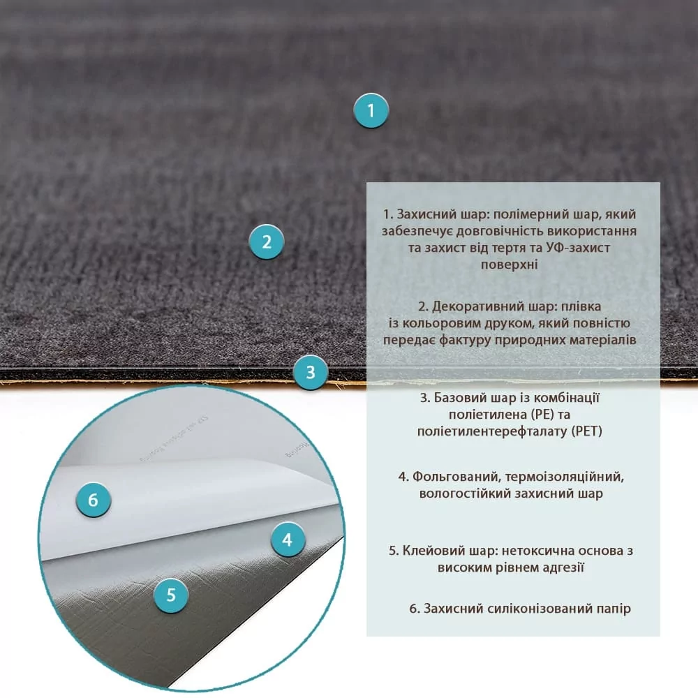Виниловая самоклеящаяся плитка — это современное и практичное решение для быстрого и стильного обновления интерьера. Благодаря инновационной клеевой основе, монтаж этого декоративного материала для внутренней отделки становится невероятно простым и не требует специальных навыков или дорогостоящего инструмента. Широкий ассортимент дизайнов, включающий богатую палитру цветов, узоров и реалистичных текстур, искусно имитирующих натуральные материалы (дерево, камень, мрамор, бетон), позволяет идеально интегрировать плитку в любое интерьерное решение — от классики до лофта. Исключительная прочность, долговечность и абсолютная влагостойкость делают виниловую плитку по-настоящему универсальной. Она подходит для применения в самых разнообразных помещениях и на любых ровных поверхностях: от пола и стен в ванных комнатах и кухнях с повышенной влажностью, до жилых зон и коммерческих объектов с высокой эксплуатационной нагрузкой. Материал: поливинилхлорид (PVC) Размеры: 600x300x1.5мм Вес одной плитки: 115 грамм Площадь покрытия: 0,18 кв.м, количество на 1 кв.м - 6 единиц Поверхность: ровная, матовая Материал 1. Полимерный Слой (Защита и Долговечность): Обеспечивает защиту от механических повреждений и потертостей. Встроенная УФ-защита критически важна для предотвращения выгорания, сохраняя насыщенный цвет и эстетическую привлекательность покрытия на весь срок службы. 2. Декоративный Слой (Визуальная Имитация): Пленка с печатью высокого разрешения, которая благодаря четкому и детализированному изображению в совершенстве имитирует фактуру природных материалов. 3. Основной Слой из ПВХ (Химическая Стойкость): Сформирован из длинных молекулярных цепей винилхлорида. Наличие атомов хлора в структуре полимера наделяет материал высокой устойчивостью к воздействию химических веществ. 4. Фольгированный Слой (Теплоизоляция): Специальный слой для отражения тепловых волн, минимизации потерь тепла и существенного улучшения теплоизоляционных свойств помещения. 5. Клеевой Слой (Надежное Крепление): Нетоксичная основа с превосходным уровнем адгезии для максимально прочного сцепления. 6. Силиконизированная Бумага (Удобство Монтажа): Защищает клеевое основание от пересыхания и загрязнений. Легко и чисто снимается непосредственно перед укладкой. Температурный режим Чтобы избежать деформации и сохранить идеальную форму, при монтаже в зоне интенсивного нагрева (рядом с открытым огнем, плитой) соблюдайте рекомендованное безопасное расстояние: 30–50 см. Это обеспечит долговечность и красоту вашей установки. Минимальный срок службы виниловой самоклеющейся плитки составляет 3 года, гарантируя вам стильное и функциональное покрытие на длительный период. Применение 1. Жилые пространства - Зоны отдыха: Создайте уют в гостиной, спальне и детской. - Функциональные зоны: Обновите кухню, ванную комнату и входную группу. 2. Коммерческие объекты (WOW-эффект гарантирован) - Представительские: Офисы и зоны ресепшен. - Сфера услуг: Салоны красоты, фитнес-центры и магазины. - Общественные места: Мастерские и другие места с высокой проходимостью. Используйте его для: декорирования стен, а также мебели, дверей и любых других ровных поверхностей. Ключевые преимущества материала • Благодаря самоклеящемуся слою, монтаж становится невероятно быстрым и простым. Вам не потре