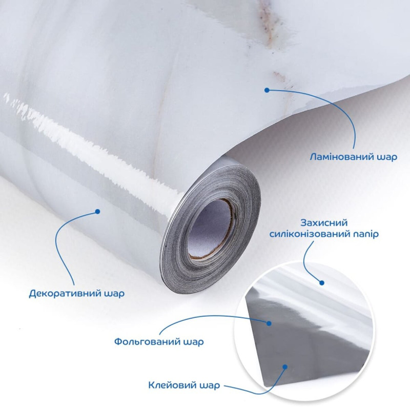 Самоклеющаяся пленка Sticker wall 60cm*3m (D) SW-00002406 Ламинированная самоклеящаяся пленка – это гибкий и прочный материал, отличающийся высокой устойчивостью к разрыву. Одна из сторон пленки покрыта специальным клеевым слоем, что обеспечивает её легкость в использовании. Этот универсальный материал широко применяется для облицовки, защиты, декоративного оформления и восстановления гладких поверхностей. Её преимущества включают простоту монтажа, долговечность и возможность использования в различных условиях. Ламинированная пленка бывает в разных оттенках, текстурах и дизайнах, что позволяет подобрать вариант под любой интерьер. Она также эффективно защищает поверхности от механических повреждений, воздействия влаги и ультрафиолетовых лучей, продлевая срок службы мебели или стен. Размеры: 600х3000 мм. Площадь покрытия: 600х3000 – 1,8 кв. м. Фактура: не имеет рельефа, поверхность глянцевая. Пленка состоит из нескольких слоев, каждый из которых выполняет определенные задачи: 1. Ламинированный слой. Верхний слой пленки служит для защиты от царапин, пятен и влаги. Он придает поверхности глянцевый блеск и упрощает очистку от загрязнений. Этот слой создается с помощью низкотемпературной ламинации, при которой используется пленка с клеевой основой, активирующейся при температуре 30–50 градусов. Материал проходит через нагревательные валы, обеспечивающие прочное сцепление с базовым слоем без деформации. Такой способ идеально подходит для тонких и чувствительных к нагреву материалов толщиной 0,05 мм, гарантируя равномерную защиту и долговечность. 2. Декоративный слой. Под защитным покрытием располагается слой с декоративным рисунком или текстурой, имитирующей дерево, мрамор, плитку или другие поверхности. Он отвечает за эстетическую составляющую и позволяет использовать пленку в различных интерьерных решениях. 3. Фольгированный слой. Этот слой повышает прочность пленки, обеспечивая ее устойчивость к разрывам, влаге и перепадам температур. Благодаря фольге поверхность приобретает дополнительную яркость и стильный светоотражающий эффект. 4. Клеевой слой. Специальная нетоксичная клеевая основа обеспечивает надежное сцепление пленки с поверхностью, создавая прочное и долговечное соединение. 5. Защитная силиконизированная бумага. Этот слой покрывает клеевую основу до момента монтажа, предотвращая её загрязнение, пересыхание или случайное прилипание. Легко удаляется перед установкой, а нанесенная на бумагу разметка облегчает процесс резки материала. Применение: Пленка идеально подходит для внутренних отделочных работ, включая декорирование и облицовку различных поверхностей в жилых помещениях: кухнях, гостиных, детских комнатах, спальнях и прихожих. Также она широко используется в коммерческих пространствах, таких как офисы, зоны рецепции, магазины, салоны красоты и фитнес-центры. Материал прекрасно подходит для обновления внешнего вида мебели, дверей и бытовой техники, придавая им стильный и современный вид. Пленка устойчива к износу и легко очищается, что делает её отличным выбором для помещений с высокой проходимостью или требованиями к чистоте. Используя эту пленку, вы сможете быстро преобразить интерьер без больших затрат и сложных ремонтных работ. Свойства и преимущества ламинированной самоклеящейся пленки: 1. Высокая прочно
