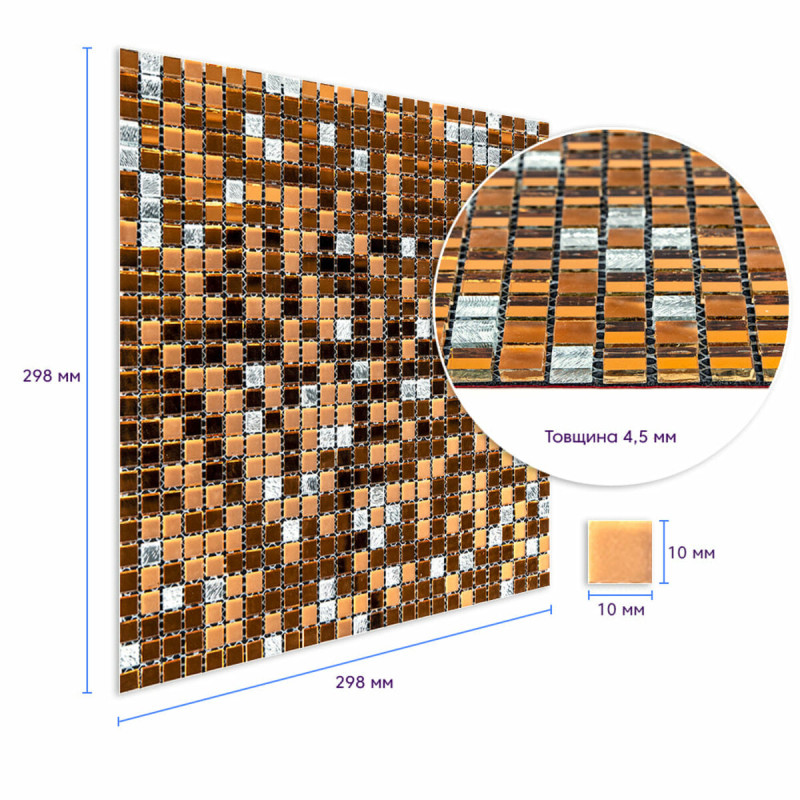 Мозаїка дзеркальна мідна Sticker wall 298х298х4,5мм SW-00002370