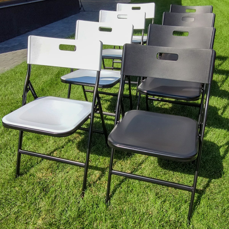Набір розкладних меблів Sticker wall (Стіл та 4 стільці), Чорний (з сумкою) SW-00001541 - це зручний та практичний варіант для пікніків, відпочинку на природі або в саду. Стіл та стільці легко збираються та розбираються, займають мало місця у складеному вигляді та поставляються у зручній сумці для перенесення. Набір виконаний у сучасному дизайні та підходить для будь-якого інтер'єру. Особливості: - Матеріал: стіл та стілець виконані із пластику високої щільності (чистий HDPE) зі сталевою рамою та ніжками. - Розмір у розібраному вигляді Стіл: 86 см х 86 см х 74 см. - Розмір у розібраному вигляді Стілець: 42,5 см х 46 см х 78,5 см. - Розмір у складеному вигляді Стіл: 87 см х 37 см. - Розмір у складеному вигляді Стілець: 49 см х 8,2 см х 108 см. - Розмір упакованого товару: 88x45x26 см. - Максимальна вантажопідйомність Стіл: 25 кг. - Максимальна вантажопідйомність Стілець: 150 кг. - Фактура: гладка. - Вага: 18,6 кг. – Температурний режим: -60 до +100 градусів. У комплект входить: стіл + 4 стільці. Набір можна застосовувати як портативний варіант для пікніків і відпочинку на природі, а також в стаціонарних умовах: у квартирі, на балконі або веранді. Матеріал має такі властивості: 1. Жорстка структура, що не піддається гнучкості. 2. Має тверді кути і кромки, не схильний до ламкості. 3. Здатний витримувати високі температури без деформації. 4. Стійкий до подряпин та механічних пошкоджень. 5. Паро-і водонепроникний. 6. Здатний витримувати низькі температури. 7. Має високу щільність, що досягає 0,96 г/см3. Переваги: - Компактний розмір. - Зручний у переміщенні з одного місця до іншого. - Підходить для використання як у приміщенні, так і на вулиці, чудово переносить будь-які погодні зміни. - Стильний дизайн. - Займає мінімум місця для зберігання. - Легка вага, яка спрощує переміщення. - Міцний матеріал із гарантованим терміном служби від 10 років. - Надійний складний механізм.Характеристики