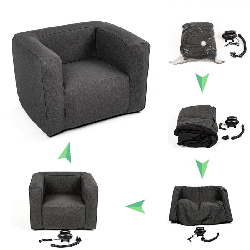 Надувне крісло сіре Sticker wall SW-00002292 Надувні меблі Sticker wall поєднують стильний дизайн та функціональність. Її основа виконана з міцного поліуретану, а верхній шар виготовлений із поліестерової мішковини з приємною текстурою та високою стійкістю до пошкоджень. У порівнянні з традиційними меблями, надувні вироби значно легші та зручніші у транспортуванні: у здутому стані вони займають мінімум простору, що робить їх ідеальним вибором для переїздів чи оновлення інтер'єру. Розміри в надувному та здутому вигляді (упаковка пакет + коробка): короб - 200x430x520 мм. Допустима похибка розмірів меблів через температурні коливання та ступінь надутості може становити до ±5%. Комплектація: крісло – 1 шт; компресійний мішок – 1 шт; насос – 1 шт; гофрований шланг – 1 шт; насадка в асортименті – 5 шт. Матеріал 1. Надувний каркас меблів (TPU) Каркас меблів виконаний з TPU - термопластичного поліуретану, відомого своєю міцністю, еластичністю та стійкістю до механічних пошкоджень. Завдяки унікальній молекулярній структурі матеріал поєднує гнучкість та довговічність. TPU стійкий до впливу жирів, масел, ультрафіолетового випромінювання та несприятливих погодних умов, що робить його чудовим вибором для використання на вулиці. Він має високу зносостійкість і водонепроникність. Робоча температура матеріалу варіюється від -40 до +80 градусів, причому його характеристики залишаються постійними. 2. Текстильний шар із поліестеру Верхній шар меблів виготовлений з поліестеру з лляним плетенням, який приємний на дотик і екологічний. Матеріал простий у догляді і відрізняється високою зносостійкістю - до 40 000 циклів за тестом Мартіндейла, що забезпечує довговічність навіть за інтенсивної експлуатації. Тканина стійка до плям, плісняви та ультрафіолетового випромінювання, що запобігає її вигоранню та зберігає привабливий зовнішній вигляд протягом багатьох років. 3. Нейлонова тканина з гумовими точками Основа меблів, що контактує з поверхнею, виконана з міцної нейлонової тканини з термопластичними гумовими точками (TPR), які забезпечують антиковзкий ефект. Цей матеріал вологостійкий, зносостійкий та зберігає свої характеристики навіть при різких перепадах температури. Нейлон у поєднанні з гумовими точками підвищує надійність і запобігає ковзанню, що робить меблі безпечними та довговічними в будь-яких умовах експлуатації. Застосування Надувні меблі - це зручне та універсальне рішення як для дому, так і для використання на вулиці. Вона ідеально підходить для організації зон відпочинку в квартирах, офісах, кафе, виставкових павільйонах або лаунж-просторах. Завдяки своїй легкості, мобільності та простоті догляду, такі меблі стануть відмінним вибором для подорожей або тимчасового використання, наприклад, при прийомі гостей або під час ремонту. Її також можна використовувати для облаштування комфортних зон на фестивалях, виставках, вечірках та інших заходах, створюючи стильну та функціональну атмосферу у будь-яких умовах. Основні переваги надувних меблів 1. Легкість та компактність. Надувні меблі мають невелику вагу і легко складаються до компактних розмірів після здування. Це робить її зручною для зберігання та транспортування – вона поміститься у багажник автомобіля чи шафу. Особливо актуальна для невеликих просторів. 2. Міцність та довговічність. Виготовлені із зно