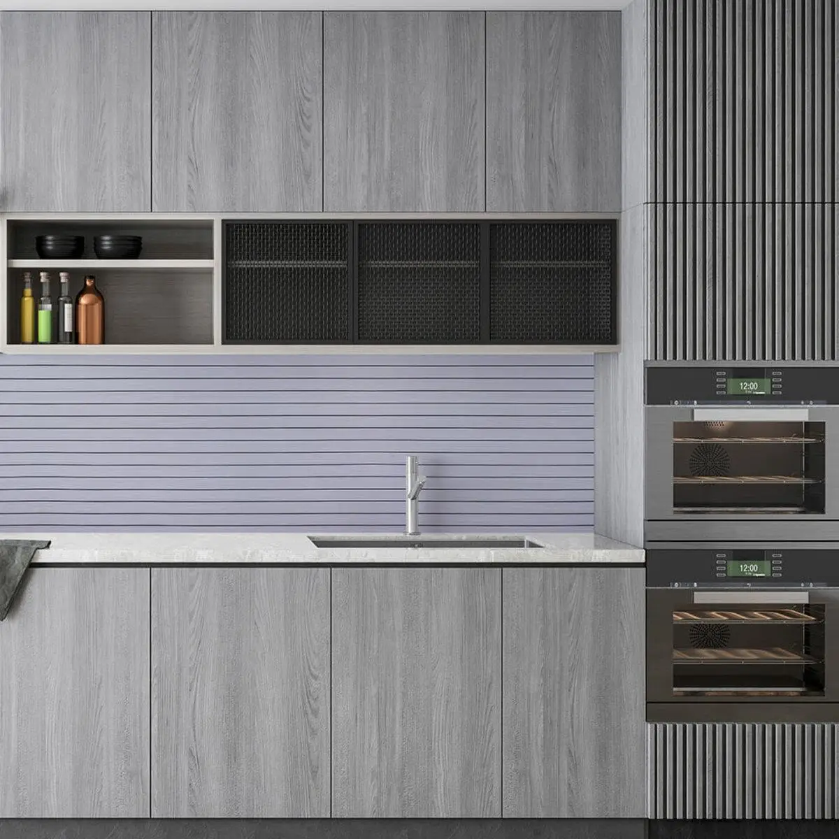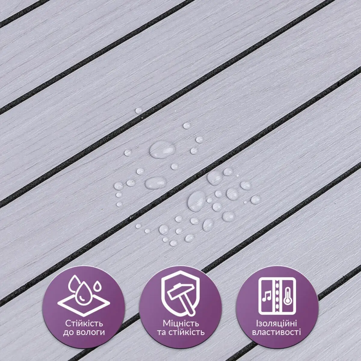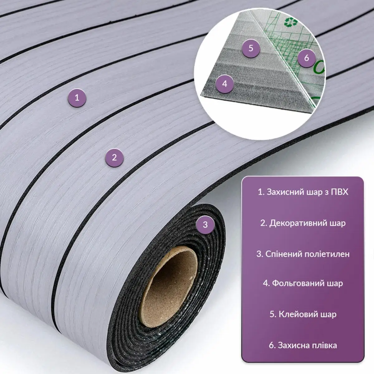 Самоклеючі вінілові 3D рейки в рулоні — сучасний декоративний матеріал для швидкого та стильного оздоблення стін. Рельєфна поверхня створює виразний 3D-ефект, а дизайн із імітацією натуральної деревини гармонійно доповнює сучасні інтер’єри. Завдяки клейовій основі та зручному формату рулону монтаж максимально простий і акуратний — без майстрів, без складних інструментів і без бруду. Компактне пакування дозволяє легко транспортувати матеріал і зменшує витрати на доставку. Основні характеристики • Розміри: 600 x 2900 x 3 мм • Площа покриття одного рулону: 1,74 кв.м • Фактура: рельєфна, імітація дерев'яної рейки • Поверхня: матова Матеріал та структура Вінілова 3D рейка складається з кількох функціональних шарів, які забезпечують міцність, довговічність та декоративний вигляд. 1. Захисний шар ПВХ • захищає від потертостей та дрібних механічних пошкоджень • забезпечує довготривале використання • має УФ-захист від вигорання кольору • стійкий до вологи та побутових хімічних засобів 2. Декоративний шар Плівка з кольоровим друком високої роздільної здатності, яка точно передає текстуру натуральних матеріалів та створює ефект дерев’яних рейок. 3. Шар зі спіненого поліетилену (PE) • легкий та гнучкий матеріал • має закритопористу структуру • забезпечує тепло- та звукоізоляцію • стійкий до вологи 4. Фольгований шар • відбиває теплові хвилі • допомагає зменшити тепловтрати • підсилює конструкцію матеріалу • підвищує міцність і стійкість до розривів 5. Клейовий шар Нетоксична клейова основа з високим рівнем адгезії, що забезпечує надійне приклеювання до поверхні. 6. Захисна плівка • захищає клей від пересихання та забруднення • легко знімається під час монтажу • має розмітку для точного підрізання матеріалу Температурний режим Матеріал не рекомендується встановлювати впритул до джерел відкритого вогню або сильного нагріву. У кухонній зоні рейки слід монтувати на відстані 30–50 см від плити або варильної поверхні. Застосування Вінілові 3D рейки призначені для внутрішніх оздоблювальних робіт у житлових та комерційних приміщеннях. Підходять для: • кухонь • ванних кімнат • віталень • спалень • дитячих кімнат • передпокоїв Також використовуються у: • офісах • магазинах • салонах краси • фітнес-центрах • готелях • кафе та ресторанах • студіях і майстернях Матеріал можна застосовувати для декорування: • стін • меблів • дверей • підвіконь • торгового обладнання • інших рівних поверхонь Переваги вінілових 3D рейок Швидкий монтаж • самоклеюча основа — не потрібен додатковий клей • монтаж без спеціальних інструментів • легко ріжеться ножицями або монтажним ножем • мінімальна кількість обрізків Стійкість до вологи • не набухає від води • підходить для кухонь і ванних кімнат • стійкий до пари та появи цвілі Довговічність • стійкість до подряпин та пошкоджень • зберігає колір і форму протягом тривалого часу Зручне транспортування • гнучкий матеріал • скручується в рулон • легко перевозиться без ризику пошкодження Легкий догляд • не вбирає бруд • легко очищується вологою серветкою • не потребує спеціальних миючих засобів Ізоляційні властивості • покращує теплоізоляцію • зменшує рівень шуму в приміщенні Виразний декоративний ефект • товщина 3 мм створює чіткий 3D-рельєф • додає стінам глибини та стильного вигляд