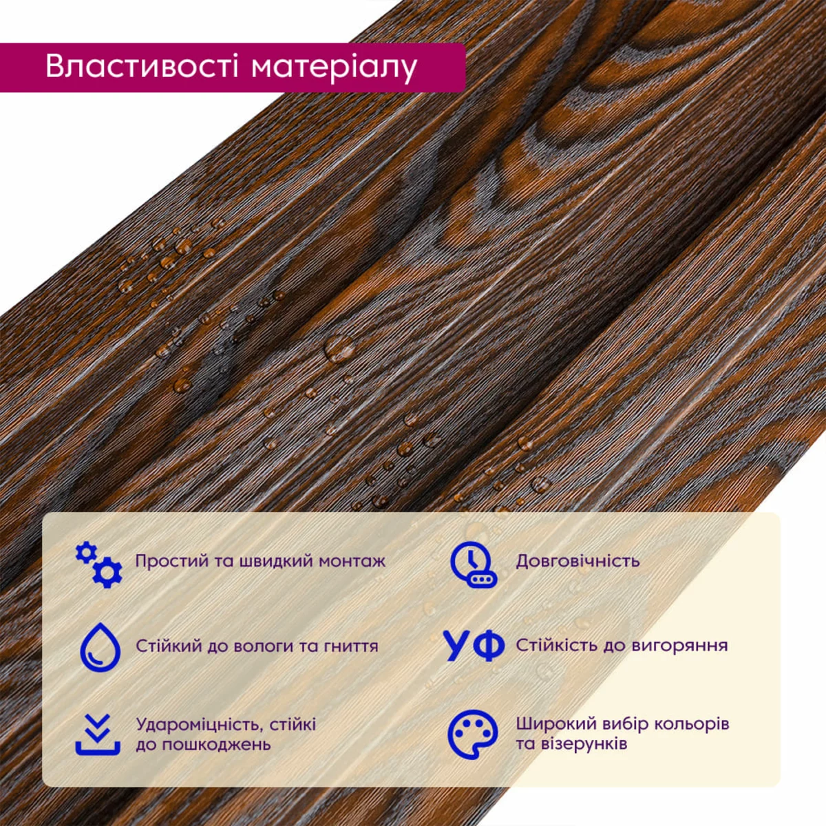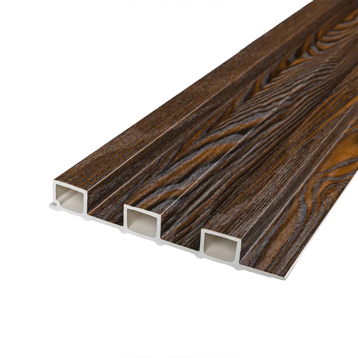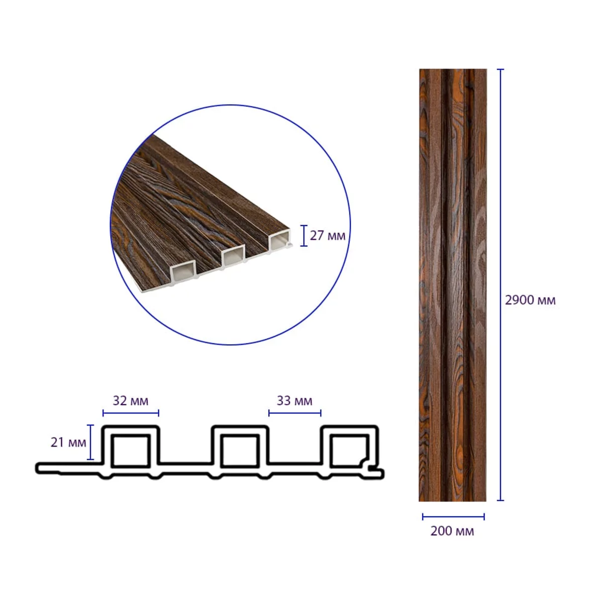 WPC (Wood-Plastic Composite) – це композитний матеріал, що поєднує в собі красу та практичність. Стінові рейки WPC – це сучасне рішення для внутрішнього оздоблення, що імітує натуральну деревину. WPC-рейки виготовляються зі суміші деревних волокон і полімерів, завдяки чому вони зберігають візуальну теплоту натурального дерева, але водночас значно перевершують його за експлуатаційними характеристиками. Матеріал не схильний до розтріскування, деформації та впливу вологи, що робить його ідеальним для використання у приміщеннях із перепадами температури та вологості. Поверхня рейок стійка до механічних пошкоджень, не потребує регулярного догляду та зберігає первинний зовнішній вигляд протягом багатьох років. Стенові рейки WPC вирізняються високою універсальністю та підходять для оформлення житлових і комерційних інтер’єрів: віталень, спалень, коридорів, офісів, готелів і громадських просторів. Вони дають змогу створювати виразні акцентні стіни, зонувати простір і надавати інтер’єру глибини та ритму. Широкий вибір текстур і відтінків під натуральне дерево дозволяє гармонійно інтегрувати рейки в сучасні, скандинавські, мінімалістичні та класичні стилі оформлення. Монтаж стенових рейок WPC простий і зручний, не потребує складних інструментів або спеціальних навичок. Матеріал легко піддається різанню та встановленню, що прискорює процес оздоблення і зменшує витрати на монтажні роботи. Крім того, WPC є екологічно безпечним і довговічним рішенням, поєднуючи естетичну привабливість, функціональність і практичність, що робить його оптимальним вибором для сучасних інтер’єрів. Переваги: 1. Стійкість до вологи: WPC не розбухає та не деформується, що робить його ідеальним вибором для кухні, ванної кімнати та інших приміщень із підвищеною вологістю. 2. Стійкість до гниття та комах: WPC не схильний до гниття і не приваблює комах, що забезпечує його довговічність. 3. Стійкість до УФ-випромінювання: WPC не вицвітає на сонці, зберігаючи свій первісний вигляд протягом довгих років. 4. Привабливий вигляд: Декоративний шар WPC реалістично імітує фактуру натурального дерева, створюючи стильний та затишний інтер'єр. 5. Простота обслуговування: WPC не вимагає фарбування, обробки антисептиками та іншими захисними засобами. 6. Екологічність: WPC не містить шкідливих речовин та є безпечним для здоров'я людини. Застосування: - Декорування стін у всіх видах житлових приміщень (кухня, вітальня, дитяча чи спальня, вхідна група). - Декорування комерційних приміщень (офісні приміщення, зони рецепцій, магазини, салони краси чи фітнес-центри). - Декорування меблів, дверей та інших рівних поверхонь. Температурний режим: від -50 до +80 градусів. Розрахунок потрібної кількості матеріалу: 1. Виміряйте довжину і висоту поверхні, що обклеюється. 2. Помножте довжину на висоту кожної поверхні в метрах і складіть отримані результати, щоб отримати площу. Наприклад, після вимірів ви отримали:Довжина стіни 3,2 м, висота стіни 2,7м (3,2 * 2,7 = 8,64 кв.м) 3. Площу, що вийшла, необхідно розділити на площу однієї рейки (200*2900= 0,58 кв.м) і округлити у більшу сторону: 8,64 / 0,58 = 14,89 (округляємо до 15). У процесі монтажу можуть виникнути відходи, пов’язані з різанням рейок, тому рекомендується додати до розрахунку запасні 1-2 шт. Інструкція з монтажу Перед початком монтажу підготуйте поверхню, на яку встановлюватимуться рей