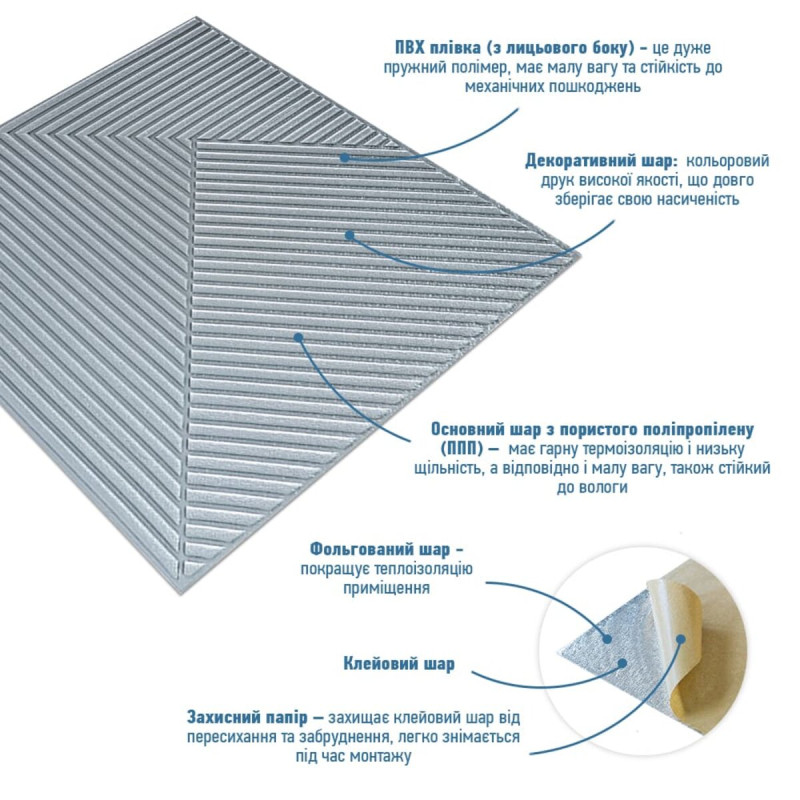 Хочете швидко оновити інтер’єр без пилу, шуму та зайвих витрат на ремонт? З декоративними 3D панелями Sticker Wall ваш дім зміниться буквально за кілька годин! Це сучасне рішення для тих, хто цінує комфорт, естетику та практичність. Чому обирають 3D панелі Sticker Wall 1. Легкий монтаж — без інструментів і майстрів: просто зніміть захисну плівку та приклейте панель до стіни! Установити панелі під силу кожному — без цвяхів, клею чи бруду. 2. Ідеальні навіть для нерівних стін: еластичний матеріал м’яко повторює рельєф поверхні, приховуючи дрібні дефекти та тріщини. 3. Тепло та тиша у вашому домі: спінений поліпропілен чудово утримує тепло та поглинає шум. Комфортна температура і затишна атмосфера — цілий рік. 4. Безпечність та екологічність: панелі не містять токсичних речовин, не горять, не вбирають запахи та не викликають алергії. Абсолютно безпечні для дітей і домашніх тварин. 5. Простота догляду: пил, бруд або плями легко видаляються вологою губкою. Поверхня стійка до вологи, тому панелі можна встановлювати навіть на кухні або у ванній кімнаті. 6. Довговічність і надійність: Sticker Wall зберігають свій вигляд понад 20 років — не вицвітають, не деформуються та не тріскаються. Де можна використовувати 3D панелі • Дім: вітальня, спальня, кухня, дитяча, передпокій, балкон. • Бізнес: офіси, салони краси, кафе, торгові зали, фотостудії. • Декор: акцентні стіни, узголів’я ліжок, ніші, зони відпочинку. Порада: комбінуйте панелі за кольорами та фактурами, створюючи ефектні дизайнерські рішення — від мінімалізму до лофту. Проста інструкція з монтажу 1. Виміряйте стіну та розрахуйте кількість панелей. 2. Очистіть поверхню від пилу та бруду. 3. Зніміть захисну плівку. 4. Обережно приклейте панель і розгладьте від центру до країв. 5. За потреби підріжте краї ножем або ножицями. Чому це вигідно • Не потрібно витрачатися на ремонтну бригаду; • Можна легко змінювати дизайн — панелі знімаються та переклеюються; • Ідеальне рішення для орендованих квартир або швидкого оновлення інтер’єру перед продажем житла. Sticker Wall — це поєднання краси, практичності та простоти. Створіть стильний інтер’єр власноруч і насолоджуйтеся затишком щодня!Характеристики