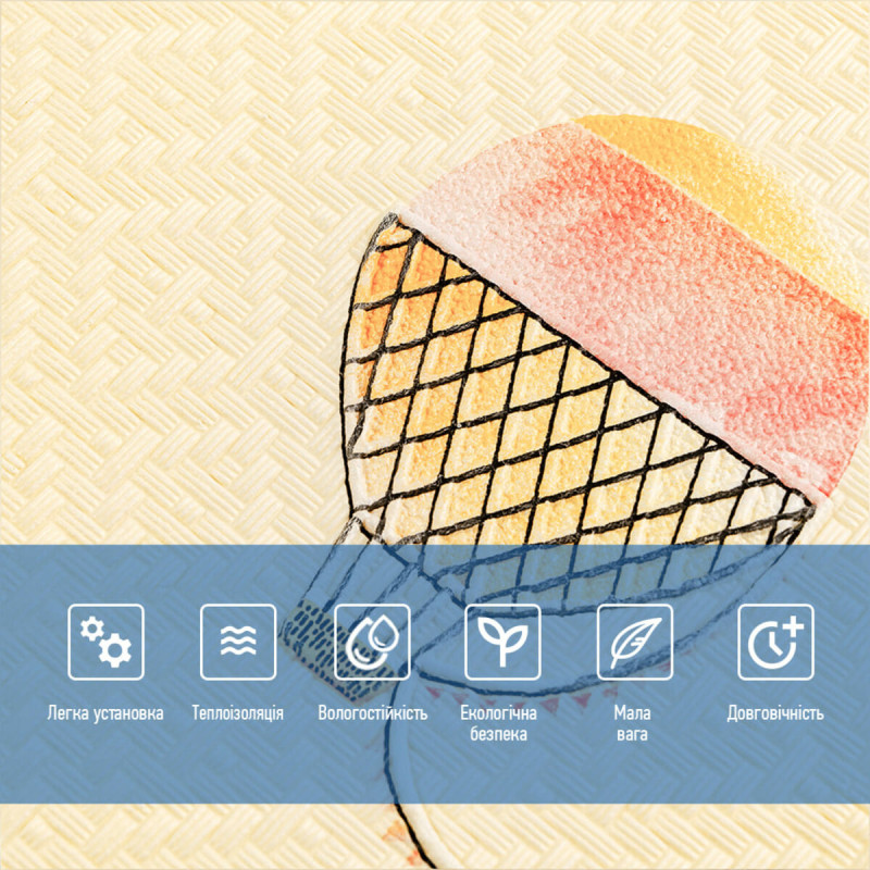 Самоклеюча 3D панель Sticker wall 700*700*4mm повітряні кулі рогожка (D) SW-00001973 Прикрасьте стіни свого будинку самоклеючими 3D панелями - простим і доступним рішенням для створення стильного та сучасного інтер'єру. Легкі та міцні панелі з пористого поліпропілену (ППП) з рельєфним малюнком перетворять будь-яку кімнату. Самоклеюча основа забезпечує швидкий та легкий монтаж без використання додаткових матеріалів. Багатошарова структура панелей гарантує їх довговічність та практичність: - ПВХ плівка: стійка до хімічних речовин, еластична та легка. - Декоративний шар: високоякісний друк із збереженням насиченості кольору. - Основний шар із ППП: забезпечує теплоізоляцію, низьку вагу, вологостійкість та хімічну інертність. - Клейовий шар: нетоксичний, із високою адгезією. - Захисний папір: легко знімається перед монтажем. Переваги 3D панелей: 1. Простота монтажу: без клею, цвяхів та інструментів. 2. Стильний дизайн: реалістична імітація цегляної кладки в багатому кольорі. 3. Практичність: вологостійкість, легке чищення, стійкість до вицвітання. 4. Доступність: вигідне співвідношення ціни та якості. Розрахунок необхідної кількості панелей: 1. Виміряйте довжину і ширину поверхні, що обклеюється. 2. Помножте довжину на ширину кожної поверхні в метрах і складіть отримані результати, щоб отримати площу. Наприклад, після вимірів ви отримали: - Довжина стіни 3,7 м. - Ширина стіни 2,7 м. 3,7 * 2,7 = 9,99 кв.м 3. Площа, що вийшла, необхідно розділити на площу однієї панелі (700*700= 0,49 кв.м) і округлити у більшу сторону: 9,99/0,49=20,38 округляємо до 21. У процесі монтажу можуть виникнути відходи, пов'язані з різанням панелей, тому рекомендується додати до розрахунку запасні 1-2 шт. Монтаж панелей: покрокова інструкція Підготовка 1. Очистіть та вирівняйте поверхню: Переконайтеся, що поверхня, на яку ви будете кріпити панелі, чиста, суха та рівна. Видаліть пил, бруд, жир, а за потреби вирівняйте поверхню. Для забезпечення оптимального зчеплення панелі та поверхня повинні бути кімнатної температури. 2. Зніміть захисну плівку: Зніміть захисний папір зі зворотного боку панелі, що самоклеїться, щоб оголити клейову поверхню. Монтаж 3. Почніть з кута: Почніть установку з одного кута та обережно притисніть панель до поверхні. Слідкуйте за тим, щоб панель була встановлена рівно і без бульбашок повітря або зморшок. 4. Припасування панелей: Використовуйте ніж або ножиці, щоб підрізати панелі за розміром, особливо в кутах і по краях поверхні. 5. Притисніть панелі: Щільно притисніть до поверхні, щоб забезпечити надійне зчеплення. Поради - Для досягнення найкращих результатів використовуйте рівень, щоб переконатися, що панелі встановлені рівно. - Якщо ви не впевнені у своїх силах, зверніться за допомогою до професіонала.Характеристики
