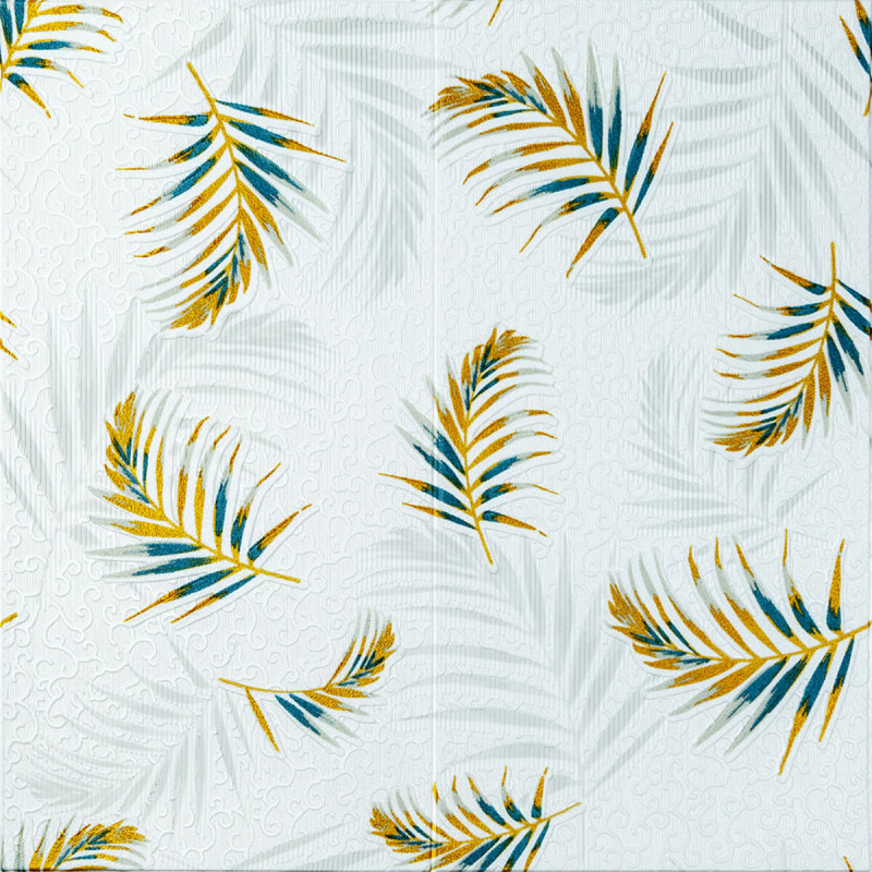 Самоклеюча 3D панель Sticker wall 700х700х4мм папороть на білому тлі (D) SW-00001981