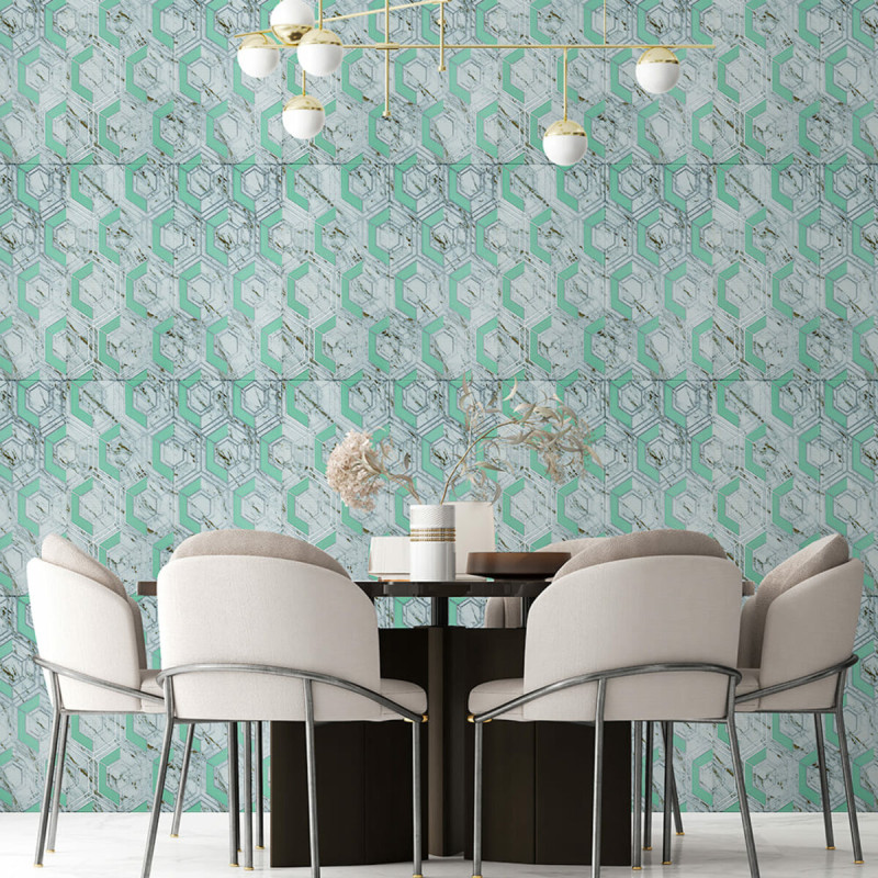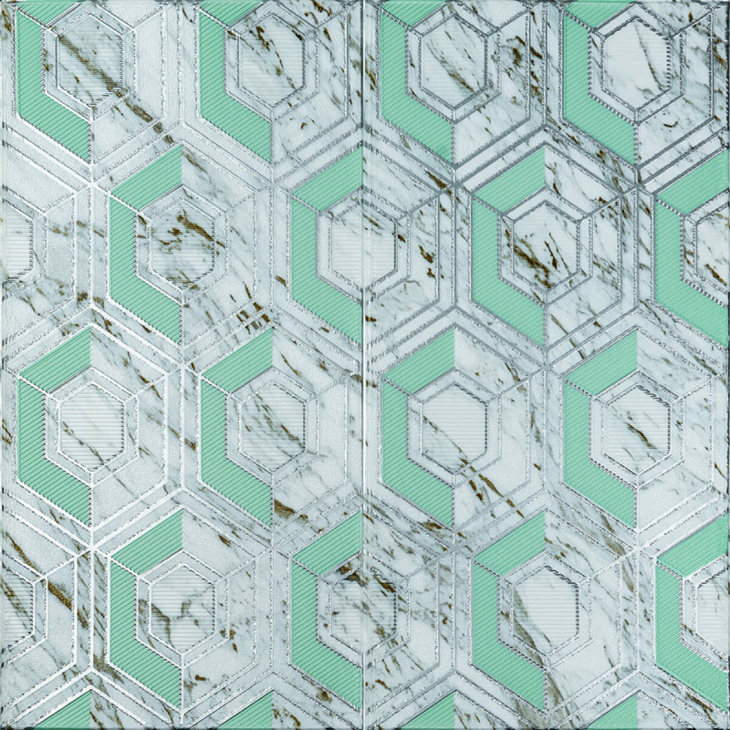 Самоклеюча 3D панель Sticker wall 700х700х4мм сіро-зелені стільники мармур (D) SW-00002006