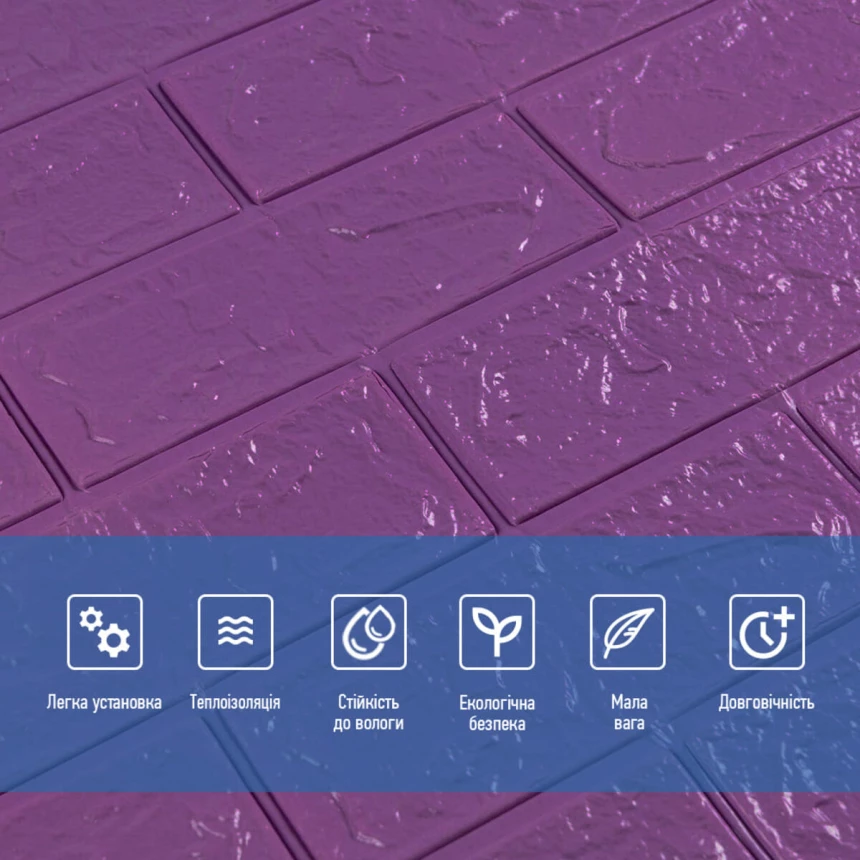 Самоклеюча 3D панель Sticker wall 700х770х3мм (цегла) Фіолетовий SW-00003248
