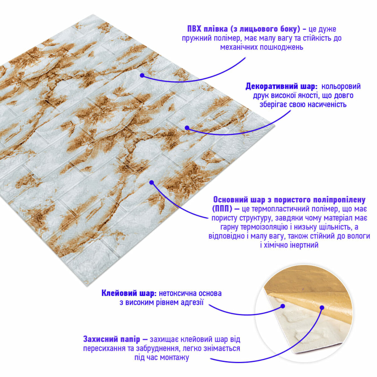 Самоклеюча 3D панель Sticker wall 700х770х4мм Онікс (цегла) (D) SW-00001963