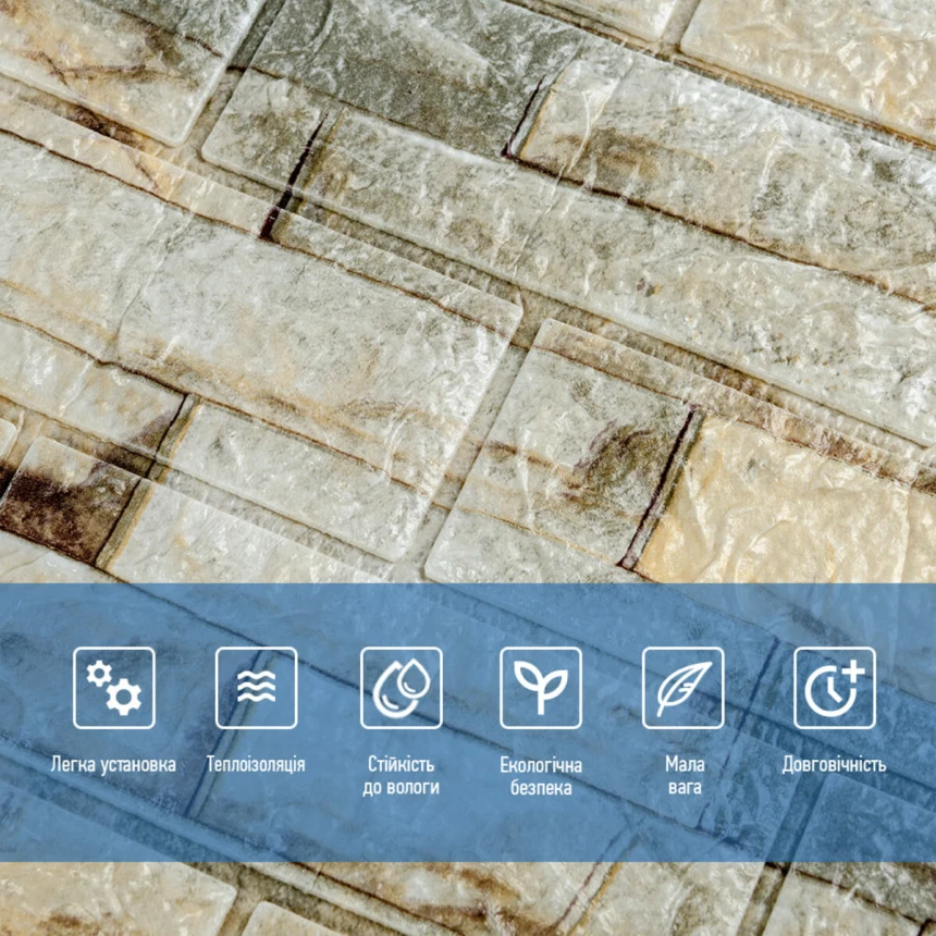 Хочете швидко оновити інтер’єр без пилу, шуму та зайвих витрат на ремонт? З декоративними 3D панелями Sticker Wall ваш дім зміниться буквально за кілька годин! Це сучасне рішення для тих, хто цінує комфорт, естетику та практичність. Чому обирають 3D панелі Sticker Wall 1. Легкий монтаж — без інструментів і майстрів: просто зніміть захисну плівку та приклейте панель до стіни! Установити панелі під силу кожному — без цвяхів, клею чи бруду. 2. Ідеальні навіть для нерівних стін: еластичний матеріал м’яко повторює рельєф поверхні, приховуючи дрібні дефекти та тріщини. 3. Тепло та тиша у вашому домі: спінений поліпропілен чудово утримує тепло та поглинає шум. Комфортна температура і затишна атмосфера — цілий рік. 4. Безпечність та екологічність: панелі не містять токсичних речовин, не горять, не вбирають запахи та не викликають алергії. Абсолютно безпечні для дітей і домашніх тварин. 5. Простота догляду: пил, бруд або плями легко видаляються вологою губкою. Поверхня стійка до вологи, тому панелі можна встановлювати навіть на кухні або у ванній кімнаті. 6. Довговічність і надійність: Sticker Wall зберігають свій вигляд понад 20 років — не вицвітають, не деформуються та не тріскаються. Де можна використовувати 3D панелі • Дім: вітальня, спальня, кухня, дитяча, передпокій, балкон. • Бізнес: офіси, салони краси, кафе, торгові зали, фотостудії. • Декор: акцентні стіни, узголів’я ліжок, ніші, зони відпочинку. Порада: комбінуйте панелі за кольорами та фактурами, створюючи ефектні дизайнерські рішення — від мінімалізму до лофту. Проста інструкція з монтажу 1. Виміряйте стіну та розрахуйте кількість панелей. 2. Очистіть поверхню від пилу та бруду. 3. Зніміть захисну плівку. 4. Обережно приклейте панель і розгладьте від центру до країв. 5. За потреби підріжте краї ножем або ножицями. Чому це вигідно • Не потрібно витрачатися на ремонтну бригаду; • Можна легко змінювати дизайн — панелі знімаються та переклеюються; • Ідеальне рішення для орендованих квартир або швидкого оновлення інтер’єру перед продажем житла. Sticker Wall — це поєднання краси, практичності та простоти. Створіть стильний інтер’єр власноруч і насолоджуйтеся затишком щодня!Характеристики