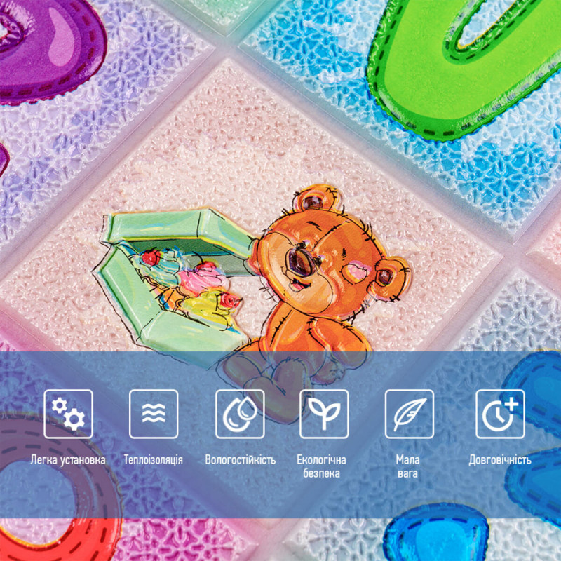 Самоклеюча 3D панель Sticker wall Набір Алфавіт (2шт) 700*1400*4mm (D) SW-00002352 Прикрасьте стіни свого будинку самоклеючими 3D панелями - простим і доступним рішенням для створення стильного та сучасного інтер'єру. Легкі та міцні панелі з пористого поліпропілену (ППП) з рельєфним малюнком перетворять будь-яку кімнату. Самоклеюча основа забезпечує швидкий та легкий монтаж без використання додаткових матеріалів. Багатошарова структура панелей гарантує їх довговічність та практичність: - ПВХ плівка: стійка до хімічних речовин, еластична та легка. - Декоративний шар: високоякісний друк із збереженням насиченості кольору. - Основний шар із ППП: забезпечує теплоізоляцію, низьку вагу, вологостійкість та хімічну інертність. - Клейовий шар: нетоксичний, із високою адгезією. - Захисний папір: легко знімається перед монтажем. Переваги 3D панелей: 1. Простота монтажу: без клею, цвяхів та інструментів. 2. Стильний дизайн: реалістична імітація цегляної кладки в багатому кольорі. 3. Практичність: вологостійкість, легке чищення, стійкість до вицвітання. 4. Доступність: вигідне співвідношення ціни та якості. Розрахунок необхідної кількості панелей: 1. Виміряйте довжину і ширину поверхні, що обклеюється. 2. Помножте довжину на ширину кожної поверхні в метрах і складіть отримані результати, щоб отримати площу. Наприклад, після вимірів ви отримали: - Довжина стіни 3,7 м. - Ширина стіни 2,7 м. 3,7 * 2,7 = 9,99 кв.м 3. Площа, що вийшла, необхідно розділити на площу однієї панелі (700*700= 0,49 кв.м) і округлити у більшу сторону: 9,99/0,49=20,38 округляємо до 21. У процесі монтажу можуть виникнути відходи, пов'язані з різанням панелей, тому рекомендується додати до розрахунку запасні 1-2 шт. Монтаж панелей: покрокова інструкція Підготовка 1. Очистіть та вирівняйте поверхню: Переконайтеся, що поверхня, на яку ви будете кріпити панелі, чиста, суха та рівна. Видаліть пил, бруд, жир, а за потреби вирівняйте поверхню. Для забезпечення оптимального зчеплення панелі та поверхня повинні бути кімнатної температури. 2. Зніміть захисну плівку: Зніміть захисний папір зі зворотного боку панелі, що самоклеїться, щоб оголити клейову поверхню. Монтаж 3. Почніть з кута: Почніть установку з одного кута та обережно притисніть панель до поверхні. Слідкуйте за тим, щоб панель була встановлена рівно і без бульбашок повітря або зморшок. 4. Припасування панелей: Використовуйте ніж або ножиці, щоб підрізати панелі за розміром, особливо в кутах і по краях поверхні. 5. Притисніть панелі: Щільно притисніть до поверхні, щоб забезпечити надійне зчеплення. Поради - Для досягнення найкращих результатів використовуйте рівень, щоб переконатися, що панелі встановлені рівно. - Якщо ви не впевнені у своїх силах, зверніться за допомогою до професіонала.Характеристики