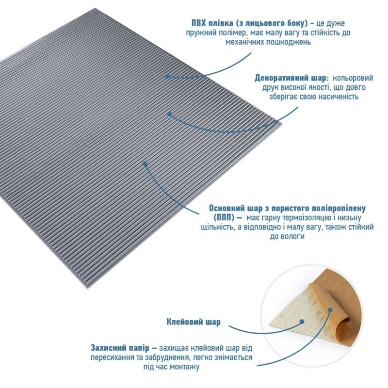Самоклеюча 3D панель Sticker wall Silver 700*700*4мм (D) SW-00001952 Прикрасьте стіни свого будинку самоклеючими 3D панелями - простим і доступним рішенням для створення стильного та сучасного інтер'єру. Легкі та міцні панелі з пористого поліпропілену (ППП) з рельєфним малюнком перетворять будь-яку кімнату. Самоклеюча основа забезпечує швидкий та легкий монтаж без використання додаткових матеріалів. Багатошарова структура панелей гарантує їх довговічність та практичність: - ПВХ плівка: стійка до хімічних речовин, еластична та легка. - Декоративний шар: високоякісний друк із збереженням насиченості кольору. - Основний шар із ППП: забезпечує теплоізоляцію, низьку вагу, вологостійкість та хімічну інертність. - Клейовий шар: нетоксичний, із високою адгезією. - Захисний папір: легко знімається перед монтажем. Переваги 3D панелей: 1. Простота монтажу: без клею, цвяхів та інструментів. 2. Стильний дизайн: реалістична імітація цегляної кладки в багатому кольорі. 3. Практичність: вологостійкість, легке чищення, стійкість до вицвітання. 4. Доступність: вигідне співвідношення ціни та якості. Розрахунок необхідної кількості панелей: 1. Виміряйте довжину і ширину поверхні, що обклеюється. 2. Помножте довжину на ширину кожної поверхні в метрах і складіть отримані результати, щоб отримати площу. Наприклад, після вимірів ви отримали: - Довжина стіни 3,7 м. - Ширина стіни 2,7 м. 3,7 * 2,7 = 9,99 кв.м 3. Площа, що вийшла, необхідно розділити на площу однієї панелі (700*700= 0,49 кв.м) і округлити у більшу сторону: 9,99/0,49=20,38 округляємо до 21. У процесі монтажу можуть виникнути відходи, пов'язані з різанням панелей, тому рекомендується додати до розрахунку запасні 1-2 шт. Монтаж панелей: покрокова інструкція Підготовка 1. Очистіть та вирівняйте поверхню: Переконайтеся, що поверхня, на яку ви будете кріпити панелі, чиста, суха та рівна. Видаліть пил, бруд, жир, а за потреби вирівняйте поверхню. Для забезпечення оптимального зчеплення панелі та поверхня повинні бути кімнатної температури. 2. Зніміть захисну плівку: Зніміть захисний папір зі зворотного боку панелі, що самоклеїться, щоб оголити клейову поверхню. Монтаж 3. Почніть з кута: Почніть установку з одного кута та обережно притисніть панель до поверхні. Слідкуйте за тим, щоб панель була встановлена рівно і без бульбашок повітря або зморшок. 4. Припасування панелей: Використовуйте ніж або ножиці, щоб підрізати панелі за розміром, особливо в кутах і по краях поверхні. 5. Притисніть панелі: Щільно притисніть до поверхні, щоб забезпечити надійне зчеплення. Поради - Для досягнення найкращих результатів використовуйте рівень, щоб переконатися, що панелі встановлені рівно. - Якщо ви не впевнені у своїх силах, зверніться за допомогою до професіонала.Характеристики