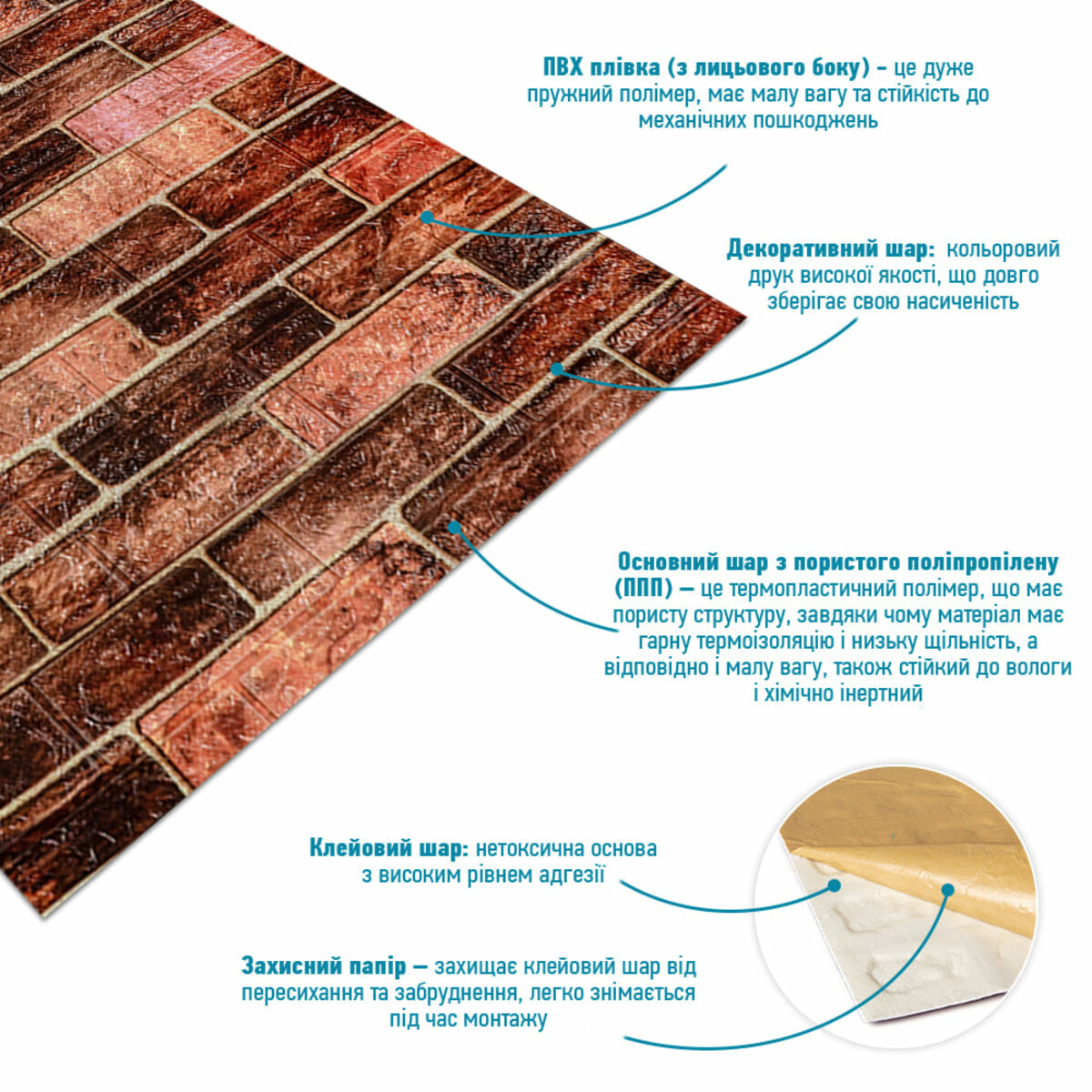 Самоклеюча 3D панель Sticker wall у рулоні 700мм*19,6м*2мм R179-2-20 BROWN (D) SW-00002280 Один рулон має довжину 19,6 метрів. Виготовлений із спіненого поліпропілену – легкого та довговічного матеріалу. Термін експлуатації перевищує 20 років. Ці 3D панелі чудово підходять для стильного облицювання стін, забезпечуючи не лише естетичний вигляд, а й додаткову звукоізоляцію. Їх легко монтувати, а різноманітність текстур дозволяє втілити будь-які дизайнерські ідеї в інтер'єрі. Переваги 3D панелей: - легкий монтаж; - підходять для використання на нерівних поверхнях; - якісний утеплювач; - має властивості шумоізоляції та вібропоглинання; - можна мити; - не вбирають вологу та бруд; - гіпоалергенні; - незаймистий матеріал; - м'які та безпечні для дітей; - не виділяють шкідливих випарів. Самоклеючі панелі з універсальним дизайном підходять для поклейки в приватному будинку та громадських місцях: квартира/будинок (кухня, санвузол, житлові кімнати, балкон, гардероб, передпокій), магазини, паби, кафе, шоу-руми, офіси, гаражі, дачі, ігрові зали. Монтаж: 1. Виміряти поверхню, що обклеюється; 2. Очистити стіну від пилу; 3. Зняти з панелі захисну плівку; 4. Приклеїти панель до стіни та щільно притиснути.Характеристики