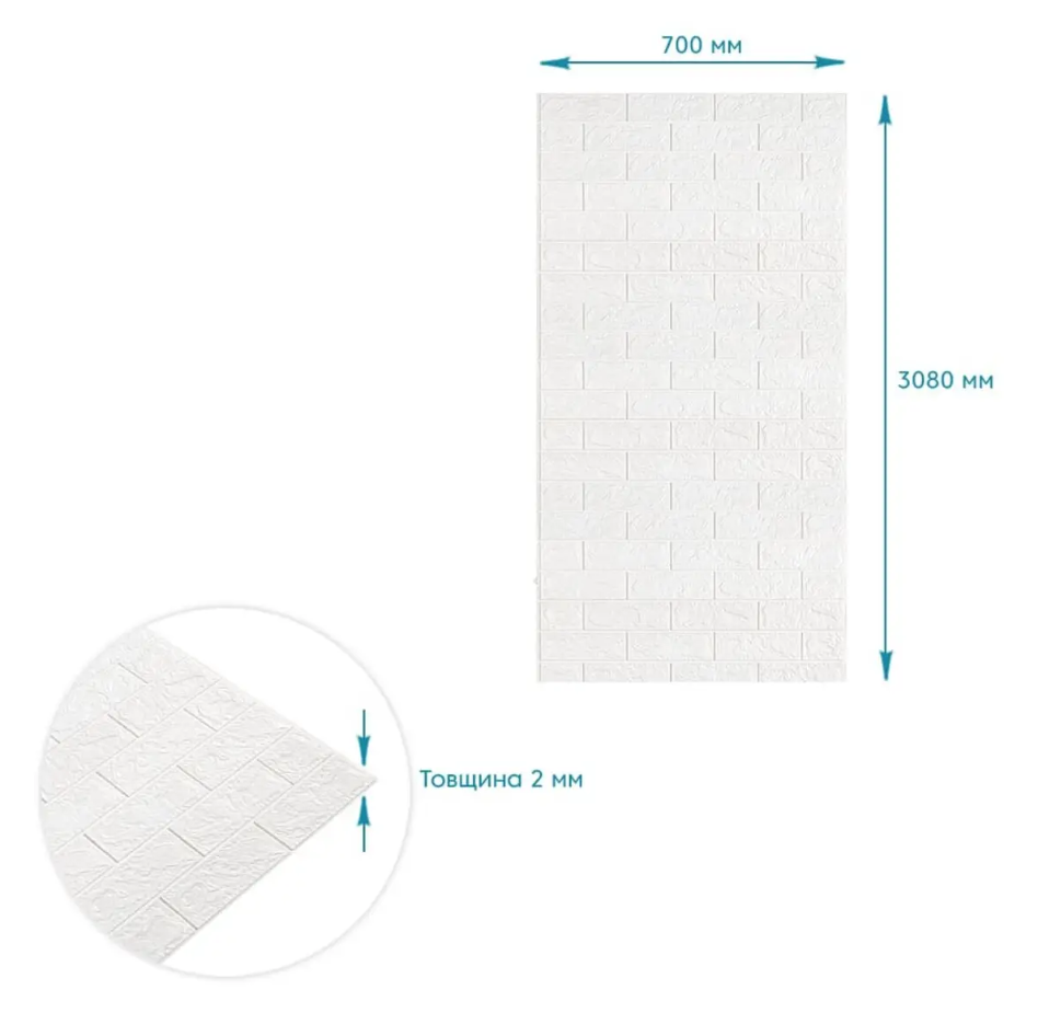 Самоклеюча 3D панель Sticker wall у рулоні 700мм*3,08м*2мм біла цегла R001-2 (D) SW-00002534