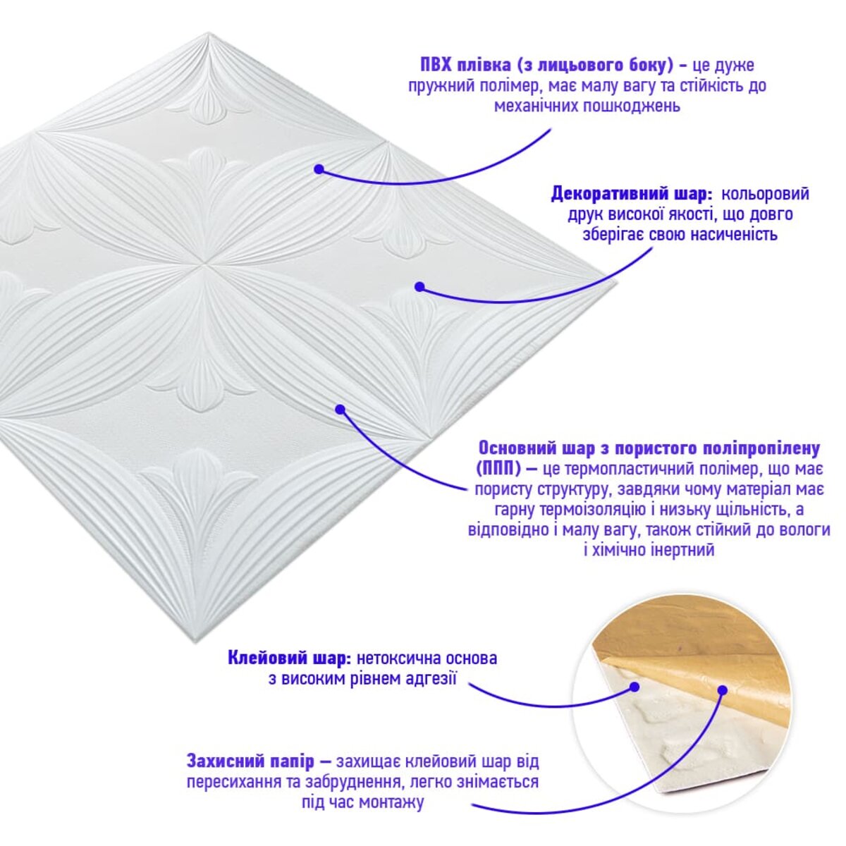 Самоклеюча 3D панель Sticker wall White 700*700*6мм (D) SW-00001959