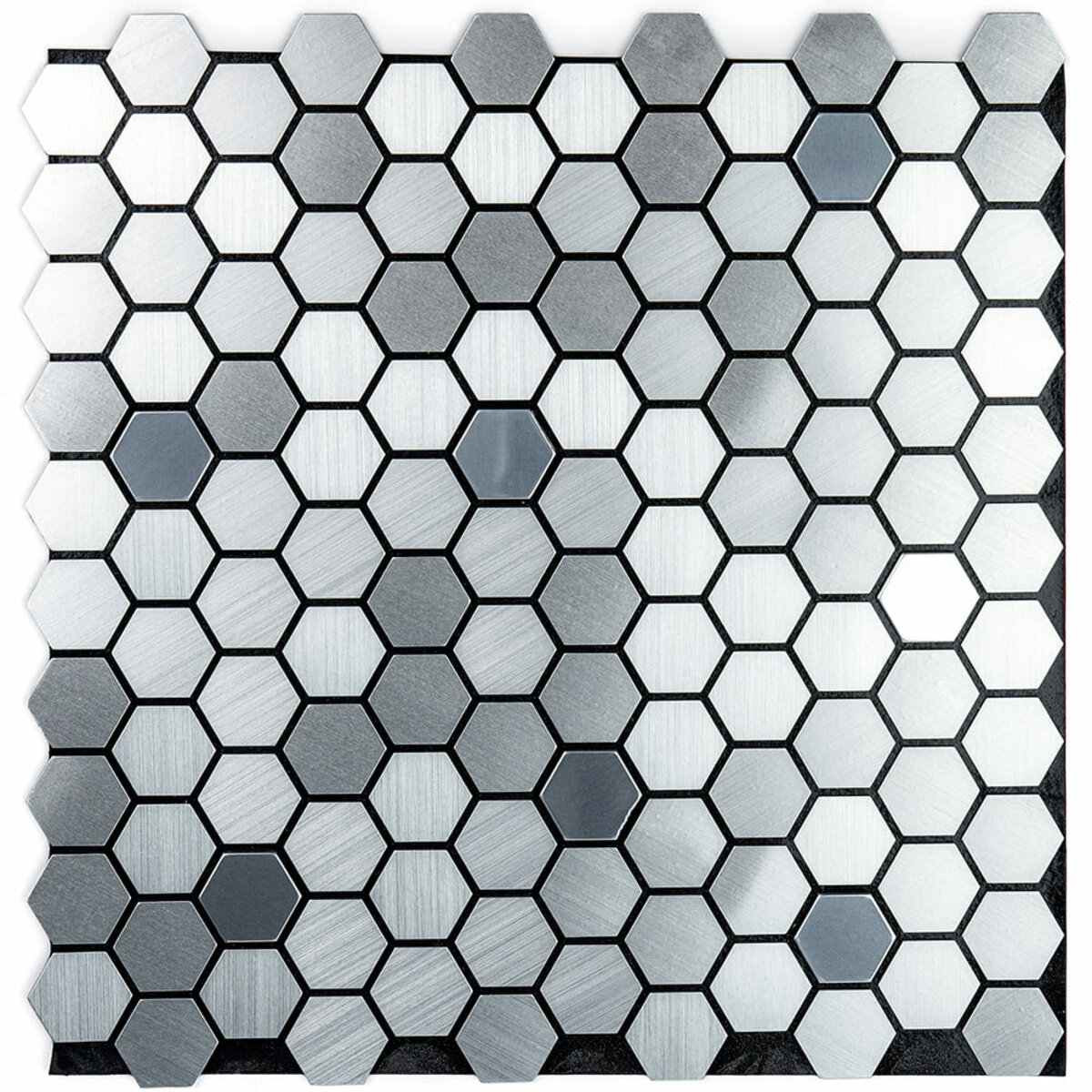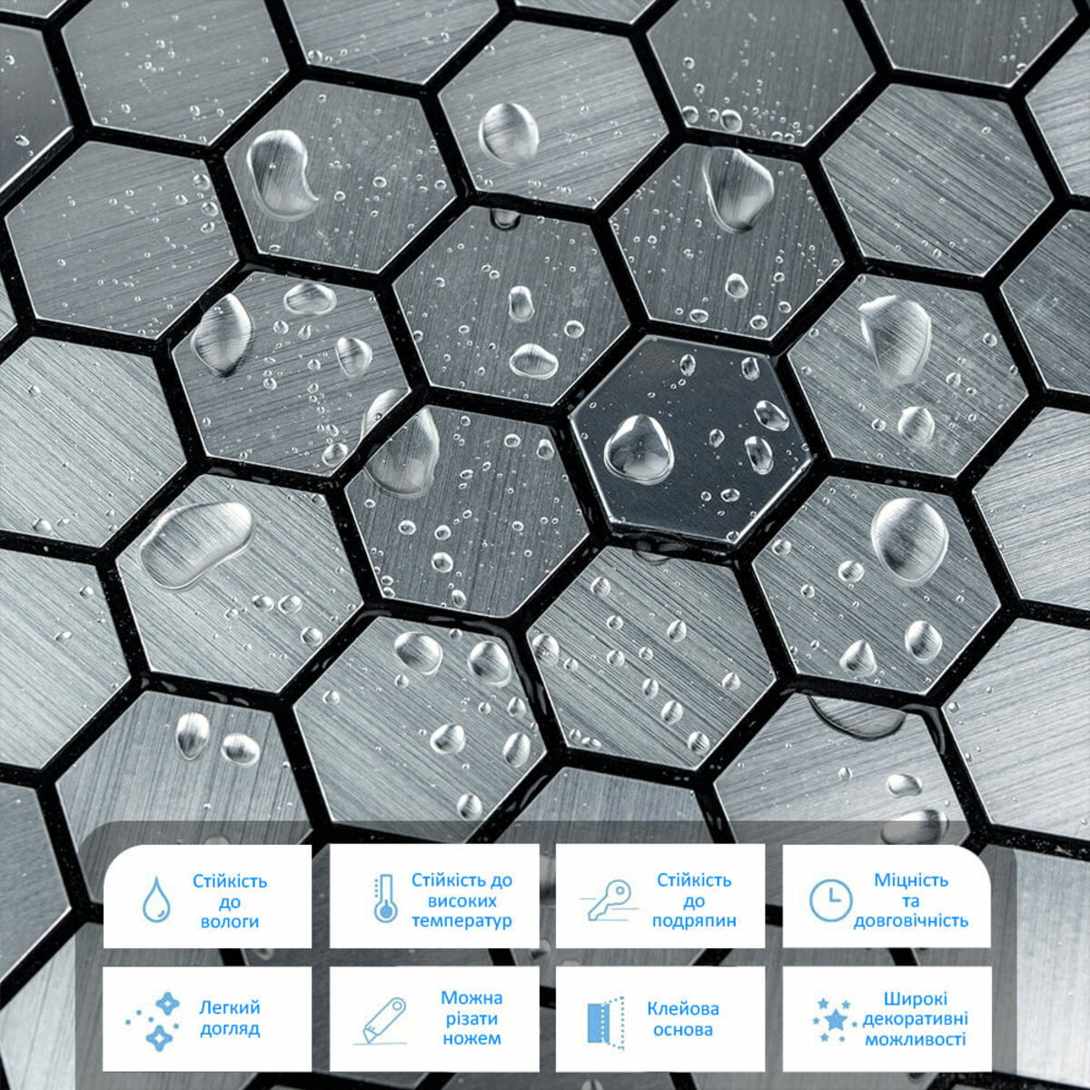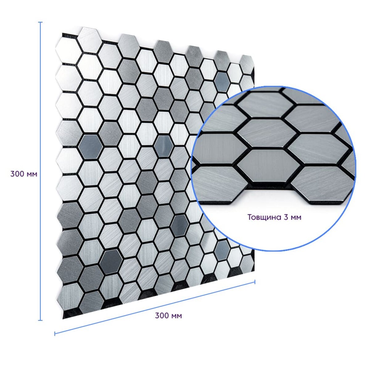 Самоклеюча алюмінієва плитка Sticker wall срібна мозаїка із дзеркальними вставками 300х300х3мм SW-00001928 (D)