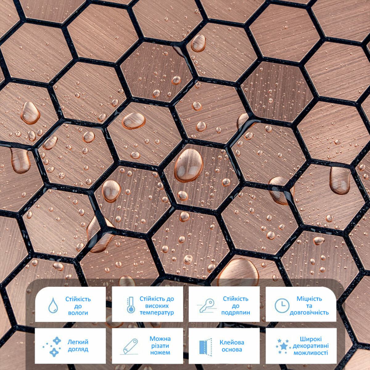 Самоклеюча алюмінієва плитка Sticker wall золоті соти 300х300х3мм SW-00001924