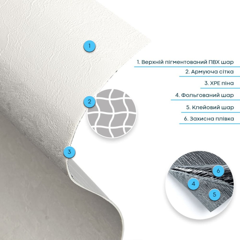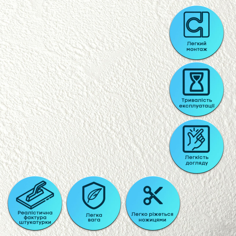 Набрид класичний ремонт, але хочеться преміального вигляду декоративної штукатурки? Відкрийте для себе самоклеючу гнучку штукатурку — інноваційне настінне покриття, яке поєднує вишуканий візуальний ефект оштукатуреної стіни та неперевершену простоту монтажу. Це рішення для тих, хто цінує швидкість, чистоту та ідеальну якість без компромісів. Самоклеюча гнучка штукатурка — інноваційне настінне покриття, яке візуально не відрізняється від справжньої декоративної штукатурки, але має значно ширші можливості у використанні. Завдяки еластичній структурі матеріал легко адаптується до будь-яких поверхонь, не утворює заломів і тріщин навіть під час монтажу на нерівних або складних ділянках. Покриття зберігає ідеальний вигляд без додаткових інструментів чи «брудних» робіт. Це універсальне рішення для швидкого, чистого та ефектного оздоблення стін, яке поєднує преміальний вигляд декоративної штукатурки з максимально простою технологією самоклеючого монтажу. Розмір: 600х3000х2,5мм Вага: 600х3000х2,5мм – 1,2 кг Площа покриття: 600х3000х2,5мм – 1,8 кв.м Переваги самоклеючої гнучкої штукатурки 1. Еластичність та гнучкість - забудьте про заломи! Завдяки унікальній еластичності та вбудованій армувальній сітці, матеріал ідеально лягає навіть на нерівні або складні ділянки, зберігаючи стабільну геометрію та форму. 2. Самоклеючий монтаж - ніякого клею, бруду та очікування. Подвійний клейовий шар із високою адгезією гарантує миттєве та надійне встановлення. Просто зніміть захисну плівку та приклейте! 3. Стійкість до вологи (навіть для ванних!) - матеріал не вбирає воду, стійкий до пари та не сприяє плісняві. Ідеально підходить для кухонь та ванних кімнат. 4. Довговічність та міцність - комбінація міцного ПВХ шару та армувальної сітки забезпечує стійкість до зносу. Покриття не тріскається та не кришиться навіть при активній експлуатації. 5. Додатковий комфорт - основа з ХРЕ та фольгований шар забезпечують помірні тепло- та звукоізоляційні властивості, роблячи ваше приміщення затишнішим. 6. Простий догляд - легко очищується вологою серветкою. А якщо пошкодиться одна плитка — її можна швидко замінити, не демонтуючи всю поверхню. 7. Безпека - виготовлений із нетоксичної та екологічно безпечної сировини, підходить для будь-яких житлових приміщень. Властивості матеріалу 1. Пігментований ПВХ шар (декоративний): максимально детальна фактура, що імітує декоративну штукатурку. Стійкий до УФ та хімічних речовин, здатний відновлювати форму після деформації. 2. Армувальна сітка: внутрішнє зміцнення. Запобігає розтягуванню та деформаціям, гарантуючи стабільність форми. 3. ХРЕ (спінений поліетилен): легка, пружна та вологостійка основа із закритою комірчастою структурою. Забезпечує пружність та теплоізоляцію. 4. Фольгований шар: подвійний захист! Відбиває теплові хвилі (додаткова теплоізоляція) та захищає від вологи, зміцнюючи ХРЕ-основу. 5. Подвійний клейовий шар: високоадгезійна, нетоксична основа для миттєвого монтажу. 6. Захисна фольгована плівка: оберігає клей, легко знімається під час роботи. Сфери застосування Цей універсальний матеріал ідеально підходить для внутрішніх оздоблювальних робіт у будь-якому приміщенні: - Житлові: кухня (навіть фартух), ванна кімната, вітальня, дитяча, спальня. - Комерційні: офіси, зони рецепції, магазини, салони краси, фітнес-цент