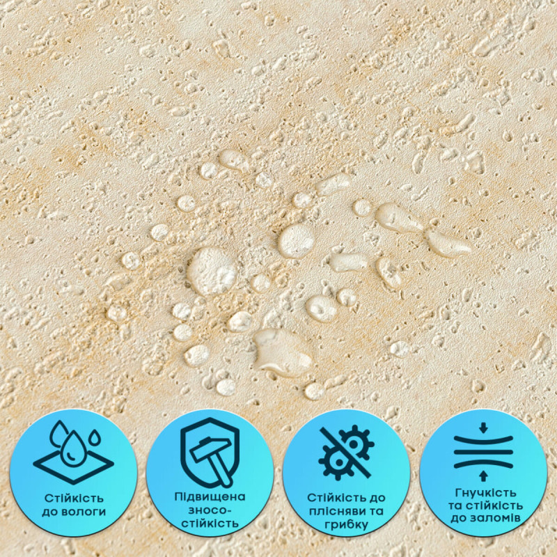 Набрид класичний ремонт, але хочеться преміального вигляду декоративної штукатурки? Відкрийте для себе самоклеючу гнучку штукатурку — інноваційне настінне покриття, яке поєднує вишуканий візуальний ефект оштукатуреної стіни та неперевершену простоту монтажу. Це рішення для тих, хто цінує швидкість, чистоту та ідеальну якість без компромісів. Самоклеюча гнучка штукатурка — інноваційне настінне покриття, яке візуально не відрізняється від справжньої декоративної штукатурки, але має значно ширші можливості у використанні. Завдяки еластичній структурі матеріал легко адаптується до будь-яких поверхонь, не утворює заломів і тріщин навіть під час монтажу на нерівних або складних ділянках. Покриття зберігає ідеальний вигляд без додаткових інструментів чи «брудних» робіт. Це універсальне рішення для швидкого, чистого та ефектного оздоблення стін, яке поєднує преміальний вигляд декоративної штукатурки з максимально простою технологією самоклеючого монтажу. Розмір: 600х3000х2,5мм Вага: 600х3000х2,5мм – 1,2 кг Площа покриття: 600х3000х2,5мм – 1,8 кв.м Переваги самоклеючої гнучкої штукатурки 1. Еластичність та гнучкість - забудьте про заломи! Завдяки унікальній еластичності та вбудованій армувальній сітці, матеріал ідеально лягає навіть на нерівні або складні ділянки, зберігаючи стабільну геометрію та форму. 2. Самоклеючий монтаж - ніякого клею, бруду та очікування. Подвійний клейовий шар із високою адгезією гарантує миттєве та надійне встановлення. Просто зніміть захисну плівку та приклейте! 3. Стійкість до вологи (навіть для ванних!) - матеріал не вбирає воду, стійкий до пари та не сприяє плісняві. Ідеально підходить для кухонь та ванних кімнат. 4. Довговічність та міцність - комбінація міцного ПВХ шару та армувальної сітки забезпечує стійкість до зносу. Покриття не тріскається та не кришиться навіть при активній експлуатації. 5. Додатковий комфорт - основа з ХРЕ та фольгований шар забезпечують помірні тепло- та звукоізоляційні властивості, роблячи ваше приміщення затишнішим. 6. Простий догляд - легко очищується вологою серветкою. А якщо пошкодиться одна плитка — її можна швидко замінити, не демонтуючи всю поверхню. 7. Безпека - виготовлений із нетоксичної та екологічно безпечної сировини, підходить для будь-яких житлових приміщень. Властивості матеріалу 1. Пігментований ПВХ шар (декоративний): максимально детальна фактура, що імітує декоративну штукатурку. Стійкий до УФ та хімічних речовин, здатний відновлювати форму після деформації. 2. Армувальна сітка: внутрішнє зміцнення. Запобігає розтягуванню та деформаціям, гарантуючи стабільність форми. 3. ХРЕ (спінений поліетилен): легка, пружна та вологостійка основа із закритою комірчастою структурою. Забезпечує пружність та теплоізоляцію. 4. Фольгований шар: подвійний захист! Відбиває теплові хвилі (додаткова теплоізоляція) та захищає від вологи, зміцнюючи ХРЕ-основу. 5. Подвійний клейовий шар: високоадгезійна, нетоксична основа для миттєвого монтажу. 6. Захисна фольгована плівка: оберігає клей, легко знімається під час роботи. Сфери застосування Цей універсальний матеріал ідеально підходить для внутрішніх оздоблювальних робіт у будь-якому приміщенні: - Житлові: кухня (навіть фартух), ванна кімната, вітальня, дитяча, спальня. - Комерційні: офіси, зони рецепції, магазини, салони краси, фітнес-цент