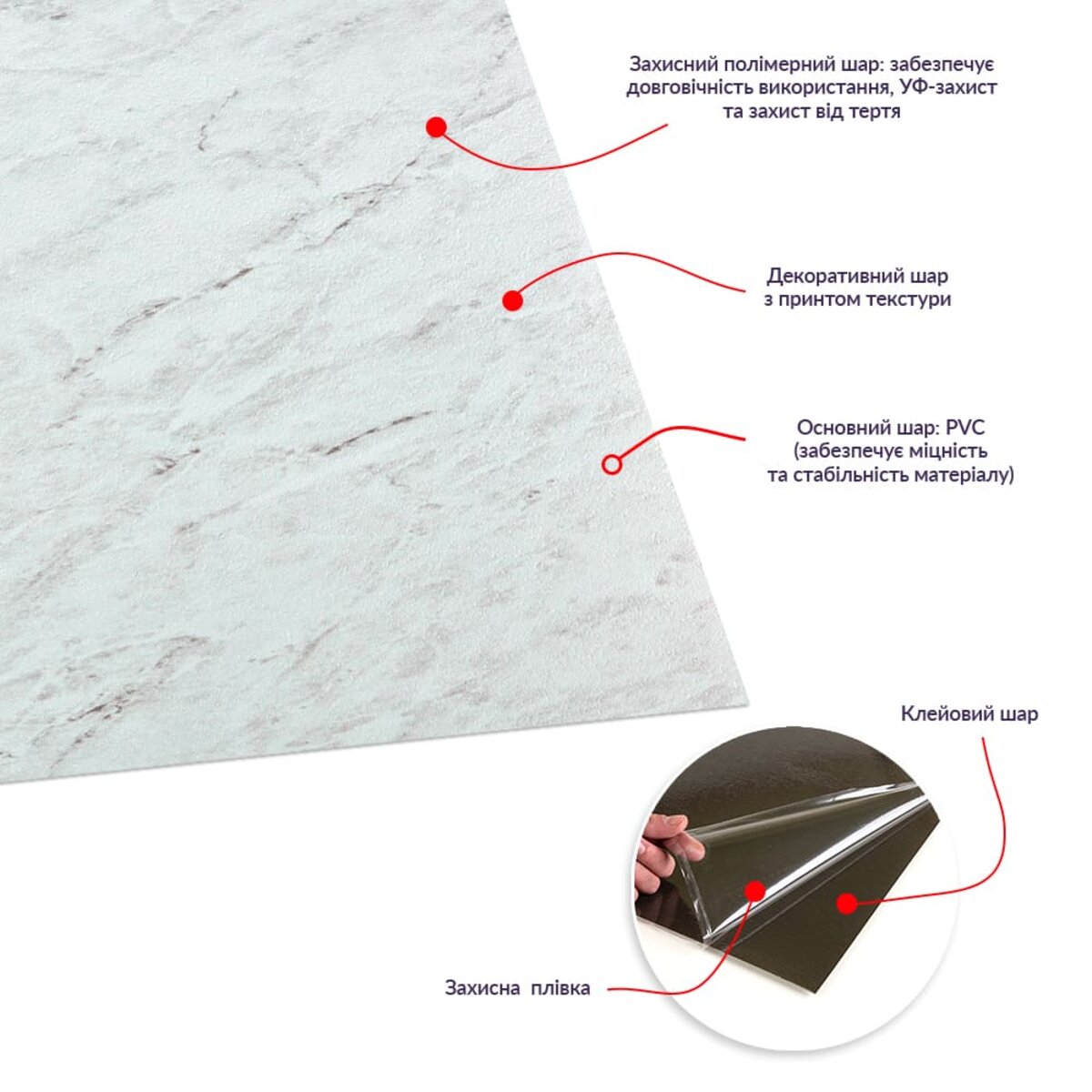 Самоклеюча LVT плитка Sticker wall 457*457*1.5mm (D) SW-00002460 Підлогове покриття LVT з самоклеючим шаром – багатошарове вінілове покриття, виготовлене методом гарячого пресування. Основою для нього є полівінілхлорид, який поєднується з різними пластифікаторами та стабілізаторами. Завдяки передовим технологіям друку та тиснення, це покриття має чудову візуальну схожість з натуральними матеріалами, ідеально імітуючи текстуру, кольори та зовнішній вигляд дерева, каменю, мармуру та інших природних матеріалів. Крім того, воно має високу вологостійкість, зносостійкість і легкість монтажу. Матеріал виготовлення – полівінілхлорид (PVC). Розмір – 457x457x1.5 мм. Вага однієї плитки – 550 грам. Текстура матеріалу може бути гладкою, глянцевою, матовою або напівматовою. Структура матеріалу включає такі шари: 1. УФ-покриття. 2. Захисний шар: Полімерний шар, що забезпечує стійкість та захист від стирання. 3. Декоративний шар: Тонка плівка з кольоровим друком, що повністю передає текстуру та візерунки дерева, каменю, мармуру та інших матеріалів. 4. Основний шар: Полівінілхлорид (PVC), що надає матеріалу міцність та стабільність. Нижній шар: 1. Клейовий шар: Екологічно безпечна основа з високою клейовою здатністю. 2. Захисний силіконізований папір. Застосування: Цей матеріал ідеально підходить для оздоблювальних робіт у різних комерційних та домашніх приміщеннях, включаючи офіси, житлові приміщення, кухні та ванні кімнати, а також для використання у громадських та медичних закладах, фітнес-центрах та готелях. Завдяки своїй вологостійкості, стійкості до забруднення та легкого догляду, він підходить для застосування в спальнях, вітальнях, кухнях, ванних кімнатах та на сходах. Може бути використаний як самостійне покриття для підлоги, для декоративних цілей або для оновлення старих покриттів. Особливості та переваги матеріалу: - Просте та швидке самоклейне кріплення, що не вимагає участі фахівців та спеціальних інструментів. - Реалістична імітація природних матеріалів із унікальним реалізмом. - Економія часу та зусиль при встановленні. - Пластичність та легкість обрізки. - Міцність та довговічність. - Опір зносу, вологи та морозу. - Ефективна шумо та теплоізоляція. - Зручність догляду та різноманітність кольорів та текстур. - Екологічна безпека. Монтаж: 1. Визначте площу, яку потрібно покрити. 2. Підготуйте поверхню: переконайтеся, що вона суха, рівна та чиста. 3. Приклеюйте плити, поступово знімаючи захисний шар паперу. 4. Ретельно притискайте плити до підлоги, щоб забезпечити надійне кріплення. 5. Укладайте плити з ретельним вирівнюванням стик до стику.Характеристики