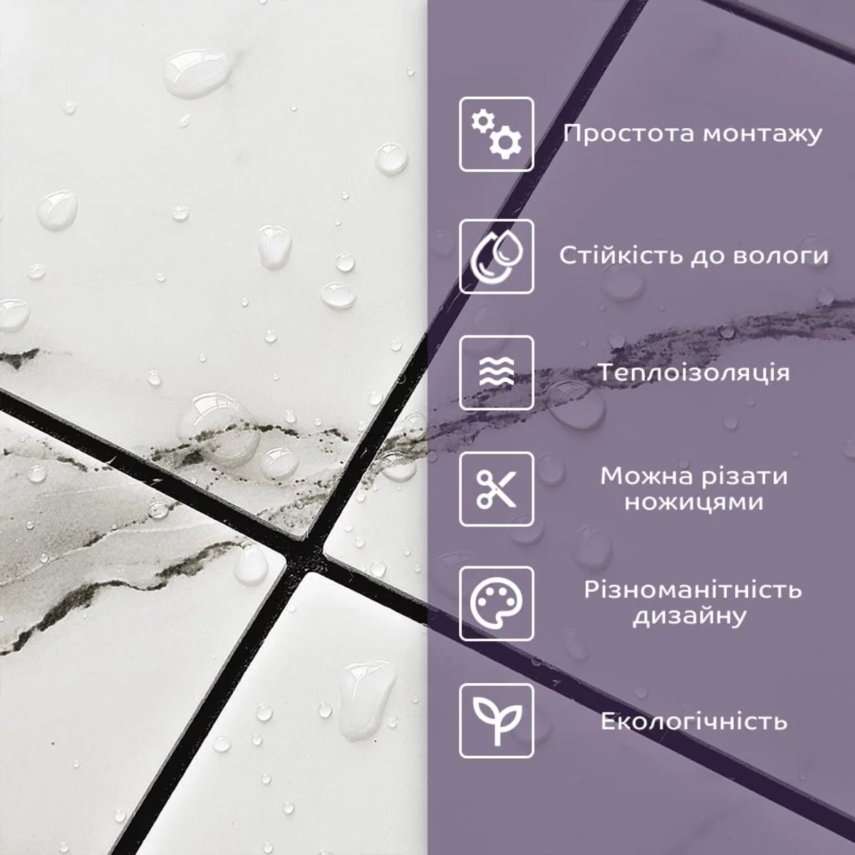 Самоклеюча PET мозаїка Sticker wall 30*30см*4мм (D) SW-00002444 Сучасний дизайн з плиткою з ПЕТ: легкість, міцність та стиль Плитка з поліетилентерефталату (ПЕТ) – це інноваційний матеріал, який відкриває нові можливості для створення стильних інтер'єрів. Завдяки своїй легкості, міцності та екологічності, вона стає ідеальним вибором для декорування житлових і комерційних приміщень. ПЕТ-плитка дозволяє реалізувати найсміливіші дизайнерські ідеї: від елегантних мозаїчних візерунків до оригінальних художніх інсталяцій. Цей матеріал відмінно підходить для оздоблення стін, меблів, дверей та інших поверхонь, створюючи сучасний та функціональний вигляд. Його універсальність, простота монтажу та довговічність роблять ПЕТ-плитку незамінним рішенням для будь-якого інтер'єру. Основні характеристики: Матеріал: ПЕТ (поліетилентерефталат). Розмір: 30см x 30см x 4мм. Вага: 75 грам. Площа покриття: 1 плитка = 0,09 кв.м; для 1 кв.м потрібно 12 одиниць. Фактура: рівна, з поглибленнями між мозаїчними елементами. Шари: - Захисний прозорий шар. - Декоративний шар із зображенням. - Термопластик. - Подвійний клейовий шар. - Захисний папір. Температурний режим: від -40°C до +75°C. Призначення: ПЕТ-плитка ідеально підходить для внутрішніх оздоблювальних робіт. Вона використовується для декорування стін у житлових приміщеннях (кухня, ванна кімната, вітальня, спальня, вхідна група), а також у комерційних об'єктах. Матеріал також застосовується для оздоблення меблів, дверей та створення декоративних елементів. Переваги ПЕТ-плитки: 1. Легкість та міцність: матеріал легкий, простий у монтажі та довговічний. Плитку можна різати ножицями або монтажним ножем, що робить процес установки швидким і зручним. 2. Стійкість до вологи: ПЕТ-плитка не боїться вологи, пари та плісняви, що робить її ідеальним вибором для кухонь, ванних кімнат та інших приміщень з підвищеною вологістю. 3. Ізоляційні властивості: завдяки повітряним прошаркам матеріал забезпечує звукову та теплоізоляцію. 4. Антистатичний ефект: поверхня не притягує пил, що полегшує догляд за нею. 5. Різноманітність дизайну: широкий вибір кольорів, текстур та принтів дозволяє створювати унікальні інтер'єри. 6. Екологічність: ПЕТ-плитка може бути перероблена, що робить її екологічно чистим варіантом. 7. Простота в догляді: поверхня легко миється та не вимагає спеціальних засобів для чищення. 8. Довговічність: термін служби плитки становить від 5 років і більше. Інструкція з монтажу: 1. Підготовка поверхні: Переконайтеся, що поверхня чиста, суха та рівна. Видаліть пил, бруд та олію. Плитка та поверхня повинні бути кімнатної температури для кращого зчеплення. 2. Зняття захисного шару: Зніміть захисну плівку зі зворотного боку плитки, щоб відкрити клейку поверхню. 3. Початок монтажу: Розпочніть установку з кута, акуратно притискаючи плитку до поверхні. Стежте за тим, щоб плитка лягала рівно, без бульбашок або зморшок. 4. Підгонка за розміром: Використовуйте ніж або ножиці для підрізання плитки, особливо по краях та в кутах. 5. Фіксація: Щільно притискайте плитку до поверхні, щоб забезпечити міцне зчеплення. Чому варто обрати ПЕТ-плитку? ПЕТ-плитка – це сучасне рішення для тих, хто цінує стиль, практичність та екологічність. Вона поєднує в собі легкість монтажу, довговічність та естетичний вигляд, що робить її ідеальним вибором для будь-якого інтер'єру. Ств