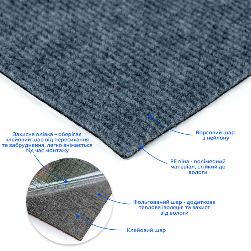 | Найменування | Самоклеюча плитка під ковролін |