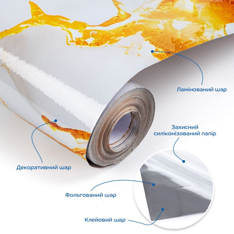 Самоклеюча плівка Sticker wall 60cm*10m SW-00002395 Ламінована самоклеюча плівка – це гнучкий і міцний матеріал, що відрізняється високою стійкістю до розриву. Одна із сторін плівки покрита спеціальним клейовим шаром, що забезпечує її легкість у використанні. Цей універсальний матеріал широко застосовується для облицювання, захисту, декоративного оформлення та відновлення гладких поверхонь. Її переваги включають простоту монтажу, довговічність та можливість використання в різних умовах. Ламінована плівка буває у різних відтінках, текстурах та дизайнах, що дозволяє підібрати варіант під будь-який інтер'єр. Вона також ефективно захищає поверхні від механічних пошкоджень, впливу вологи та ультрафіолетових променів, продовжуючи термін служби меблів або стін. Розміри: 600х10000 мм. Площа покриття: 600х10000 – 6 кв. Фактура: немає рельєфу, поверхня глянсова. Плівка складається з кількох шарів, кожен із яких виконує певні завдання: 1. Ламінований шар. Верхній шар плівки служить для захисту від подряпин, плям і вологи. Він надає поверхні глянцевий блиск і спрощує очищення від забруднень. 50 градусів. вали, що забезпечують міцне зчеплення з базовим шаром без деформації. 2. Декоративний шар. Під захисним покриттям розташовується шар з декоративним малюнком або текстурою, що імітує дерево, мармур, плитку або інші поверхні. 3. Фольгований шар. Цей шар підвищує міцність плівки, забезпечуючи її стійкість до розривів, вологи та перепадів температур. Завдяки фользі поверхня набуває додаткової яскравості та стильного світловідбиваючого ефекту. 4. Клейовий шар. Спеціальна нетоксична клейова основа забезпечує надійне зчеплення плівки з поверхнею, створюючи міцне та довговічне з'єднання. 5. Захисний силіконізований папір Цей шар покриває клейову основу до моменту монтажу, запобігаючи її забрудненню, пересиханню або випадковому прилипанню. Застосування: Плівка ідеально підходить для внутрішніх оздоблювальних робіт, включаючи декорування та облицювання різних поверхонь у житлових приміщеннях: кухнях, вітальнях, дитячих кімнатах, спальнях та передпокоях. Також вона широко використовується в комерційних просторах, таких як офіси, зони рецепції, магазини, салони краси та фітнес-центри. Матеріал чудово підходить для оновлення зовнішнього вигляду меблів, дверей та побутової техніки, надаючи їм стильного та сучасного вигляду. Плівка стійка до зношування і легко очищається, що робить її чудовим вибором для приміщень з високою прохідністю або вимогами до чистоти. Використовуючи цю плівку, ви зможете швидко перетворити інтер'єр без великих витрат та складних ремонтних робіт. Властивості та переваги ламінованої самоклеючої плівки: 1. Висока міцність Завдяки фольгованій основі матеріал відрізняється винятковою стійкістю до розривів. Плівку практично неможливо пошкодити без попереднього надрізу, що забезпечує довговічність та спрощує процес монтажу. 2. Зносостійкість Ламіноване покриття надійно захищає плівку від подряпин, забруднень, пилу та плям, зберігаючи її привабливий зовнішній вигляд навіть за інтенсивної експлуатації. Поверхня легко очищається, що продовжує термін служби виробу та підтримує його естетичні якості. 3. Вологостійкість Плівка стійка до впливу вологи завдяки ламінованому шару, що робить її відмінним вибором для приміщень з підвищеною воло