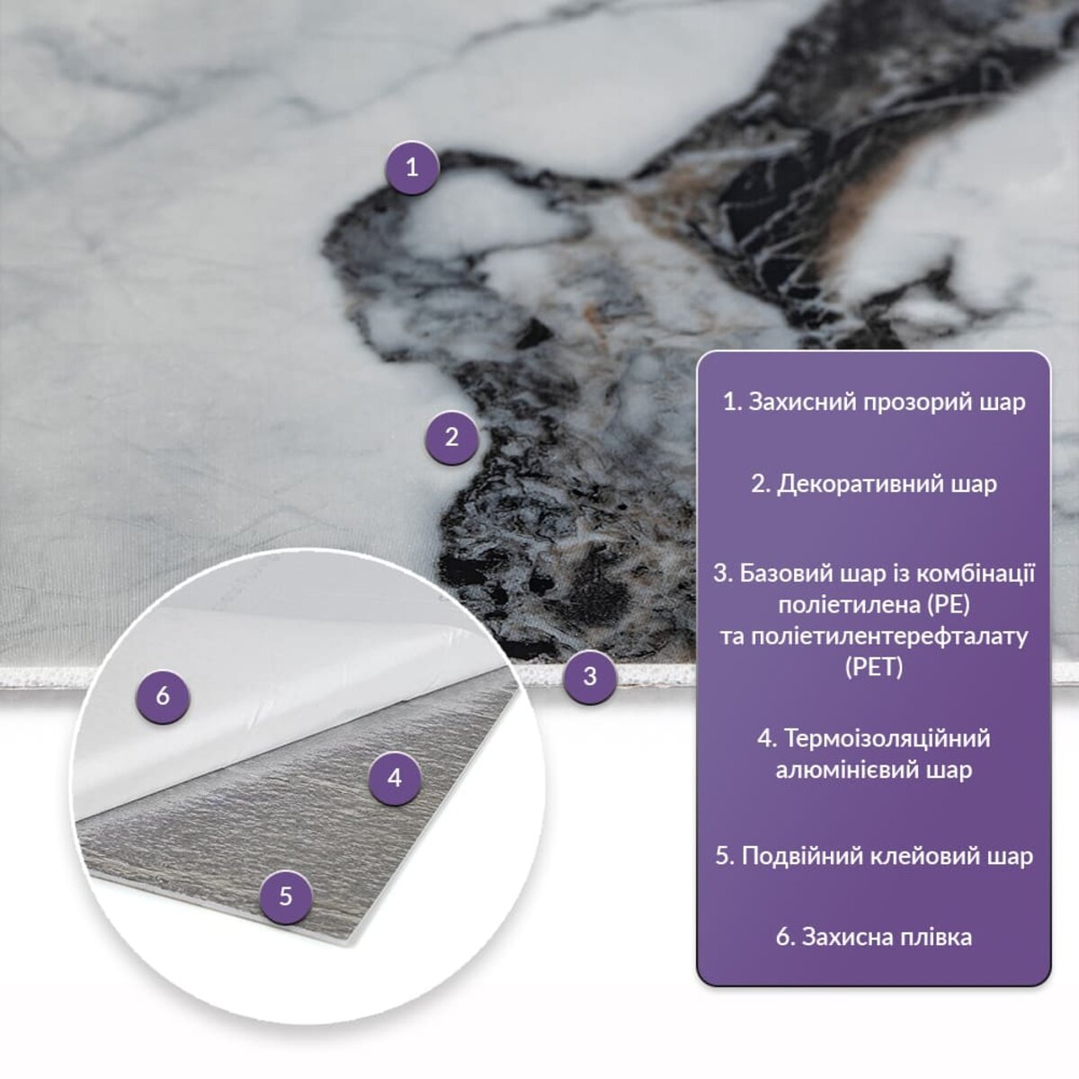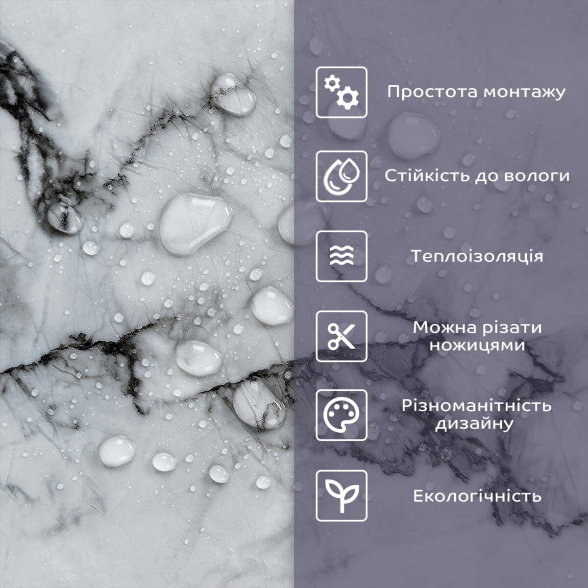 Самоклеюча стінова PET плитка Sticker wall 600*300*2mm (D) SW-00002307 Самоклеюча стінова PET плитка Sticker wall - це сучасне та зручне рішення для стильного та швидкого оновлення інтер'єру. Вона ідеально підходить для створення оригінальних акцентів на стінах, додаючи текстури та глибини простору. Матеріал являє собою суміш двох полімерів - поліетилену (PE) та поліетилентерефталату (PET), яка забезпечує відмінні клеючі властивості та міцність. Розміри: - Плитка: 60 см х 30 см х 2 мм - Довжина: 60 см - Висота: 30 см - Товщина: 2 мм Вага: плитка 60 см х 30 см – 104 грам. Площа покриття: 60 см х 30 см х 2 мм – 0,18 кв. м, кількість на 1 кв. м – 6 одиниць. Фактура: рівна. Матеріал містить такі шари: 1. Прозорий шар захисту. 2. Декоративний шар із зображенням. 3. Основний шар, що складається з поєднання поліетилену (PE) та поліетилентерефталату (PET). 4. Термоізоляційний шар із алюмінію. 5. Подвійний шар клею. 6. Захисний папір. Температурний режим: -40 - +75 градусів. Застосування: Може бути використаний для різних внутрішніх оздоблювальних робіт, таких як декорування стін у житлових приміщеннях (наприклад, кухня, ванна кімната, вітальня, дитяча або спальня, вхідна зона) та комерційних приміщеннях (офіси, зони рецепції, магазини, салони краси, фітнес-центри) та громадські місця). Крім того, його можна використовувати для декорування меблів, дверей та інших рівних поверхонь. Властивості та переваги матеріалу: 1. Легкість і міцність: має легкість і міцність, що спрощує його транспортування, монтаж і забезпечує довгий термін служби. Він зручний в установці, може бути легко вирізаний ножицями чи монтажним ножем, не потребує додаткових матеріалів чи професійних навичок. Матеріал не розщеплюється, не надується і не деформується між смугами, з мінімальними втратами, що робить його ідеальним для стінових покриттів. 2. Водостійкість: цей матеріал стійкий до впливу вологи, пари та грибка, що робить його придатним для застосування в приміщеннях з високою вологістю, таких як ванні кімнати та кухні. Його можна використовувати для створення фартуха на кухні, проклеюючи плитки на відстані не менше ніж 20-25 см. 3. Ізоляція: плитка забезпечує звукову та теплоізоляцію завдяки наявності повітряних прошарків та додатковому алюмінієвому шару. 4. Антистатичний ефект: у складі покриття міститься антистатик, що запобігає накопиченню пилу на поверхні. 5. Різноманітність дизайну: плитки доступні у різноманітних колірних та структурних варіаціях, що дозволяє вибрати підходящий дизайн для вашого інтер'єру. 6. Імітація інших матеріалів: дизайн цієї плитки розроблений з урахуванням імітації інших матеріалів, таких як камінь або кераміка, пропонуючи естетично приємне рішення за доступною ціною. 7. Екологічна доброзичливість: матеріал може бути утилізований та перероблений, що робить його більш екологічно чистим варіантом у порівнянні з деякими іншими матеріалами. 8. Простота обслуговування: поверхня плитки легко очищається і не потребує особливого догляду. 9. Довгий термін служби: матеріал є міцним та стійким до зношування, що гарантує його тривалий термін служби. Монтаж: Крок 1 Перед початком встановлення переконайтеся, що поверхня, на яку ви збираєтесь встановлювати плитку, чиста, суха та рівна. Необхідно видалити всі сліди пилу, бруду чи олії з поверхні, за необхідності провести вирівнювання поверхні. Як плитка, так і поверхня пов