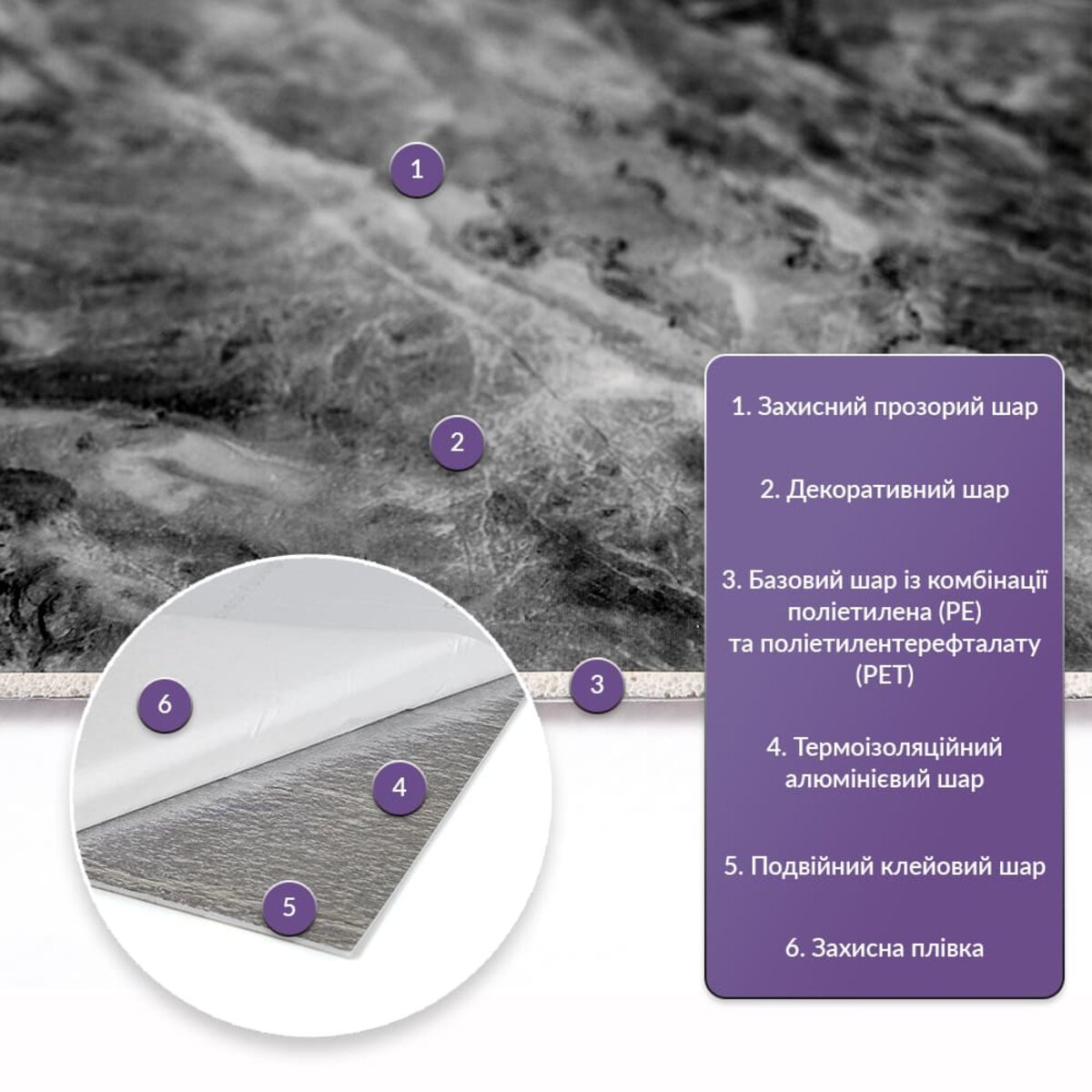 Самоклеюча стінова PET плитка Sticker wall 600*300*2mm (D) SW-00002310 Самоклеюча стінова PET плитка Sticker wall - це сучасне та зручне рішення для стильного та швидкого оновлення інтер'єру. Вона ідеально підходить для створення оригінальних акцентів на стінах, додаючи текстури та глибини простору. Матеріал являє собою суміш двох полімерів - поліетилену (PE) та поліетилентерефталату (PET), яка забезпечує відмінні клеючі властивості та міцність. Розміри: - Плитка: 60 см х 30 см х 2 мм - Довжина: 60 см - Висота: 30 см - Товщина: 2 мм Вага: плитка 60 см х 30 см – 104 грам. Площа покриття: 60 см х 30 см х 2 мм – 0,18 кв. м, кількість на 1 кв. м – 6 одиниць. Фактура: рівна. Матеріал містить такі шари: 1. Прозорий шар захисту. 2. Декоративний шар із зображенням. 3. Основний шар, що складається з поєднання поліетилену (PE) та поліетилентерефталату (PET). 4. Термоізоляційний шар із алюмінію. 5. Подвійний шар клею. 6. Захисний папір. Температурний режим: -40 - +75 градусів. Застосування: Може бути використаний для різних внутрішніх оздоблювальних робіт, таких як декорування стін у житлових приміщеннях (наприклад, кухня, ванна кімната, вітальня, дитяча або спальня, вхідна зона) та комерційних приміщеннях (офіси, зони рецепції, магазини, салони краси, фітнес-центри) та громадські місця). Крім того, його можна використовувати для декорування меблів, дверей та інших рівних поверхонь. Властивості та переваги матеріалу: 1. Легкість і міцність: має легкість і міцність, що спрощує його транспортування, монтаж і забезпечує довгий термін служби. Він зручний в установці, може бути легко вирізаний ножицями чи монтажним ножем, не потребує додаткових матеріалів чи професійних навичок. Матеріал не розщеплюється, не надується і не деформується між смугами, з мінімальними втратами, що робить його ідеальним для стінових покриттів. 2. Водостійкість: цей матеріал стійкий до впливу вологи, пари та грибка, що робить його придатним для застосування в приміщеннях з високою вологістю, таких як ванні кімнати та кухні. Його можна використовувати для створення фартуха на кухні, проклеюючи плитки на відстані не менше ніж 20-25 см. 3. Ізоляція: плитка забезпечує звукову та теплоізоляцію завдяки наявності повітряних прошарків та додатковому алюмінієвому шару. 4. Антистатичний ефект: у складі покриття міститься антистатик, що запобігає накопиченню пилу на поверхні. 5. Різноманітність дизайну: плитки доступні у різноманітних колірних та структурних варіаціях, що дозволяє вибрати підходящий дизайн для вашого інтер'єру. 6. Імітація інших матеріалів: дизайн цієї плитки розроблений з урахуванням імітації інших матеріалів, таких як камінь або кераміка, пропонуючи естетично приємне рішення за доступною ціною. 7. Екологічна доброзичливість: матеріал може бути утилізований та перероблений, що робить його більш екологічно чистим варіантом у порівнянні з деякими іншими матеріалами. 8. Простота обслуговування: поверхня плитки легко очищається і не потребує особливого догляду. 9. Довгий термін служби: матеріал є міцним та стійким до зношування, що гарантує його тривалий термін служби. Монтаж: Крок 1 Перед початком встановлення переконайтеся, що поверхня, на яку ви збираєтесь встановлювати плитку, чиста, суха та рівна. Необхідно видалити всі сліди пилу, бруду чи олії з поверхні, за необхідності провести вирівнювання поверхні. Як плитка, так і поверхня пов