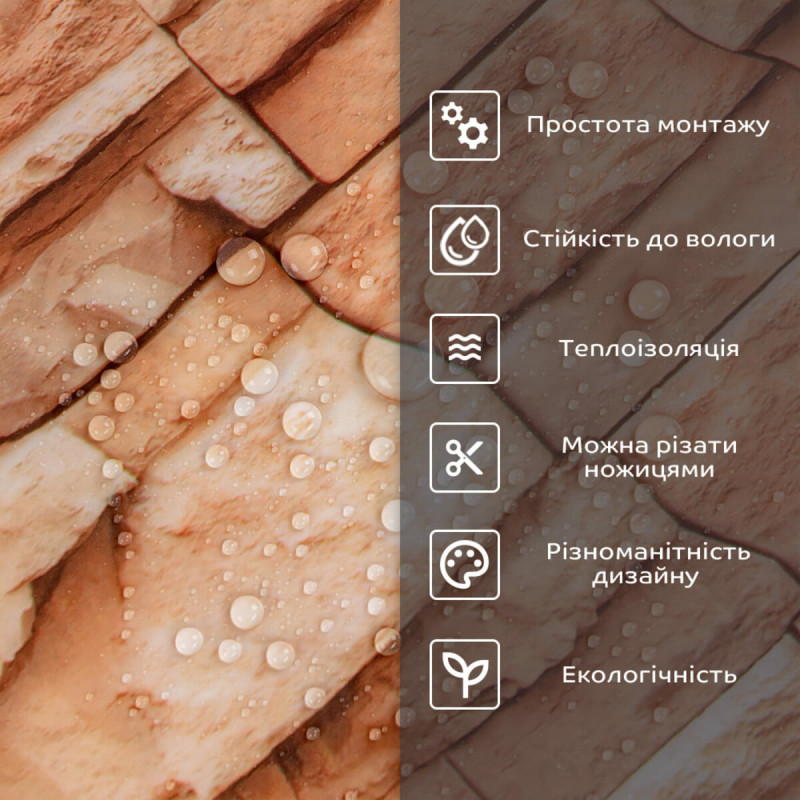 Самоклеюча стінова PET плитка Sticker wall 600*300*2mm (D) SW-00002329 Самоклеюча стінова PET плитка Sticker wall - це сучасне та зручне рішення для стильного та швидкого оновлення інтер'єру. Вона ідеально підходить для створення оригінальних акцентів на стінах, додаючи текстури та глибини простору. Матеріал являє собою суміш двох полімерів - поліетилену (PE) та поліетилентерефталату (PET), яка забезпечує відмінні клеючі властивості та міцність. Розміри: - Плитка: 60 см х 30 см х 2 мм - Довжина: 60 см - Висота: 30 см - Товщина: 2 мм Вага: плитка 60 см х 30 см – 104 грам. Площа покриття: 60 см х 30 см х 2 мм – 0,18 кв. м, кількість на 1 кв. м – 6 одиниць. Фактура: рівна. Матеріал містить такі шари: 1. Прозорий шар захисту. 2. Декоративний шар із зображенням. 3. Основний шар, що складається з поєднання поліетилену (PE) та поліетилентерефталату (PET). 4. Термоізоляційний шар із алюмінію. 5. Подвійний шар клею. 6. Захисний папір. Температурний режим: -40 - +75 градусів. Застосування: Може бути використаний для різних внутрішніх оздоблювальних робіт, таких як декорування стін у житлових приміщеннях (наприклад, кухня, ванна кімната, вітальня, дитяча або спальня, вхідна зона) та комерційних приміщеннях (офіси, зони рецепції, магазини, салони краси, фітнес-центри) та громадські місця). Крім того, його можна використовувати для декорування меблів, дверей та інших рівних поверхонь. Властивості та переваги матеріалу: 1. Легкість і міцність: має легкість і міцність, що спрощує його транспортування, монтаж і забезпечує довгий термін служби. Він зручний в установці, може бути легко вирізаний ножицями чи монтажним ножем, не потребує додаткових матеріалів чи професійних навичок. Матеріал не розщеплюється, не надується і не деформується між смугами, з мінімальними втратами, що робить його ідеальним для стінових покриттів. 2. Водостійкість: цей матеріал стійкий до впливу вологи, пари та грибка, що робить його придатним для застосування в приміщеннях з високою вологістю, таких як ванні кімнати та кухні. Його можна використовувати для створення фартуха на кухні, проклеюючи плитки на відстані не менше ніж 20-25 см. 3. Ізоляція: плитка забезпечує звукову та теплоізоляцію завдяки наявності повітряних прошарків та додатковому алюмінієвому шару. 4. Антистатичний ефект: у складі покриття міститься антистатик, що запобігає накопиченню пилу на поверхні. 5. Різноманітність дизайну: плитки доступні у різноманітних колірних та структурних варіаціях, що дозволяє вибрати підходящий дизайн для вашого інтер'єру. 6. Імітація інших матеріалів: дизайн цієї плитки розроблений з урахуванням імітації інших матеріалів, таких як камінь або кераміка, пропонуючи естетично приємне рішення за доступною ціною. 7. Екологічна доброзичливість: матеріал може бути утилізований та перероблений, що робить його більш екологічно чистим варіантом у порівнянні з деякими іншими матеріалами. 8. Простота обслуговування: поверхня плитки легко очищається і не потребує особливого догляду. 9. Довгий термін служби: матеріал є міцним та стійким до зношування, що гарантує його тривалий термін служби. Монтаж: Крок 1 Перед початком встановлення переконайтеся, що поверхня, на яку ви збираєтесь встановлювати плитку, чиста, суха та рівна. Необхідно видалити всі сліди пилу, бруду чи олії з поверхні, за необхідності провести вирівнювання поверхні. Як плитка, так і поверхня пов