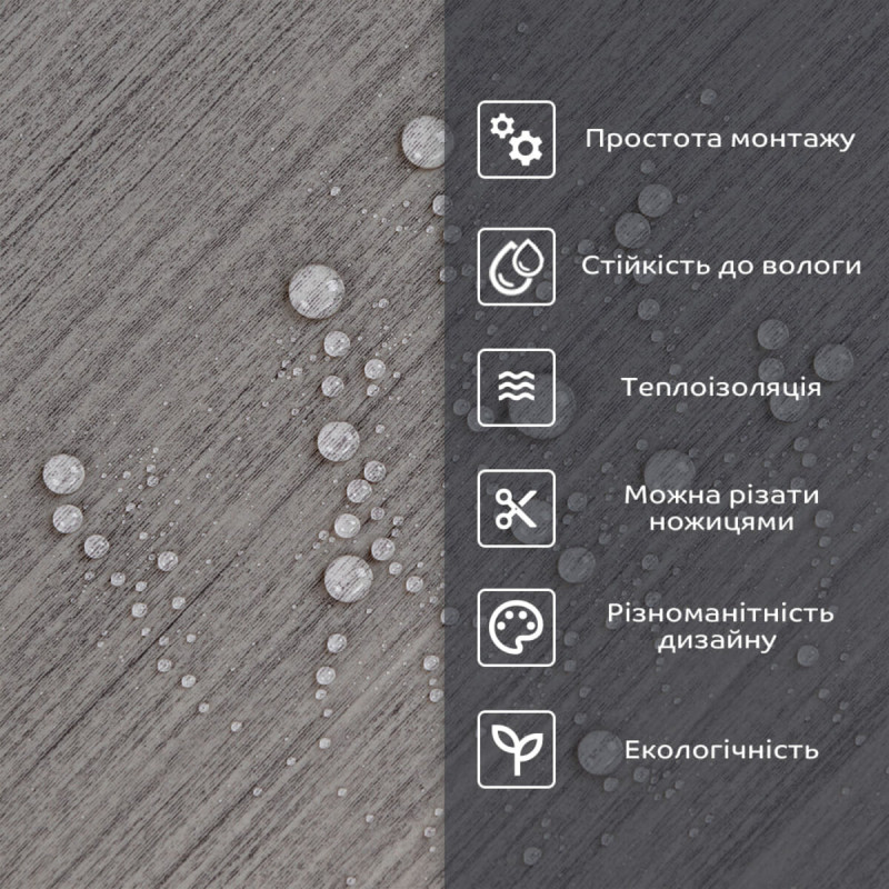 Самоклеюча стінова PET плитка Sticker wall 600*300*2mm (D) SW-00002343 Самоклеюча стінова PET плитка Sticker wall - це сучасне та зручне рішення для стильного та швидкого оновлення інтер'єру. Вона ідеально підходить для створення оригінальних акцентів на стінах, додаючи текстури та глибини простору. Матеріал являє собою суміш двох полімерів - поліетилену (PE) та поліетилентерефталату (PET), яка забезпечує відмінні клеючі властивості та міцність. Розміри: - Плитка: 60 см х 30 см х 2 мм - Довжина: 60 см - Висота: 30 см - Товщина: 2 мм Вага: плитка 60 см х 30 см – 104 грам. Площа покриття: 60 см х 30 см х 2 мм – 0,18 кв. м, кількість на 1 кв. м – 6 одиниць. Фактура: рівна. Матеріал містить такі шари: 1. Прозорий шар захисту. 2. Декоративний шар із зображенням. 3. Основний шар, що складається з поєднання поліетилену (PE) та поліетилентерефталату (PET). 4. Термоізоляційний шар із алюмінію. 5. Подвійний шар клею. 6. Захисний папір. Температурний режим: -40 - +75 градусів. Застосування: Може бути використаний для різних внутрішніх оздоблювальних робіт, таких як декорування стін у житлових приміщеннях (наприклад, кухня, ванна кімната, вітальня, дитяча або спальня, вхідна зона) та комерційних приміщеннях (офіси, зони рецепції, магазини, салони краси, фітнес-центри) та громадські місця). Крім того, його можна використовувати для декорування меблів, дверей та інших рівних поверхонь. Властивості та переваги матеріалу: 1. Легкість і міцність: має легкість і міцність, що спрощує його транспортування, монтаж і забезпечує довгий термін служби. Він зручний в установці, може бути легко вирізаний ножицями чи монтажним ножем, не потребує додаткових матеріалів чи професійних навичок. Матеріал не розщеплюється, не надується і не деформується між смугами, з мінімальними втратами, що робить його ідеальним для стінових покриттів. 2. Водостійкість: цей матеріал стійкий до впливу вологи, пари та грибка, що робить його придатним для застосування в приміщеннях з високою вологістю, таких як ванні кімнати та кухні. Його можна використовувати для створення фартуха на кухні, проклеюючи плитки на відстані не менше ніж 20-25 см. 3. Ізоляція: плитка забезпечує звукову та теплоізоляцію завдяки наявності повітряних прошарків та додатковому алюмінієвому шару. 4. Антистатичний ефект: у складі покриття міститься антистатик, що запобігає накопиченню пилу на поверхні. 5. Різноманітність дизайну: плитки доступні у різноманітних колірних та структурних варіаціях, що дозволяє вибрати підходящий дизайн для вашого інтер'єру. 6. Імітація інших матеріалів: дизайн цієї плитки розроблений з урахуванням імітації інших матеріалів, таких як камінь або кераміка, пропонуючи естетично приємне рішення за доступною ціною. 7. Екологічна доброзичливість: матеріал може бути утилізований та перероблений, що робить його більш екологічно чистим варіантом у порівнянні з деякими іншими матеріалами. 8. Простота обслуговування: поверхня плитки легко очищається і не потребує особливого догляду. 9. Довгий термін служби: матеріал є міцним та стійким до зношування, що гарантує його тривалий термін служби. Монтаж: Крок 1 Перед початком встановлення переконайтеся, що поверхня, на яку ви збираєтесь встановлювати плитку, чиста, суха та рівна. Необхідно видалити всі сліди пилу, бруду чи олії з поверхні, за необхідності провести вирівнювання поверхні. Як плитка, так і поверхня пов