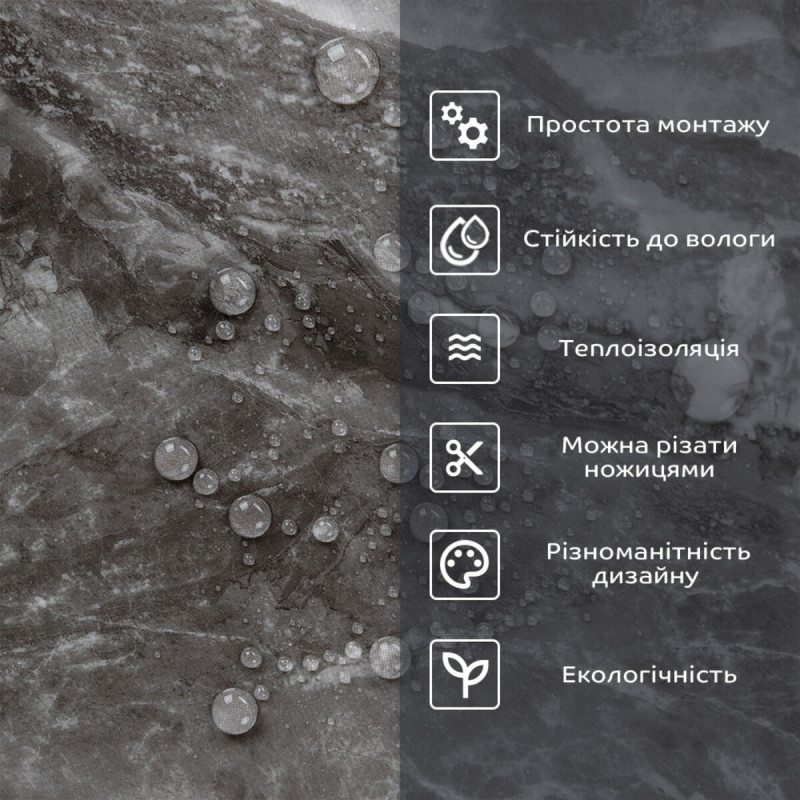 Самоклеюча стінова PET плитка Sticker wall 600*300*2mm (D) SW-00002349 Самоклеюча стінова PET плитка Sticker wall - це сучасне та зручне рішення для стильного та швидкого оновлення інтер'єру. Вона ідеально підходить для створення оригінальних акцентів на стінах, додаючи текстури та глибини простору. Матеріал являє собою суміш двох полімерів - поліетилену (PE) та поліетилентерефталату (PET), яка забезпечує відмінні клеючі властивості та міцність. Розміри: - Плитка: 60 см х 30 см х 2 мм - Довжина: 60 см - Висота: 30 см - Товщина: 2 мм Вага: плитка 60 см х 30 см – 104 грам. Площа покриття: 60 см х 30 см х 2 мм – 0,18 кв. м, кількість на 1 кв. м – 6 одиниць. Фактура: рівна. Матеріал містить такі шари: 1. Прозорий шар захисту. 2. Декоративний шар із зображенням. 3. Основний шар, що складається з поєднання поліетилену (PE) та поліетилентерефталату (PET). 4. Термоізоляційний шар із алюмінію. 5. Подвійний шар клею. 6. Захисний папір. Температурний режим: -40 - +75 градусів. Застосування: Може бути використаний для різних внутрішніх оздоблювальних робіт, таких як декорування стін у житлових приміщеннях (наприклад, кухня, ванна кімната, вітальня, дитяча або спальня, вхідна зона) та комерційних приміщеннях (офіси, зони рецепції, магазини, салони краси, фітнес-центри) та громадські місця). Крім того, його можна використовувати для декорування меблів, дверей та інших рівних поверхонь. Властивості та переваги матеріалу: 1. Легкість і міцність: має легкість і міцність, що спрощує його транспортування, монтаж і забезпечує довгий термін служби. Він зручний в установці, може бути легко вирізаний ножицями чи монтажним ножем, не потребує додаткових матеріалів чи професійних навичок. Матеріал не розщеплюється, не надується і не деформується між смугами, з мінімальними втратами, що робить його ідеальним для стінових покриттів. 2. Водостійкість: цей матеріал стійкий до впливу вологи, пари та грибка, що робить його придатним для застосування в приміщеннях з високою вологістю, таких як ванні кімнати та кухні. Його можна використовувати для створення фартуха на кухні, проклеюючи плитки на відстані не менше ніж 20-25 см. 3. Ізоляція: плитка забезпечує звукову та теплоізоляцію завдяки наявності повітряних прошарків та додатковому алюмінієвому шару. 4. Антистатичний ефект: у складі покриття міститься антистатик, що запобігає накопиченню пилу на поверхні. 5. Різноманітність дизайну: плитки доступні у різноманітних колірних та структурних варіаціях, що дозволяє вибрати підходящий дизайн для вашого інтер'єру. 6. Імітація інших матеріалів: дизайн цієї плитки розроблений з урахуванням імітації інших матеріалів, таких як камінь або кераміка, пропонуючи естетично приємне рішення за доступною ціною. 7. Екологічна доброзичливість: матеріал може бути утилізований та перероблений, що робить його більш екологічно чистим варіантом у порівнянні з деякими іншими матеріалами. 8. Простота обслуговування: поверхня плитки легко очищається і не потребує особливого догляду. 9. Довгий термін служби: матеріал є міцним та стійким до зношування, що гарантує його тривалий термін служби. Монтаж: Крок 1 Перед початком встановлення переконайтеся, що поверхня, на яку ви збираєтесь встановлювати плитку, чиста, суха та рівна. Необхідно видалити всі сліди пилу, бруду чи олії з поверхні, за необхідності провести вирівнювання поверхні. Як плитка, так і поверхня пов