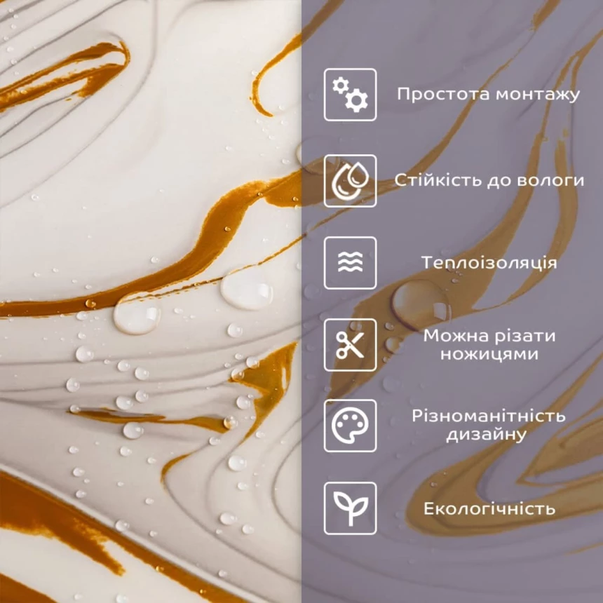 Самоклеюча стінова PET плитка Sticker wall - це сучасне та зручне рішення для стильного та швидкого оновлення інтер'єру. Вона ідеально підходить для створення оригінальних акцентів на стінах, додаючи текстури та глибини простору. Матеріал являє собою суміш двох полімерів - поліетилену (PE) та поліетилентерефталату (PET), яка забезпечує відмінні клеючі властивості та міцність. Розміри: - Плитка: 60 см х 30 см х 2 мм - Довжина: 60 см - Висота: 30 см - Товщина: 2 мм Вага: плитка 60 см х 30 см – 104 грам. Площа покриття: 60 см х 30 см х 2 мм – 0,18 кв. м, кількість на 1 кв. м – 6 одиниць. Фактура: рівна. Матеріал містить такі шари: 1. Прозорий шар захисту. 2. Декоративний шар із зображенням. 3. Основний шар, що складається з поєднання поліетилену (PE) та поліетилентерефталату (PET). 4. Термоізоляційний шар із алюмінію. 5. Подвійний шар клею. 6. Захисний папір. Температурний режим: -40 - +75 градусів. Застосування: Може бути використаний для різних внутрішніх оздоблювальних робіт, таких як декорування стін у житлових приміщеннях (наприклад, кухня, ванна кімната, вітальня, дитяча або спальня, вхідна зона) та комерційних приміщеннях (офіси, зони рецепції, магазини, салони краси, фітнес-центри) та громадські місця). Крім того, його можна використовувати для декорування меблів, дверей та інших рівних поверхонь. Властивості та переваги матеріалу: 1. Легкість і міцність: має легкість і міцність, що спрощує його транспортування, монтаж і забезпечує довгий термін служби. Він зручний в установці, може бути легко вирізаний ножицями чи монтажним ножем, не потребує додаткових матеріалів чи професійних навичок. Матеріал не розщеплюється, не надується і не деформується між смугами, з мінімальними втратами, що робить його ідеальним для стінових покриттів. 2. Водостійкість: цей матеріал стійкий до впливу вологи, пари та грибка, що робить його придатним для застосування в приміщеннях з високою вологістю, таких як ванні кімнати та кухні. Його можна використовувати для створення фартуха на кухні, проклеюючи плитки на відстані не менше ніж 20-25 см. 3. Ізоляція: плитка забезпечує звукову та теплоізоляцію завдяки наявності повітряних прошарків та додатковому алюмінієвому шару. 4. Антистатичний ефект: у складі покриття міститься антистатик, що запобігає накопиченню пилу на поверхні. 5. Різноманітність дизайну: плитки доступні у різноманітних колірних та структурних варіаціях, що дозволяє вибрати підходящий дизайн для вашого інтер'єру. 6. Імітація інших матеріалів: дизайн цієї плитки розроблений з урахуванням імітації інших матеріалів, таких як камінь або кераміка, пропонуючи естетично приємне рішення за доступною ціною. 7. Екологічна доброзичливість: матеріал може бути утилізований та перероблений, що робить його більш екологічно чистим варіантом у порівнянні з деякими іншими матеріалами. 8. Простота обслуговування: поверхня плитки легко очищається і не потребує особливого догляду. 9. Довгий термін служби: матеріал є міцним та стійким до зношування, що гарантує його тривалий термін служби. Монтаж: Крок 1 Перед початком встановлення переконайтеся, що поверхня, на яку ви збираєтесь встановлювати плитку, чиста, суха та рівна. Необхідно видалити всі сліди пилу, бруду чи олії з поверхні, за необхідності провести вирівнювання поверхні. Як плитка, так і поверхня повинні бути за кімнатної температури, щоб забезпечити