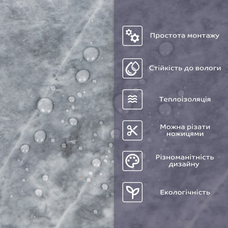 Самоклеюча стінова PET плитка Sticker wall - це сучасне та зручне рішення для стильного та швидкого оновлення інтер'єру. Вона ідеально підходить для створення оригінальних акцентів на стінах, додаючи текстури та глибини простору. Матеріал являє собою суміш двох полімерів - поліетилену (PE) та поліетилентерефталату (PET), яка забезпечує відмінні клеючі властивості та міцність. Розміри: - Плитка: 60 см х 30 см х 2 мм - Довжина: 60 см - Висота: 30 см - Товщина: 2 мм Площа покриття: 60 см х 30 см х 2 мм – 0,18 кв. м, кількість на 1 кв. м – 6 одиниць. Фактура: рівна. Матеріал містить такі шари: 1. Прозорий шар захисту. 2. Декоративний шар із зображенням. 3. Основний шар, що складається з поєднання поліетилену (PE) та поліетилентерефталату (PET). 4. Термоізоляційний шар із алюмінію. 5. Подвійний шар клею. 6. Захисний папір. Температурний режим: -40 - +75 градусів. Застосування: Може бути використаний для різних внутрішніх оздоблювальних робіт, таких як декорування стін у житлових приміщеннях (наприклад, кухня, ванна кімната, вітальня, дитяча або спальня, вхідна зона) та комерційних приміщеннях (офіси, зони рецепції, магазини, салони краси, фітнес-центри) та громадські місця). Крім того, його можна використовувати для декорування меблів, дверей та інших рівних поверхонь. Властивості та переваги матеріалу: 1. Легкість і міцність: має легкість і міцність, що спрощує його транспортування, монтаж і забезпечує довгий термін служби. Він зручний в установці, може бути легко вирізаний ножицями чи монтажним ножем, не потребує додаткових матеріалів чи професійних навичок. Матеріал не розщеплюється, не надується і не деформується між смугами, з мінімальними втратами, що робить його ідеальним для стінових покриттів. 2. Водостійкість: цей матеріал стійкий до впливу вологи, пари та грибка, що робить його придатним для застосування в приміщеннях з високою вологістю, таких як ванні кімнати та кухні. Його можна використовувати для створення фартуха на кухні, проклеюючи плитки на відстані не менше ніж 20-25 см. 3. Ізоляція: плитка забезпечує звукову та теплоізоляцію завдяки наявності повітряних прошарків та додатковому алюмінієвому шару. 4. Антистатичний ефект: у складі покриття міститься антистатик, що запобігає накопиченню пилу на поверхні. 5. Різноманітність дизайну: плитки доступні у різноманітних колірних та структурних варіаціях, що дозволяє вибрати підходящий дизайн для вашого інтер'єру. 6. Імітація інших матеріалів: дизайн цієї плитки розроблений з урахуванням імітації інших матеріалів, таких як камінь або кераміка, пропонуючи естетично приємне рішення за доступною ціною. 7. Екологічна доброзичливість: матеріал може бути утилізований та перероблений, що робить його більш екологічно чистим варіантом у порівнянні з деякими іншими матеріалами. 8. Простота обслуговування: поверхня плитки легко очищається і не потребує особливого догляду. 9. Довгий термін служби: матеріал є міцним та стійким до зношування, що гарантує його тривалий термін служби. Монтаж: Крок 1 Перед початком встановлення переконайтеся, що поверхня, на яку ви збираєтесь встановлювати плитку, чиста, суха та рівна. Необхідно видалити всі сліди пилу, бруду чи олії з поверхні, за необхідності провести вирівнювання поверхні. Як плитка, так і поверхня повинні бути за кімнатної температури, щоб забезпечити надійне зчеплення з клейовою ос