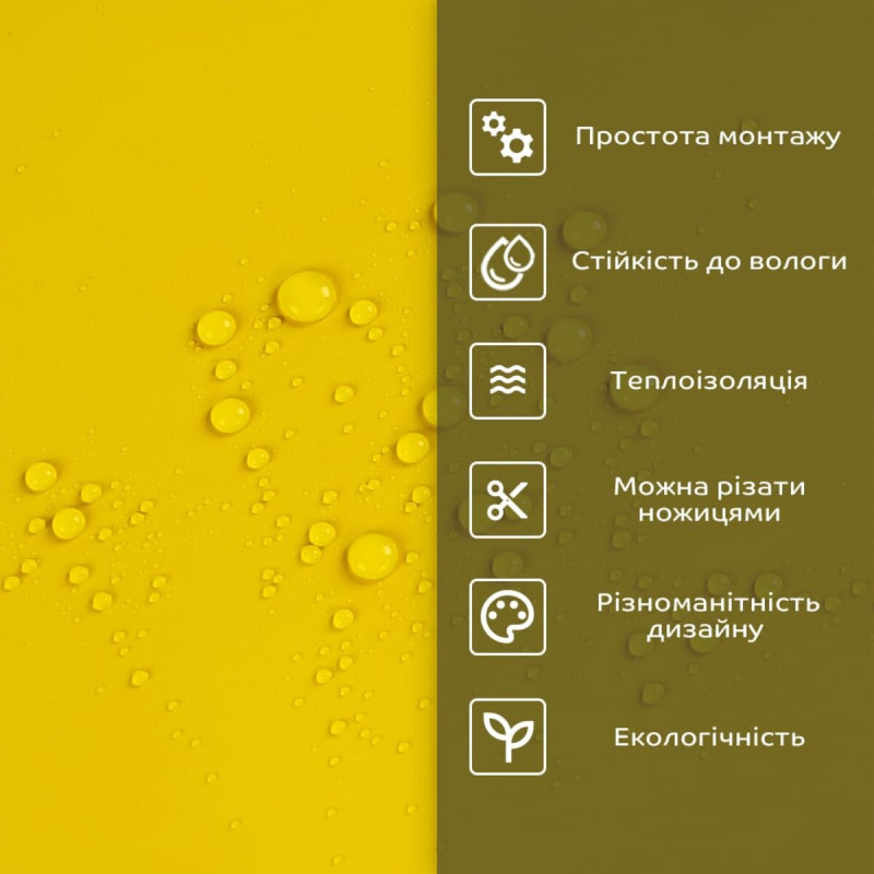 Самоклеюча стінова PET плитка Sticker wall 900*400*2mm (D) SW-00002256 Самоклеюча стінова PET плитка Sticker wall - це сучасне та зручне рішення для стильного та швидкого оновлення інтер'єру. Вона ідеально підходить для створення оригінальних акцентів на стінах, додаючи текстури та глибини простору. Матеріал являє собою суміш двох полімерів - поліетилену (PE) та поліетилентерефталату (PET), яка забезпечує відмінні клеючі властивості та міцність. Розміри: - Плитка: 90 см х 40 см х 2 мм. - Довжина: 90 см. - Висота: 40 см. - Товщина: 2 мм Площа покриття: 90 см х 40 см х 2 мм – 0,36 кв. м, кількість на 1 кв. м – 3 одиниці. Фактура: рівна. Матеріал містить такі шари: 1. Прозорий шар захисту. 2. Декоративний шар із зображенням. 3. Основний шар, що складається з поєднання поліетилену (PE) та поліетилентерефталату (PET). 4. Термоізоляційний шар із алюмінію. 5. Подвійний шар клею. 6. Захисний папір. Температурний режим: -40 - +75 градусів. Застосування: Може бути використаний для різних внутрішніх оздоблювальних робіт, таких як декорування стін у житлових приміщеннях (наприклад, кухня, ванна кімната, вітальня, дитяча або спальня, вхідна зона) та комерційних приміщеннях (офіси, зони рецепції, магазини, салони краси, фітнес-центри) та громадські місця). Крім того, його можна використовувати для декорування меблів, дверей та інших рівних поверхонь. Властивості та переваги матеріалу: 1. Легкість і міцність: має легкість і міцність, що спрощує його транспортування, монтаж і забезпечує довгий термін служби. Він зручний в установці, може бути легко вирізаний ножицями чи монтажним ножем, не потребує додаткових матеріалів чи професійних навичок. Матеріал не розщеплюється, не надується і не деформується між смугами, з мінімальними втратами, що робить його ідеальним для стінових покриттів. 2. Водостійкість: цей матеріал стійкий до впливу вологи, пари та грибка, що робить його придатним для застосування в приміщеннях з високою вологістю, таких як ванні кімнати та кухні. Його можна використовувати для створення фартуха на кухні, проклеюючи плитки на відстані не менше ніж 20-25 см. 3. Ізоляція: плитка забезпечує звукову та теплоізоляцію завдяки наявності повітряних прошарків та додатковому алюмінієвому шару. 4. Антистатичний ефект: у складі покриття міститься антистатик, що запобігає накопиченню пилу на поверхні. 5. Різноманітність дизайну: плитки доступні у різноманітних колірних та структурних варіаціях, що дозволяє вибрати підходящий дизайн для вашого інтер'єру. 6. Імітація інших матеріалів: дизайн цієї плитки розроблений з урахуванням імітації інших матеріалів, таких як камінь або кераміка, пропонуючи естетично приємне рішення за доступною ціною. 7. Екологічна доброзичливість: матеріал може бути утилізований та перероблений, що робить його більш екологічно чистим варіантом у порівнянні з деякими іншими матеріалами. 8. Простота обслуговування: поверхня плитки легко очищається і не потребує особливого догляду. 9. Довгий термін служби: матеріал є міцним та стійким до зношування, що гарантує його тривалий термін служби. Монтаж: Крок 1 Перед початком встановлення переконайтеся, що поверхня, на яку ви збираєтесь встановлювати плитку, чиста, суха та рівна. Необхідно видалити всі сліди пилу, бруду чи олії з поверхні, за необхідності провести вирівнювання поверхні. Як плитка, так і поверхня повинні бути за кімнатної температ