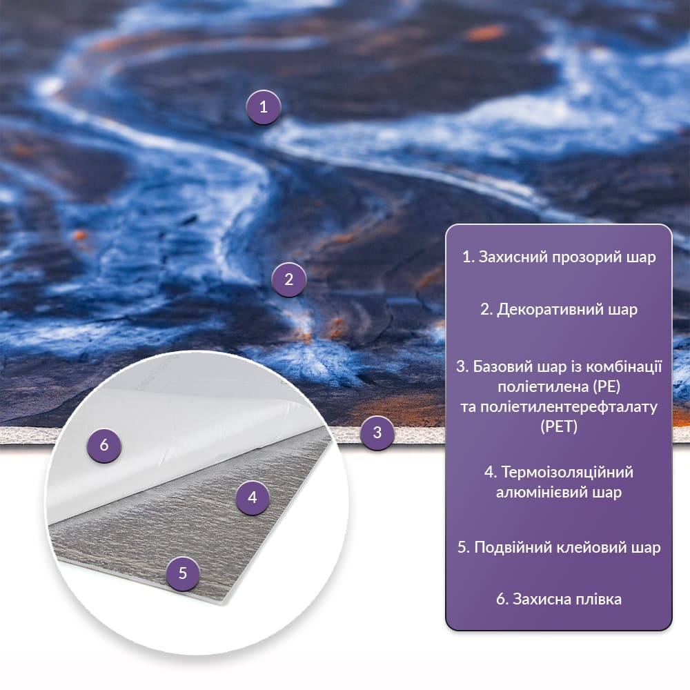 Самоклеюча стінова PET плитка у рулоні Sticker wall 600*3000*2mm (D) SW-00002426 Матеріал являє собою суміш двох полімерів - поліетилену (PE) та поліетилентерефталату (PET), яка забезпечує відмінні клеючі властивості та міцність. Розміри: - Рулон: 60 см х 300 см х 2 мм - Довжина: 300 см - Ширина: 60 см - Товщина: 2 мм Вага: рулон 3 метри – 900 грам. Площа покриття: 60 см х 300 см х 2 мм – 1,8 кв. м, кількість на 1 кв. м – 1 одиниця. Фактура: рівна. Матеріал містить такі шари: 1. Прозорий шар захисту. 2. Декоративний шар із зображенням. 3. Основний шар, що складається з поєднання поліетилену (PE) та поліетилентерефталату (PET). 4. Термоізоляційний шар із алюмінію. 5. Подвійний шар клею. 6. Захисний папір. Температурний режим: -40 - +75 градусів. Застосування: Може бути використаний для різних внутрішніх оздоблювальних робіт, таких як декорування стін у житлових приміщеннях (наприклад, кухня, ванна кімната, вітальня, дитяча або спальня, вхідна зона) та комерційних приміщеннях (офіси, зони рецепції, магазини, салони краси, фітнес-центри) та громадські місця). Крім того, його можна використовувати для декорування меблів, дверей та інших рівних поверхонь. Властивості та переваги матеріалу: 1. Легкість і міцність: має легкість і міцність, що спрощує його транспортування, монтаж і забезпечує довгий термін служби. Він зручний в установці, може бути легко вирізаний ножицями чи монтажним ножем, не потребує додаткових матеріалів чи професійних навичок. Матеріал не розщеплюється, не надується і не деформується між смугами, з мінімальними втратами, що робить його ідеальним для стінових покриттів. 2. Водостійкість: цей матеріал стійкий до впливу вологи, пари та грибка, що робить його придатним для застосування в приміщеннях з високою вологістю, таких як ванні кімнати та кухні. Його можна використовувати для створення фартуха на кухні, проклеюючи плитки на відстані не менше ніж 20-25 см. 3. Ізоляція: плитка забезпечує звукову та теплоізоляцію завдяки наявності повітряних прошарків та додатковому алюмінієвому шару. 4. Антистатичний ефект: у складі покриття міститься антистатик, що запобігає накопиченню пилу на поверхні. 5. Різноманітність дизайну: плитки доступні у різноманітних колірних та структурних варіаціях, що дозволяє вибрати підходящий дизайн для вашого інтер'єру. 6. Імітація інших матеріалів: дизайн цієї плитки розроблений з урахуванням імітації інших матеріалів, таких як камінь або кераміка, пропонуючи естетично приємне рішення за доступною ціною. 7. Екологічна доброзичливість: матеріал може бути утилізований та перероблений, що робить його більш екологічно чистим варіантом у порівнянні з деякими іншими матеріалами. 8. Простота обслуговування: поверхня плитки легко очищається і не потребує особливого догляду. 9. Довгий термін служби: матеріал є міцним та стійким до зношування, що гарантує його тривалий термін служби. Монтаж: Крок 1 Перед початком встановлення переконайтеся, що поверхня, на яку ви збираєтесь встановлювати плитку, чиста, суха та рівна. Необхідно видалити всі сліди пилу, бруду чи олії з поверхні, за необхідності провести вирівнювання поверхні. Як плитка, так і поверхня повинні бути за кімнатної температури, щоб забезпечити надійне зчеплення з клейовою основою. Крок 2 Зніміть захисну плівку зі зворотного боку плитки, щоб активувати клейку поверхню. Крок 3 Почніть установку з одного кута і 