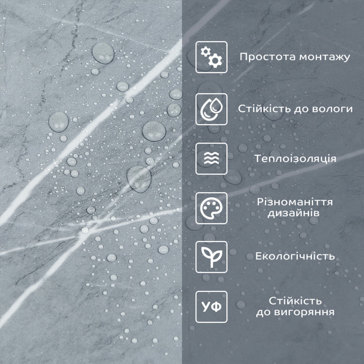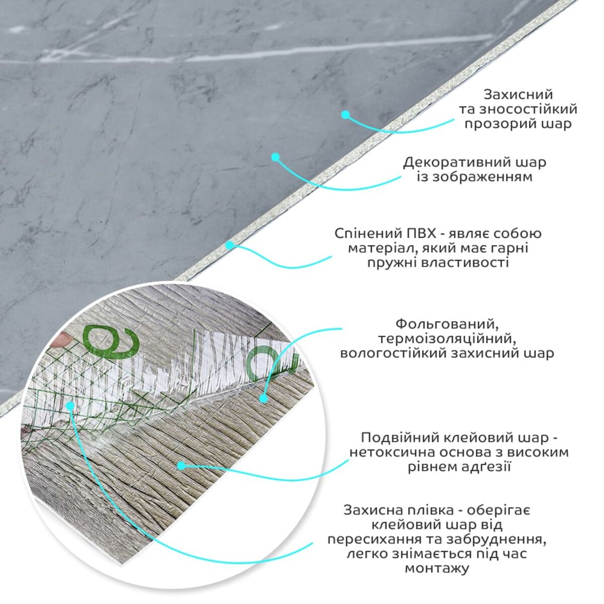 Самоклеюча вінілова плитка у рулоні Sticker wall 0,6*3m*2мм (D) SW-00002060 - це декоративний матеріал для внутрішнього оздоблення, який завдяки клейовій основі легко встановлюється. Плитка доступна у різних дизайнах, що імітують натуральні матеріали, і підходить для багатьох інтер'єрних рішень. Матеріал: ПВХ. Розміри: 0,6*3м*2мм. Площа покриття: 1,8 кв. м (600 х 3000 мм). Фактура: гладка з імітацією природних матеріалів. Поверхня глянсова або трохи матова. Плитка складається з наступних шарів: 1. Полімерний шар: захищає від потертостей та механічних пошкоджень, забезпечує довговічність та УФ захист, запобігаючи вигоранню та зберігаючи колір. 2. Декоративний шар: плівка з високоякісним кольоровим друком, що імітує фактуру природних матеріалів. 3. Основний шар з ПВХ: спінений полівінілхлорид, стійкий до хімічних речовин, пружний та ударостійкий завдяки аморфній будові та добавкам стабілізаторів та пом'якшувачів. 4. Фольгований шар: відбиває теплові хвилі, покращуючи теплоізоляцію приміщення. 5. Клейовий шар: нетоксична основа з високою адгезією. 6. Захисна плівка: оберігає клейовий шар від пересихання та забруднення, легко знімається під час монтажу. Температурні умови: Під впливом найвищих температур матеріал може деформуватися. У кухонній зоні монтаж плитки слід проводити на відстані 30-50 см від джерела вогню. Застосування: Внутрішнє оздоблення: облицювання стін у різних типах житлових приміщень (кухні, ванні кімнати, вітальні, дитячі або спальні, вітальні) та комерційних об'єктів (офіси, ресепшн-зони, магазини, салони краси або фітнес-центри, громадські місця, майстерні), а також меблів, дверей та інших гладких поверхонь. Особливості та переваги матеріалу: - Легке укладання: самоклеюча, без клею, стик у стик, ріжеться ножицями, не розходиться, не деформується, мінімальний обріз (1%). - Практичність: вологостійка, стійка до пари, плісняви, підходить для кухні та ванної кімнати, міцна, зносостійка. - Естетика: великий вибір дизайнів, імітація натуральних матеріалів, вибір під будь-який стиль, комбінується за кольором. - Догляд: легке очищення, не вимагає спецзасобів. - Додатково: звуко- та теплоізоляція, екологічність. Розрахунок необхідної кількості матеріалу: Для розрахунку необхідної кількості матеріалу спочатку виміряйте довжину та висоту поверхні, яку ви збираєтеся обклеїти. Потім помножте довжину на висоту для кожної поверхні в метрах, щоб отримати площу. Наприклад, якщо довжина стіни становить 4,35 метра, а висота 2,8 метра, то площа дорівнюватиме 12,18 квадратних метрів (4,35 * 2,8 = 12,18). Після цього виберіть кількість рулонів, необхідних для покриття цієї площі. Розділіть отриману площу на площу одного рулону (600*3000 = 1,8), округливши результат у велику сторону. Наприклад, при розподілі 12,18 на 1,8 виходить 6,76, що округляється до 7 рулонів. Врахуйте, що в процесі монтажу можуть виникнути відходи через підрізування рулонів, тому рекомендується додати до розрахунку щонайменше 1 запасний рулон. Монтаж: Самоклеючу вінілову плитку у рулоні можна приклеїти на різні поверхні, такі як старий лінолеум, кахель, плитку, паркет, ламінат, скло, фарбу, ґрунтований бетон з невеликими нерівностями і дрібними вибоїнами, без необхідності особливої підготовки поверхні. Однак, якщо поверхня покрита побілкою, необхідно заздалегідь очистити її. Перед монтажем приміщення має бути сухим, а темп